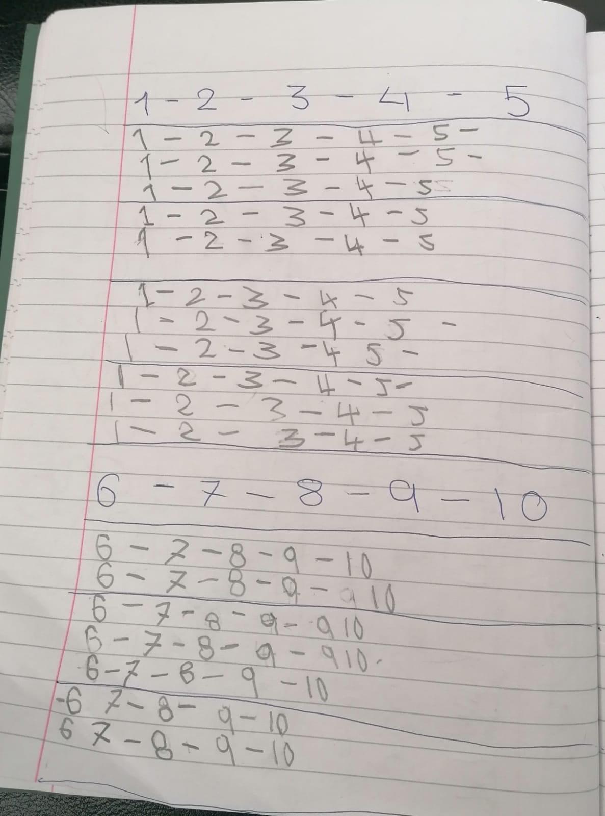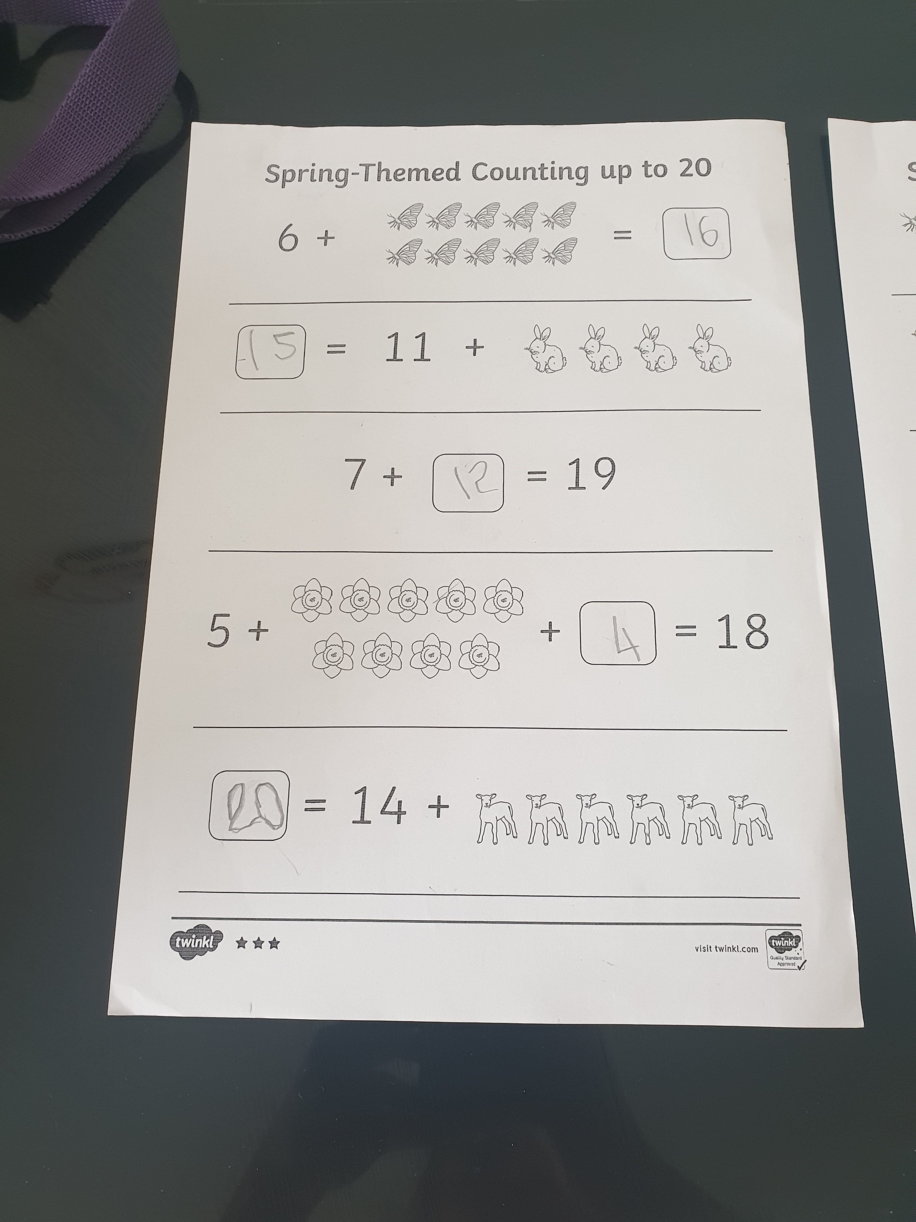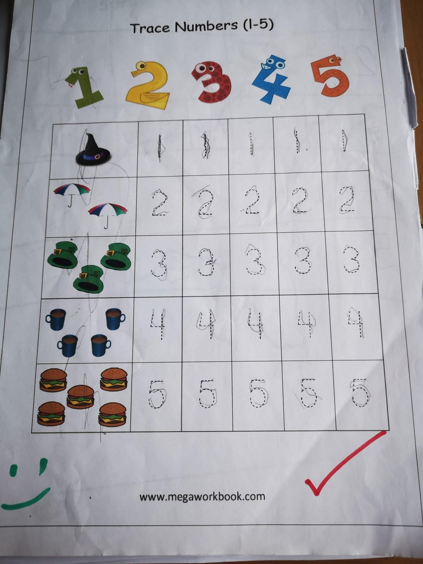 Yagaanah has been busy practising numbers 1 to 20 and writing her name. Well done!!
