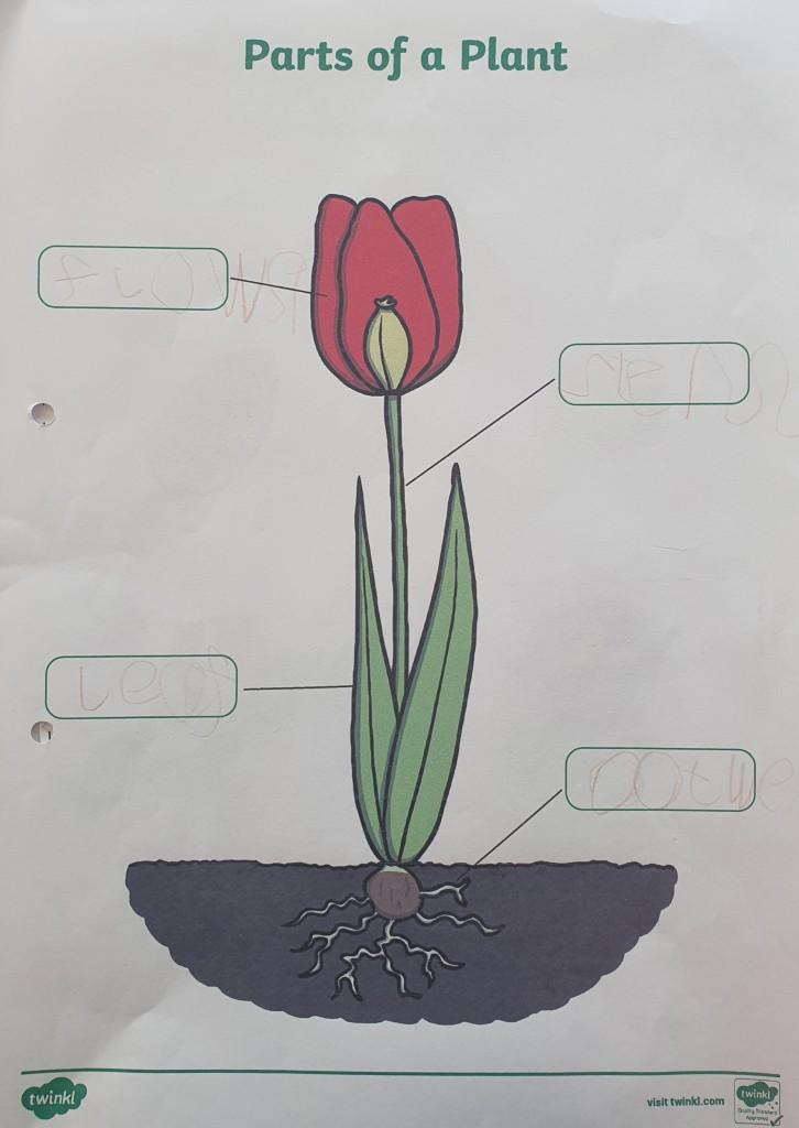 Erin has been busy learning about our new topic 'In The Garden'. Erin watched a video about plants then labelled the parts of a plant, and then she learned about how a plant grows. Erin and her brother have also been busy baing some delicious looking leaf and flower biscuits. Well done!