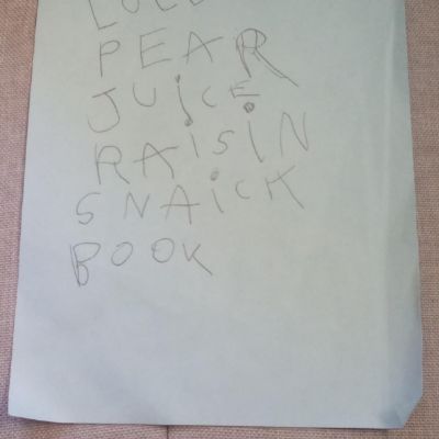 Miss Sutherland asked the children to go on a 'treasure hunt' they had to find something: soft, blue, round, starting with 's', living, small, you can wear, and that you can eat. Riley managed to find them all and he then wrote a list of all the objects he found. Well done Riley great work!!