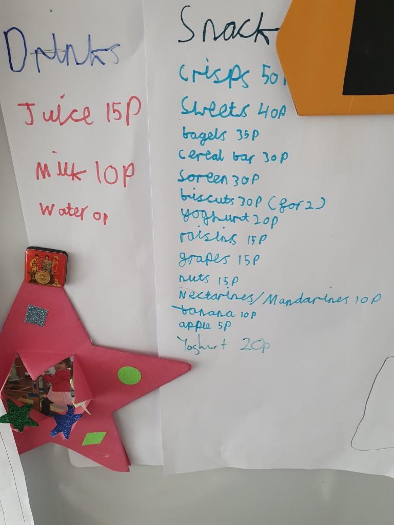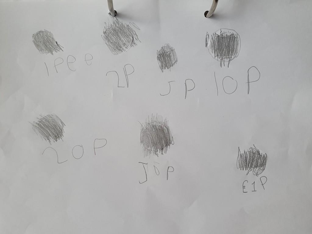 Look at Erin's fabulous home learning about money. Erin did some coin rubbing and Erin's mum had a fantastic idea to help Erin learn about money: they have set up their very own snack shop, with a price list for the snacks and Erin has to use real money to pay for the snacks, she has to think very carefully because she gets £1 per day for snacks. Thank you for sharing this great idea.