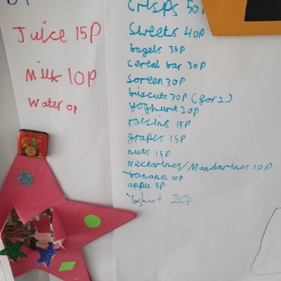 Fabian has sent me some photos of his learning at home, he has been learning about money and look at this lovely shop he has set up at home with some super writing using his phonics. Well done Fabian, great home learning.