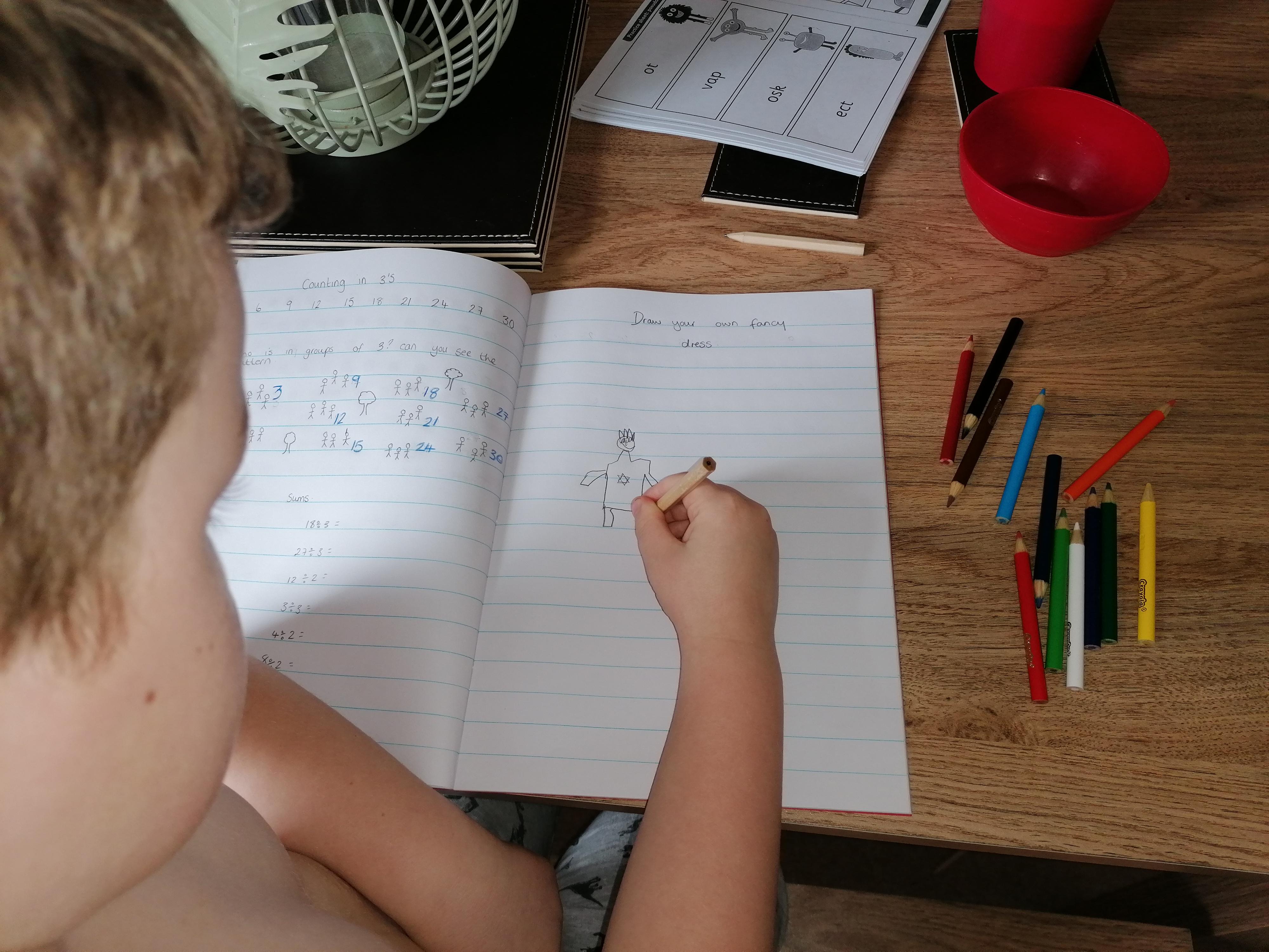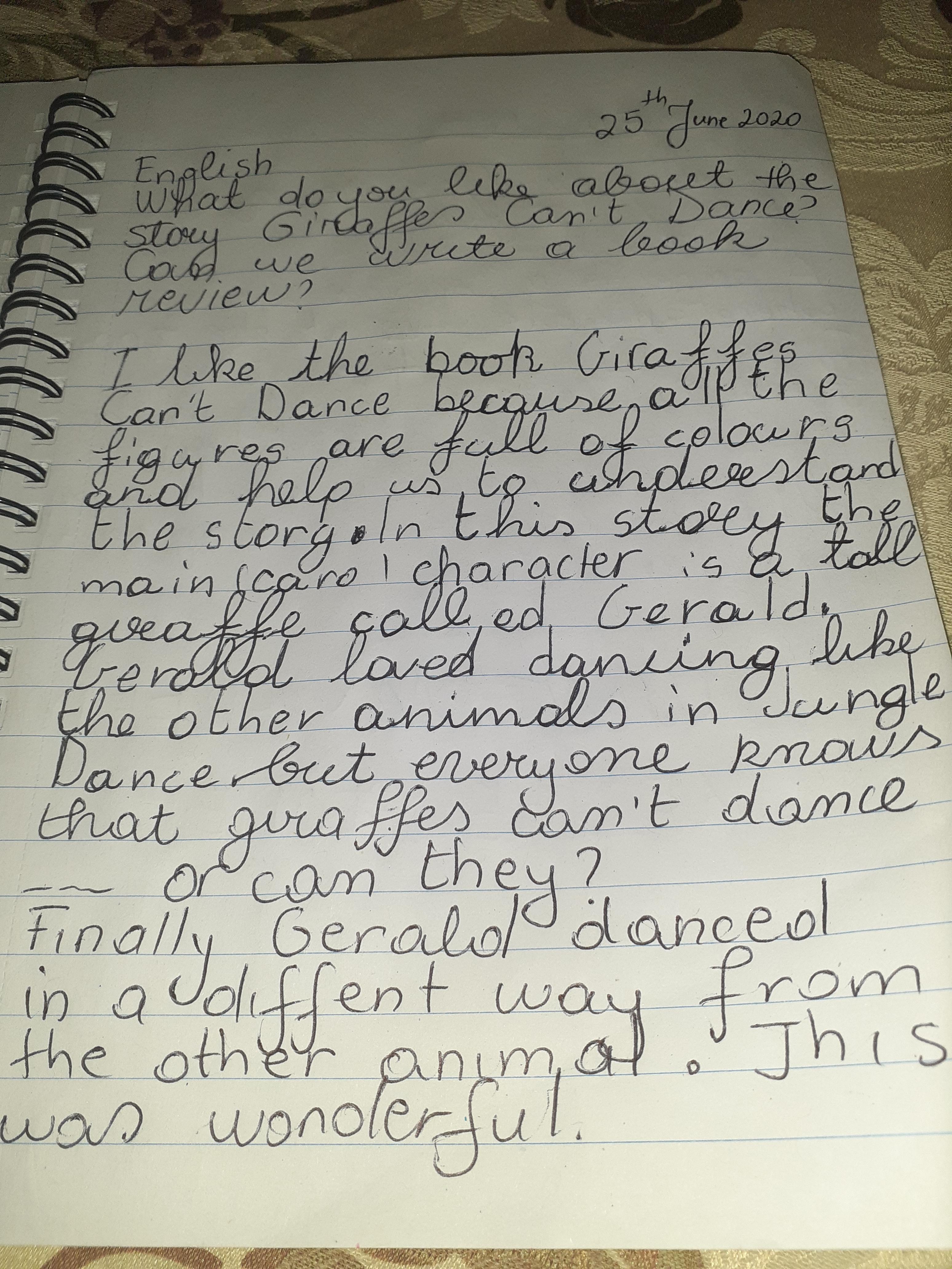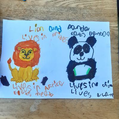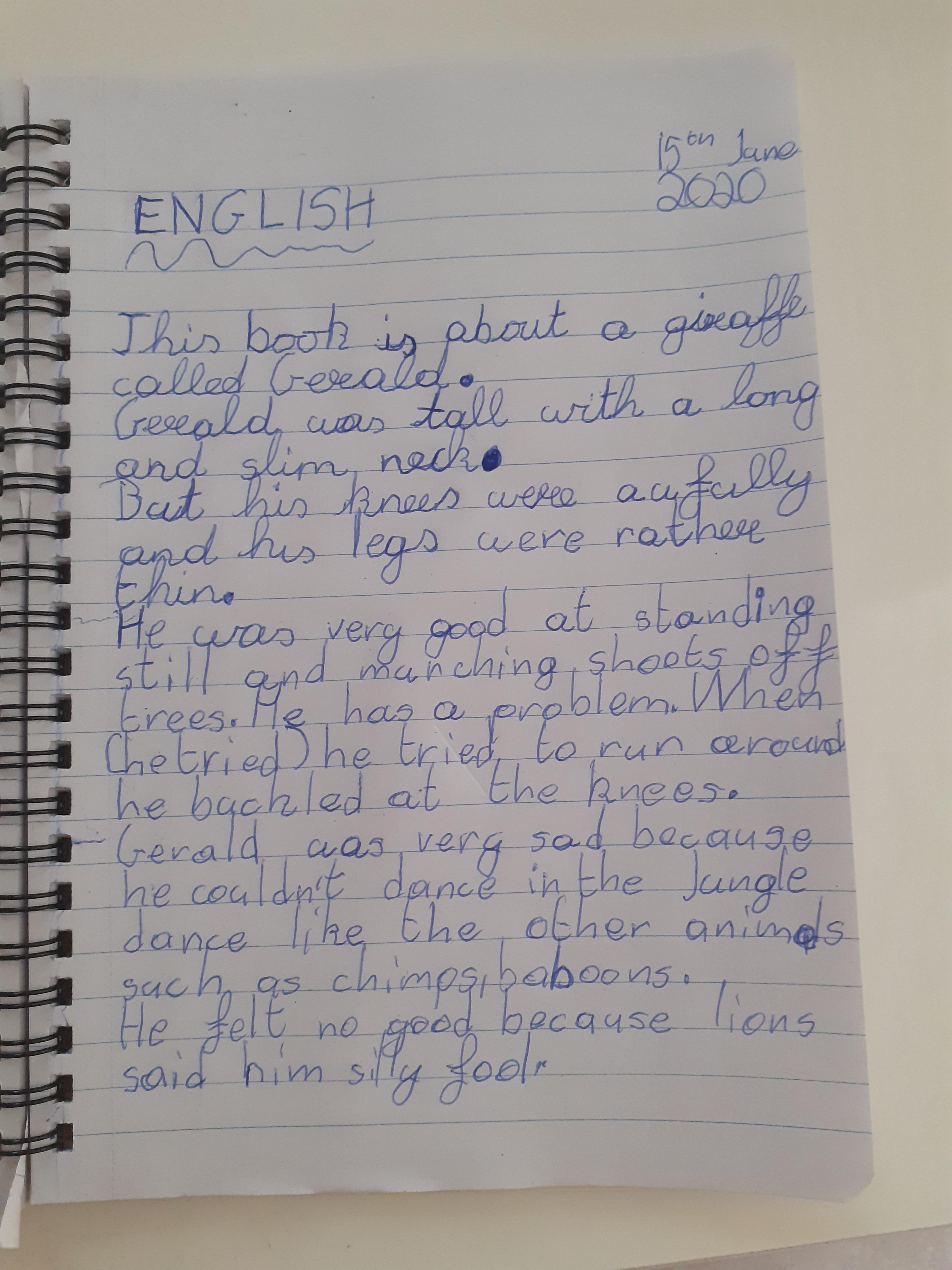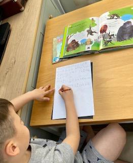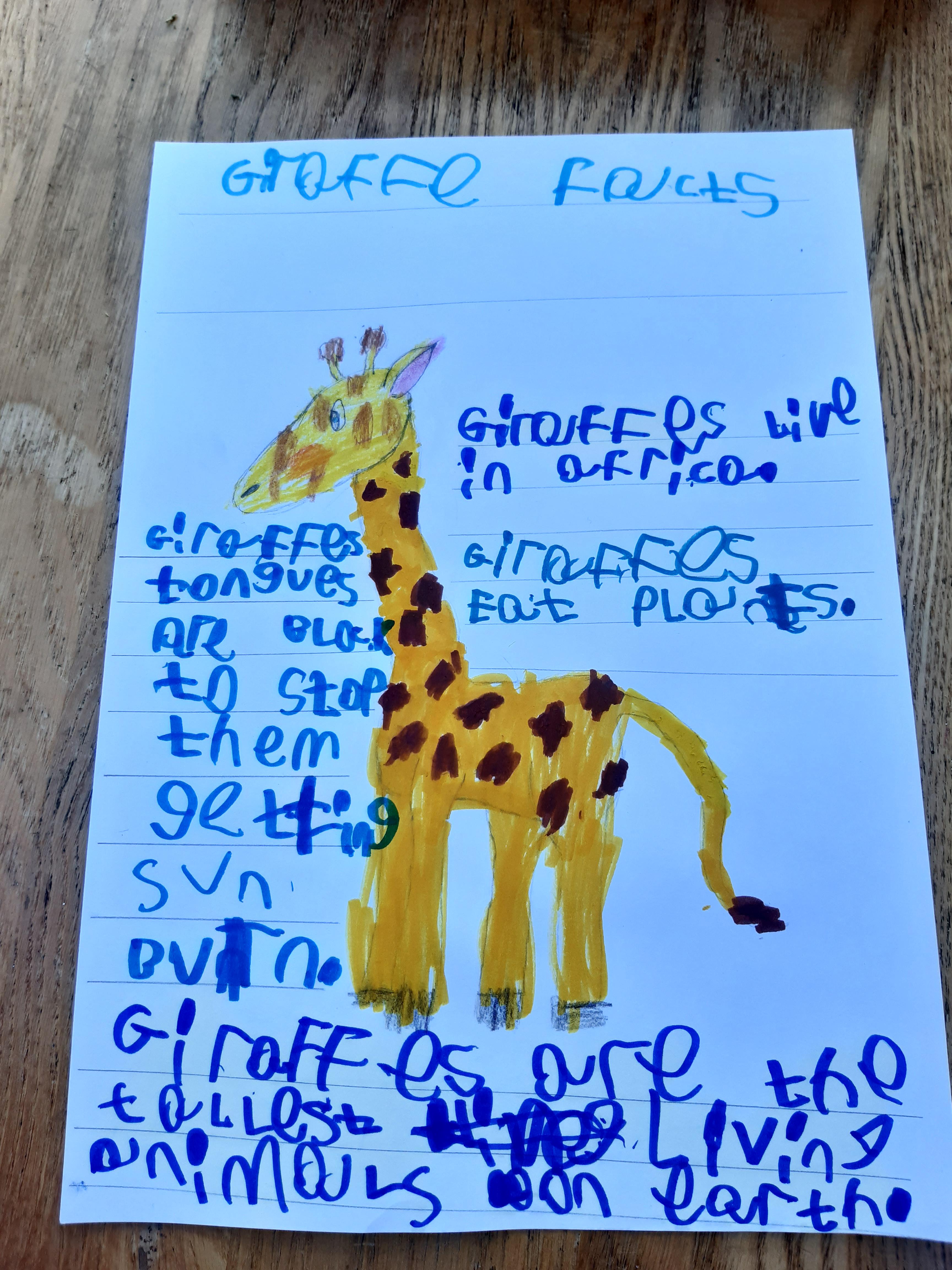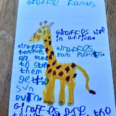Ryan has been busy designing a different book title, writing facts about giraffes, explaining differences between 2 animals, maths work and reading. Well done Ryan keep it up!