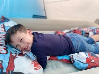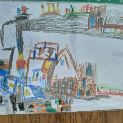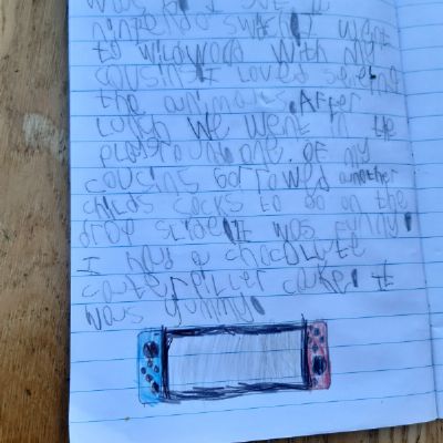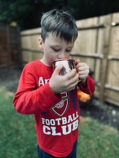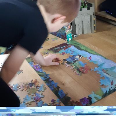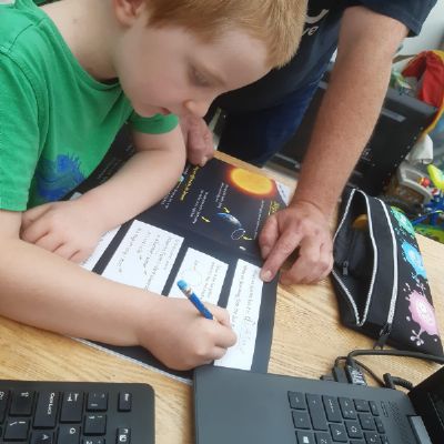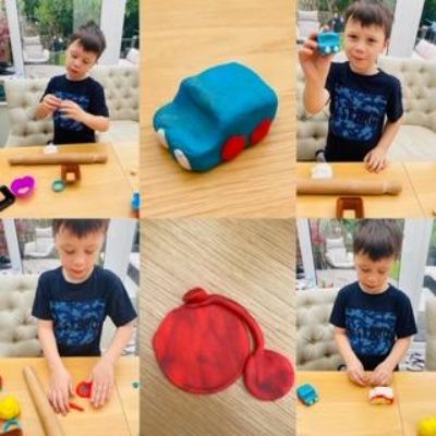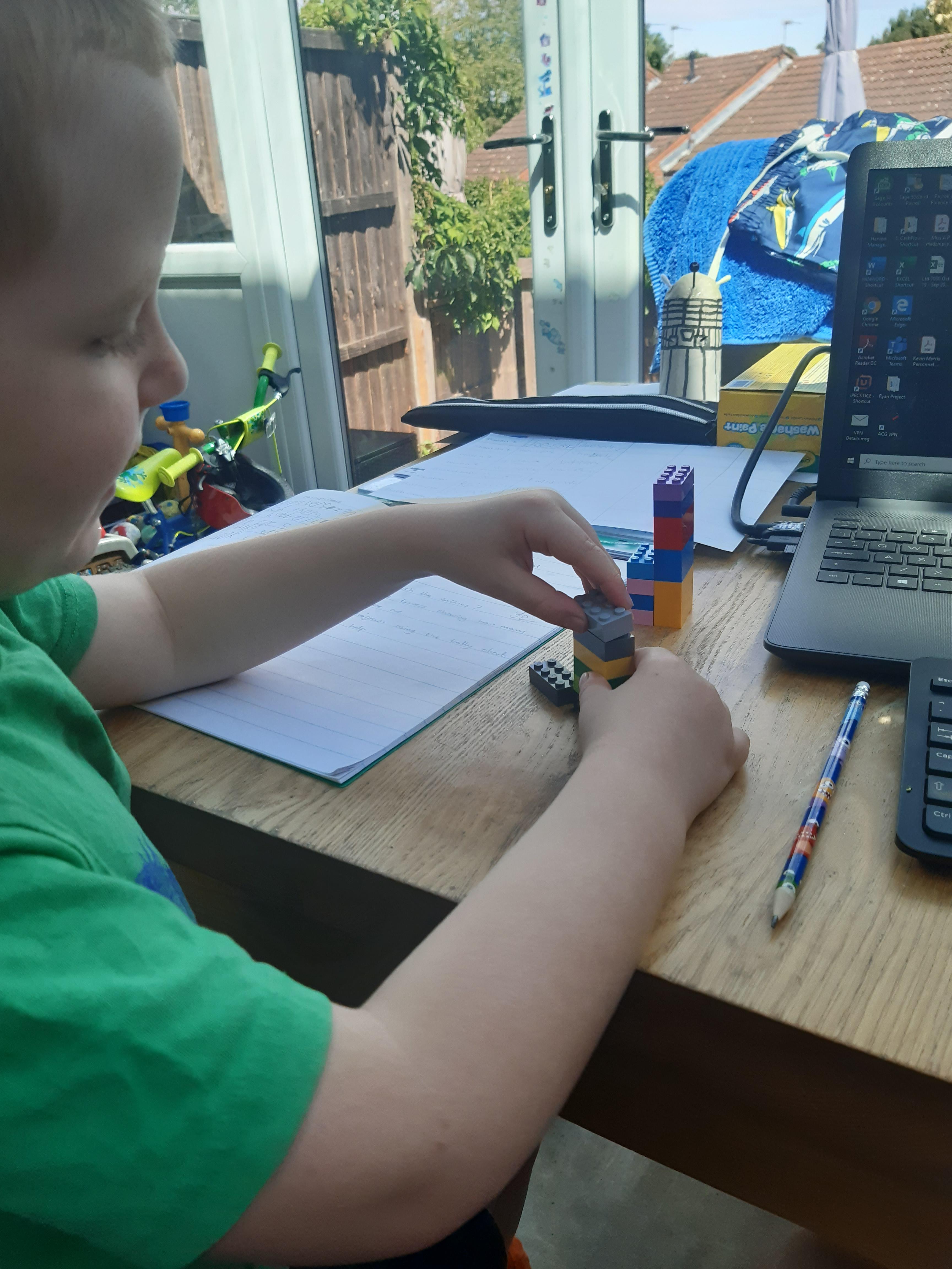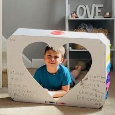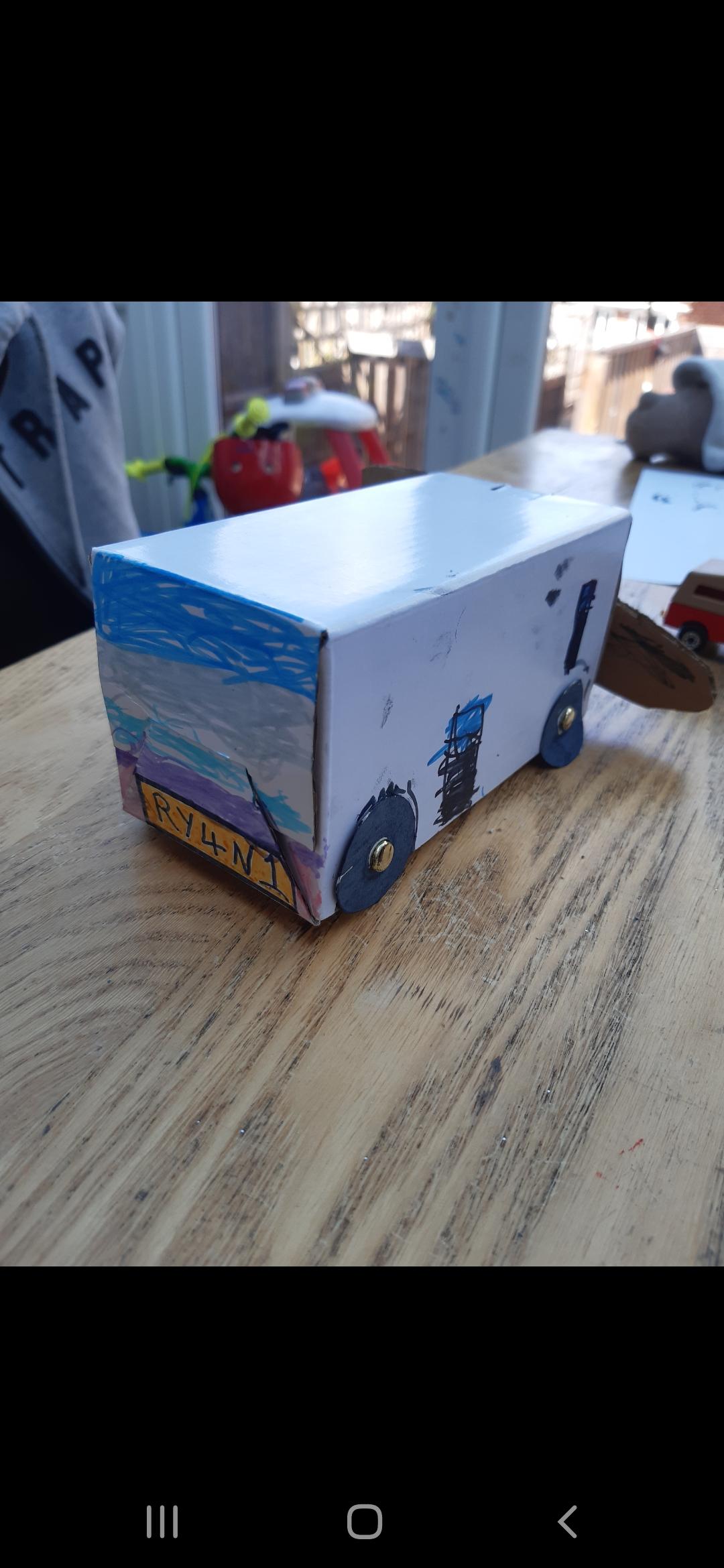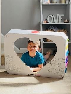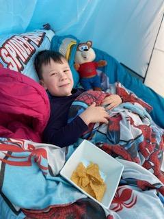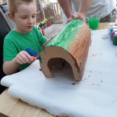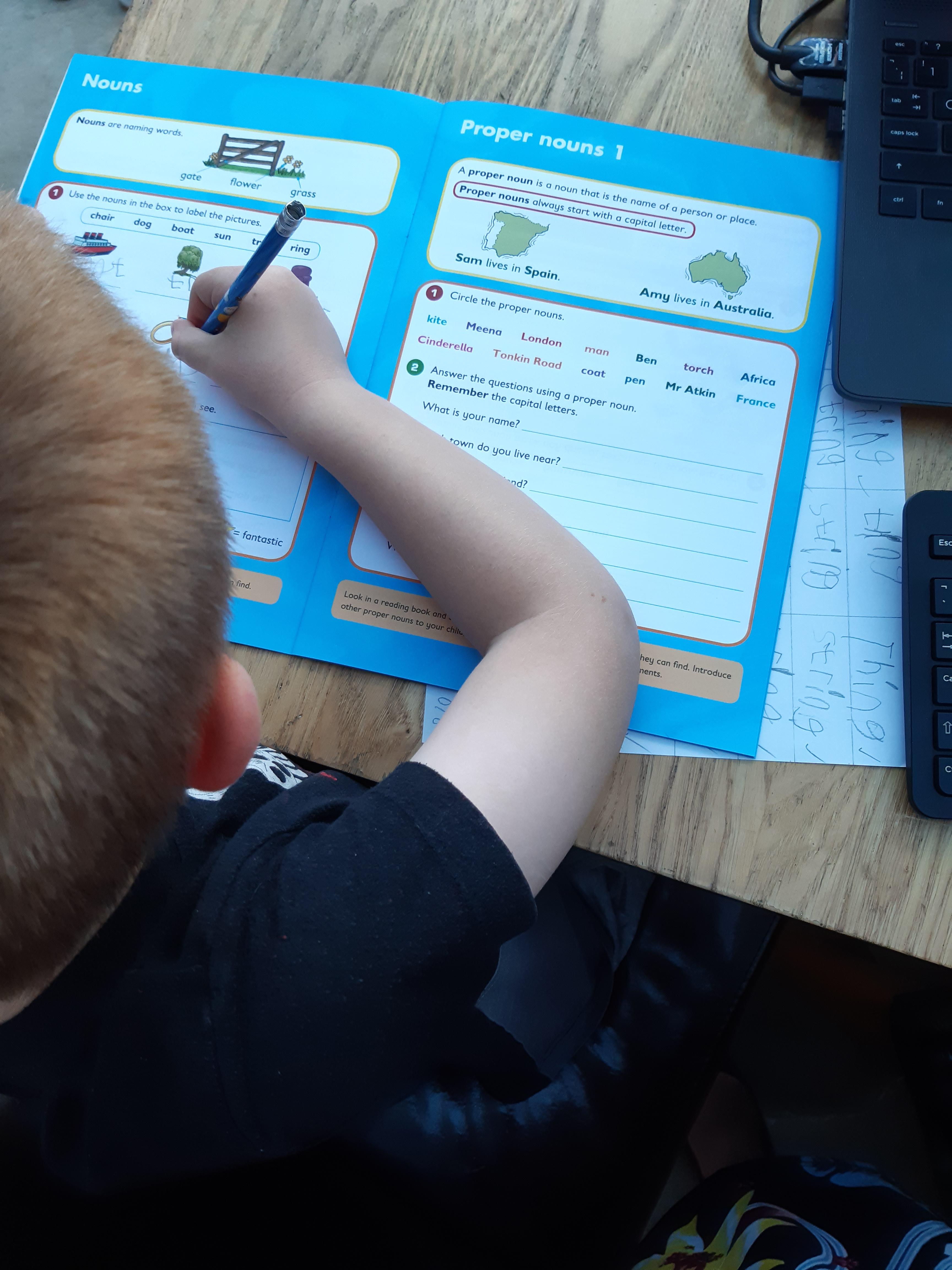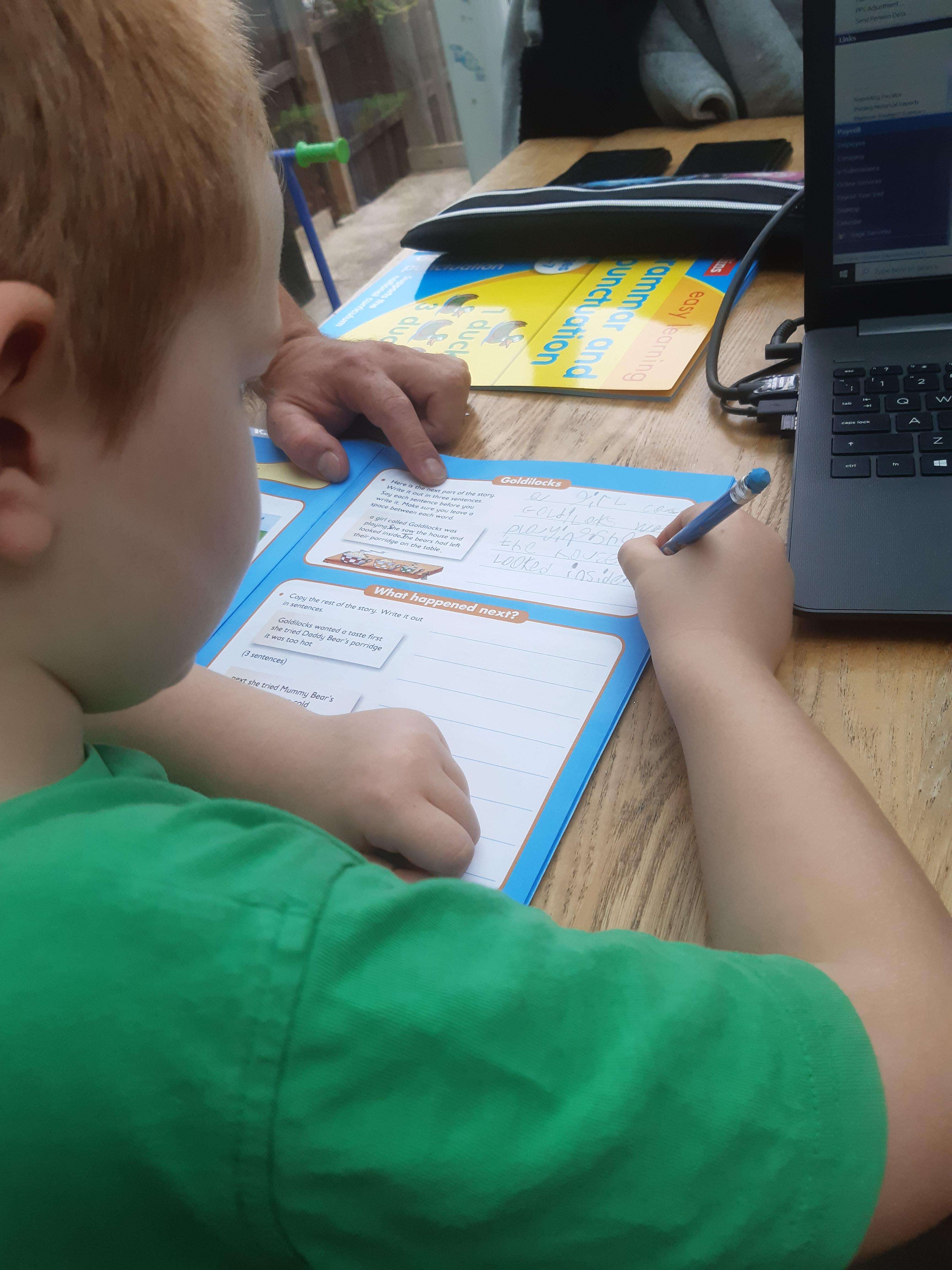 Luke has had a very busy and creative day making a moving toy, helping mum make chicken and mushroom pie, making a pizza, going for a windy walk, making dens and practising spelling and halves.