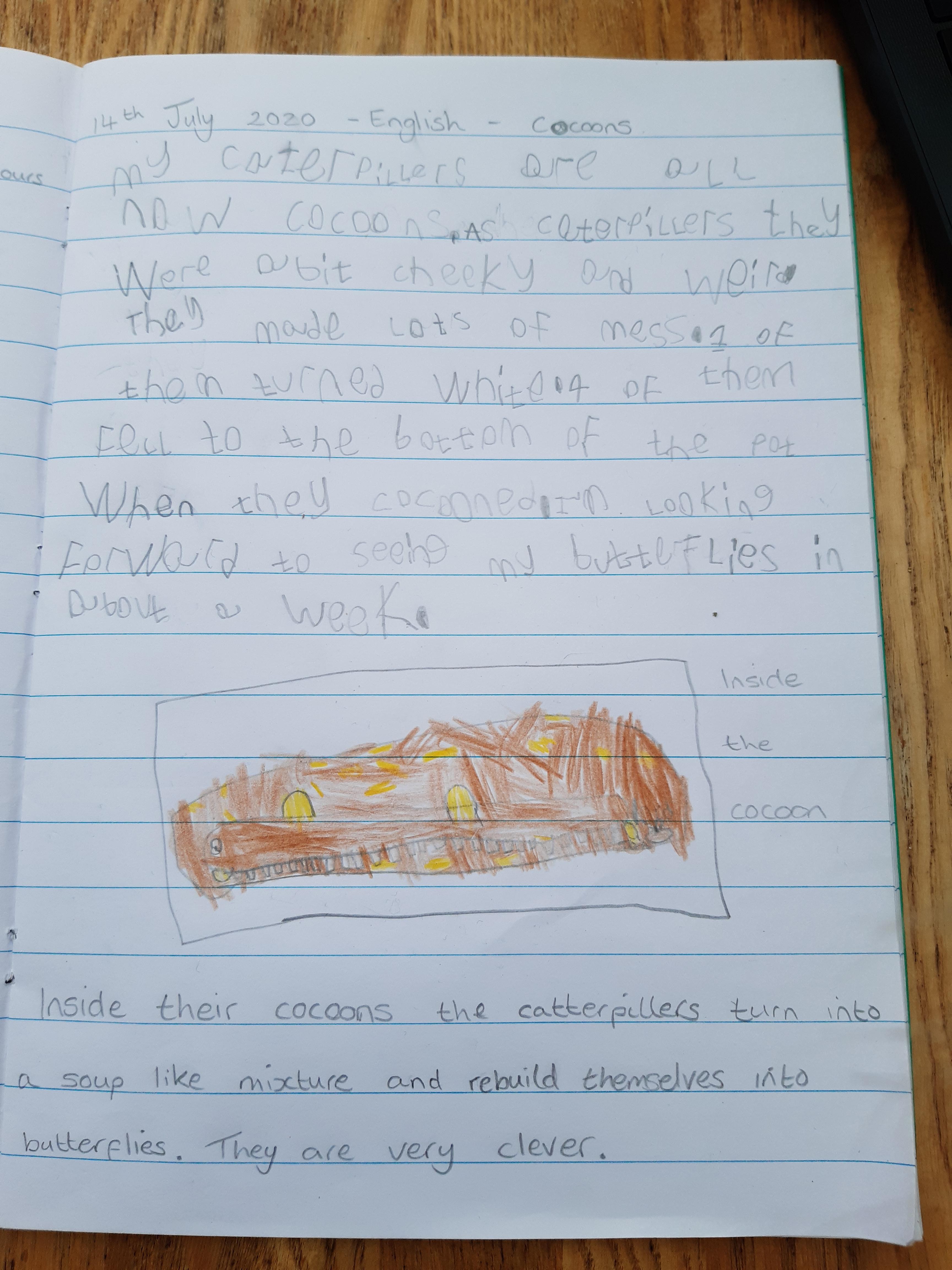 Ryan has been very busy with his learning at home: practising his tables, watching caterpillars grow and writing about them, cooking pizzas and brownies. Wow Ryan you have been busy and look at your fantastic writing!