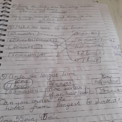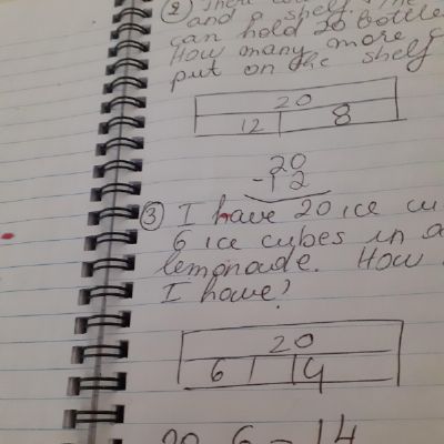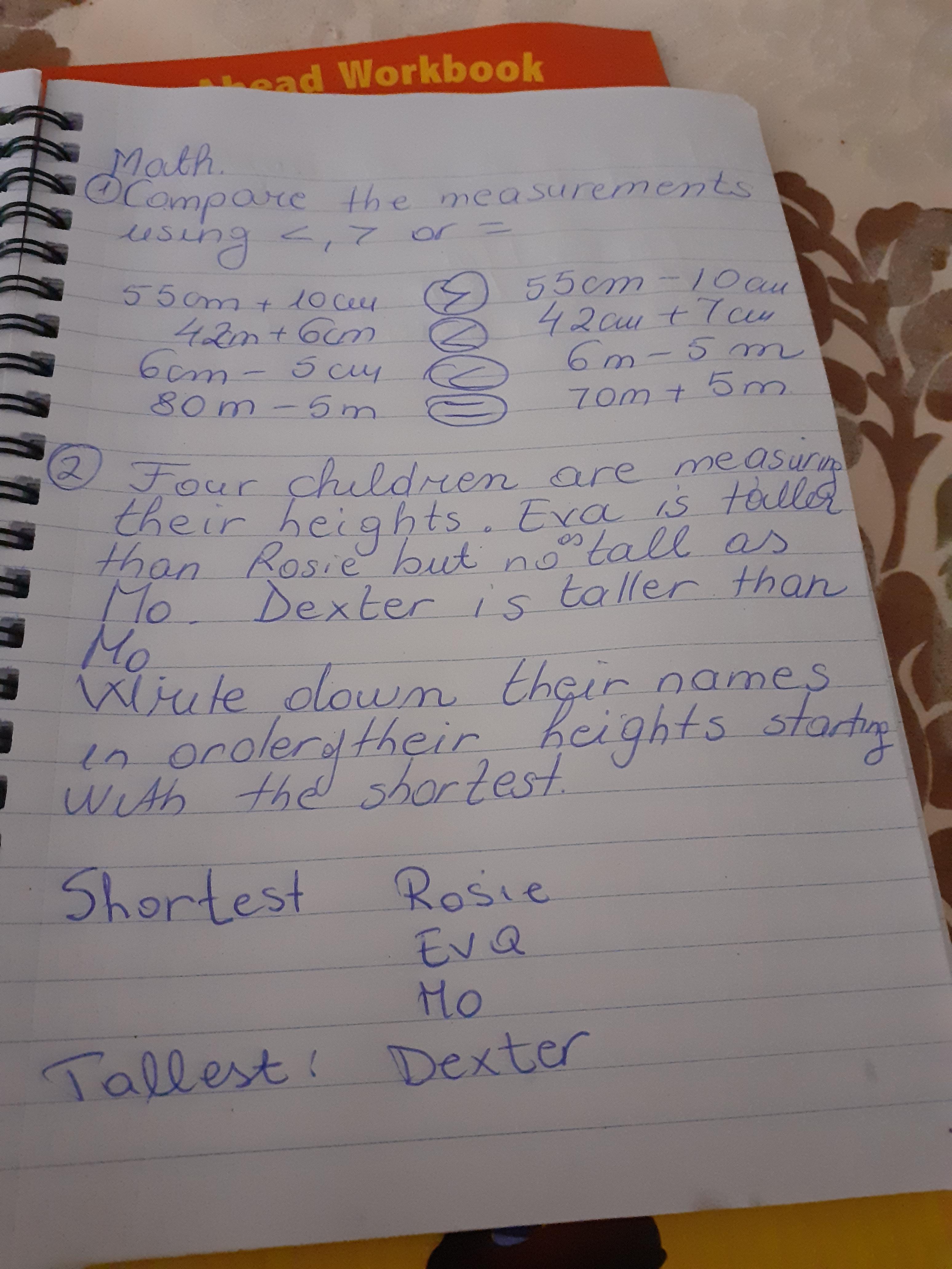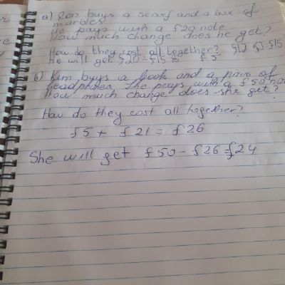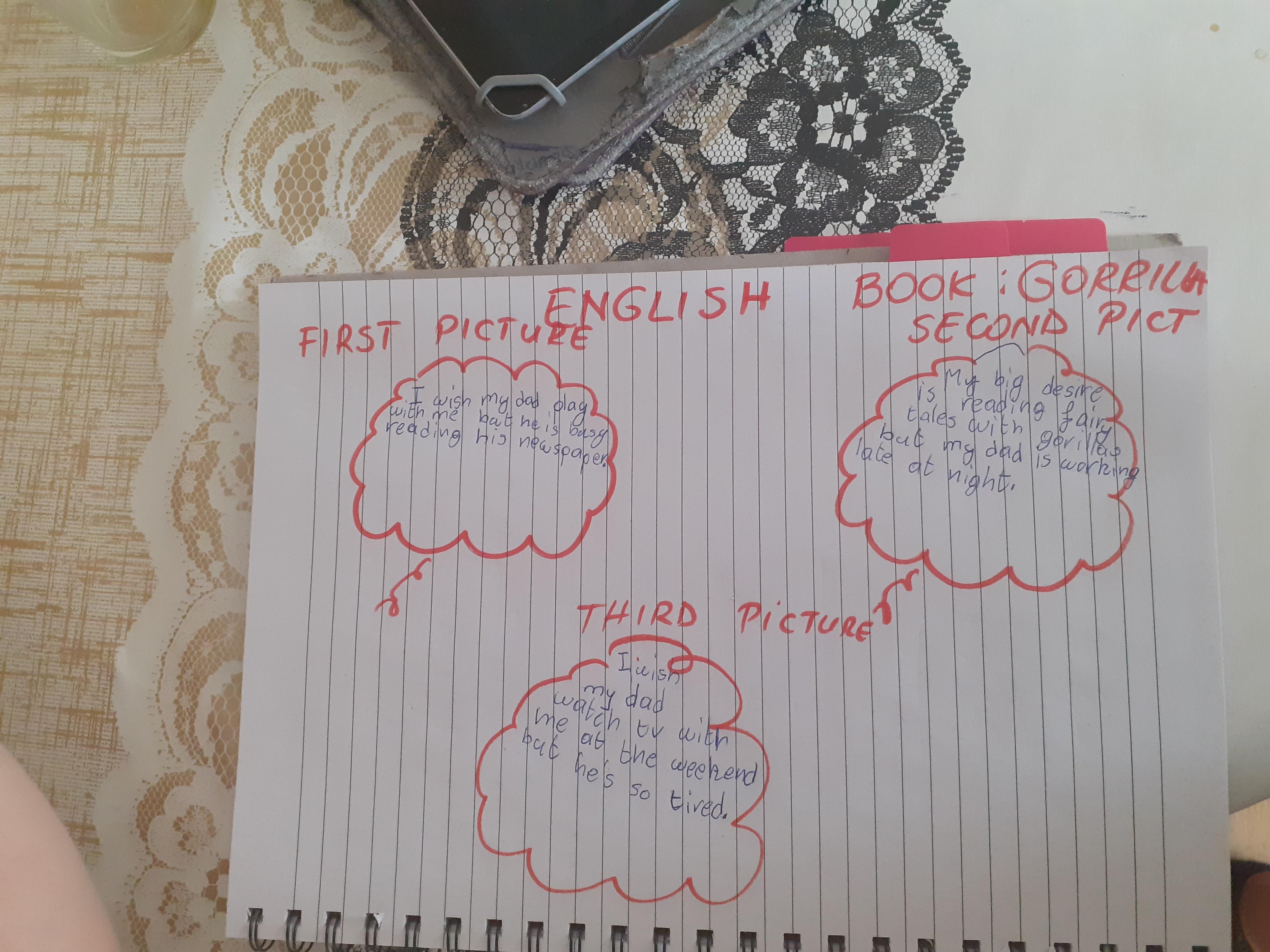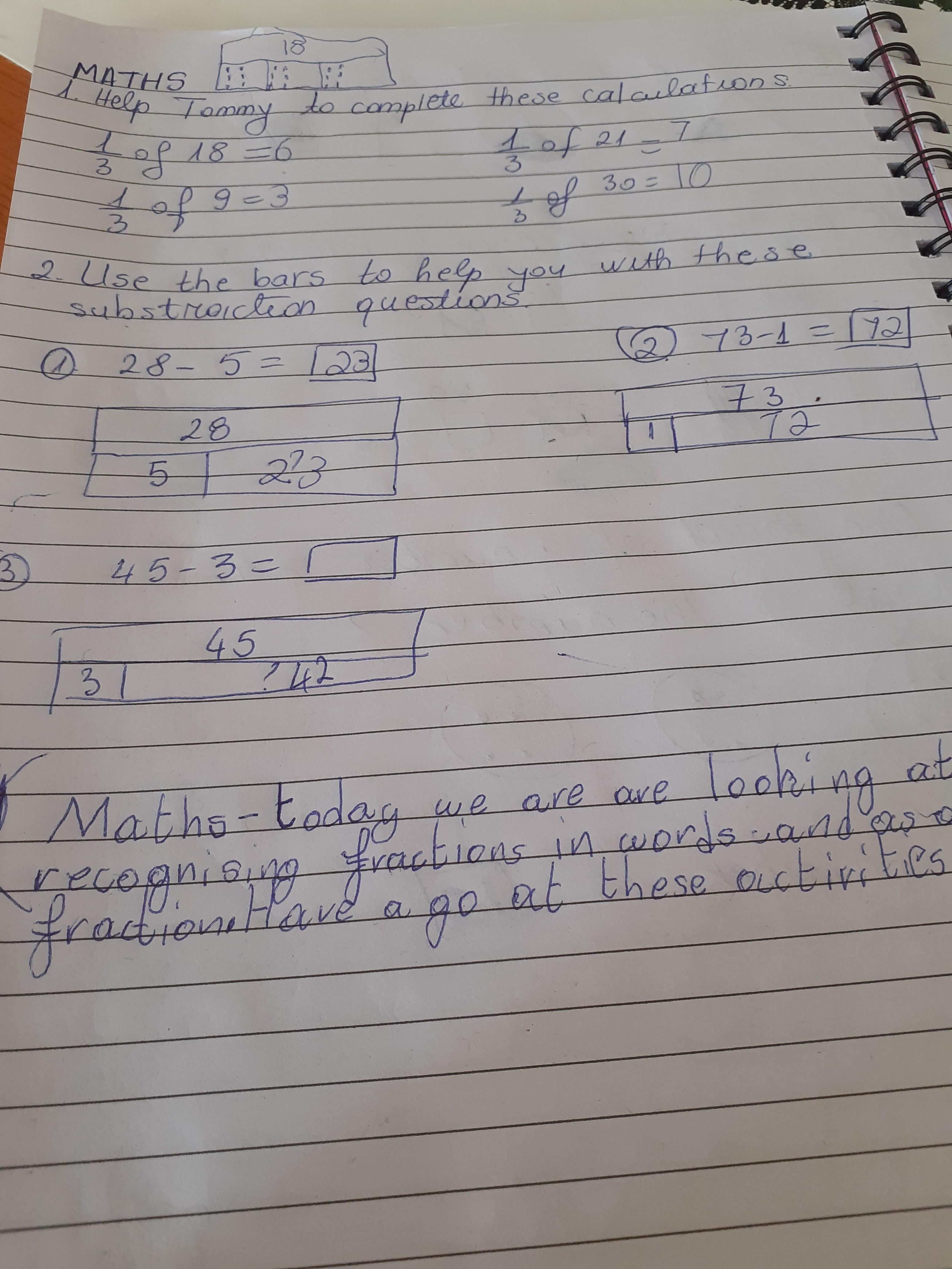Melisa described the character Hannah in the story of Gorilla and then described a little about herself too. She also did some maths workbook activities.