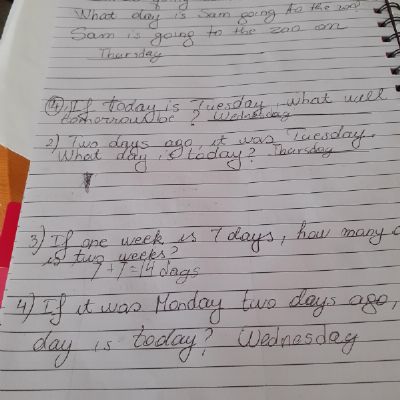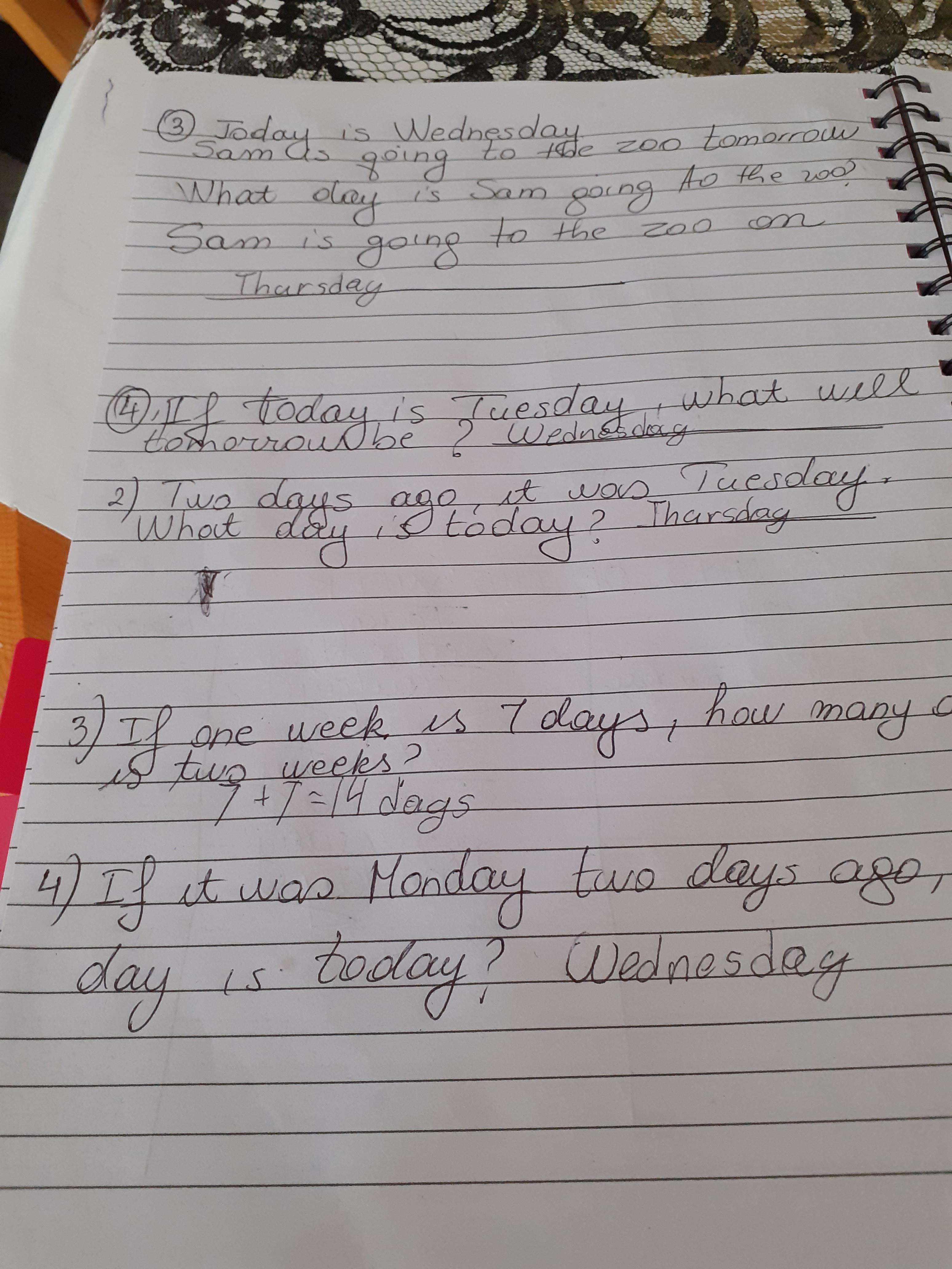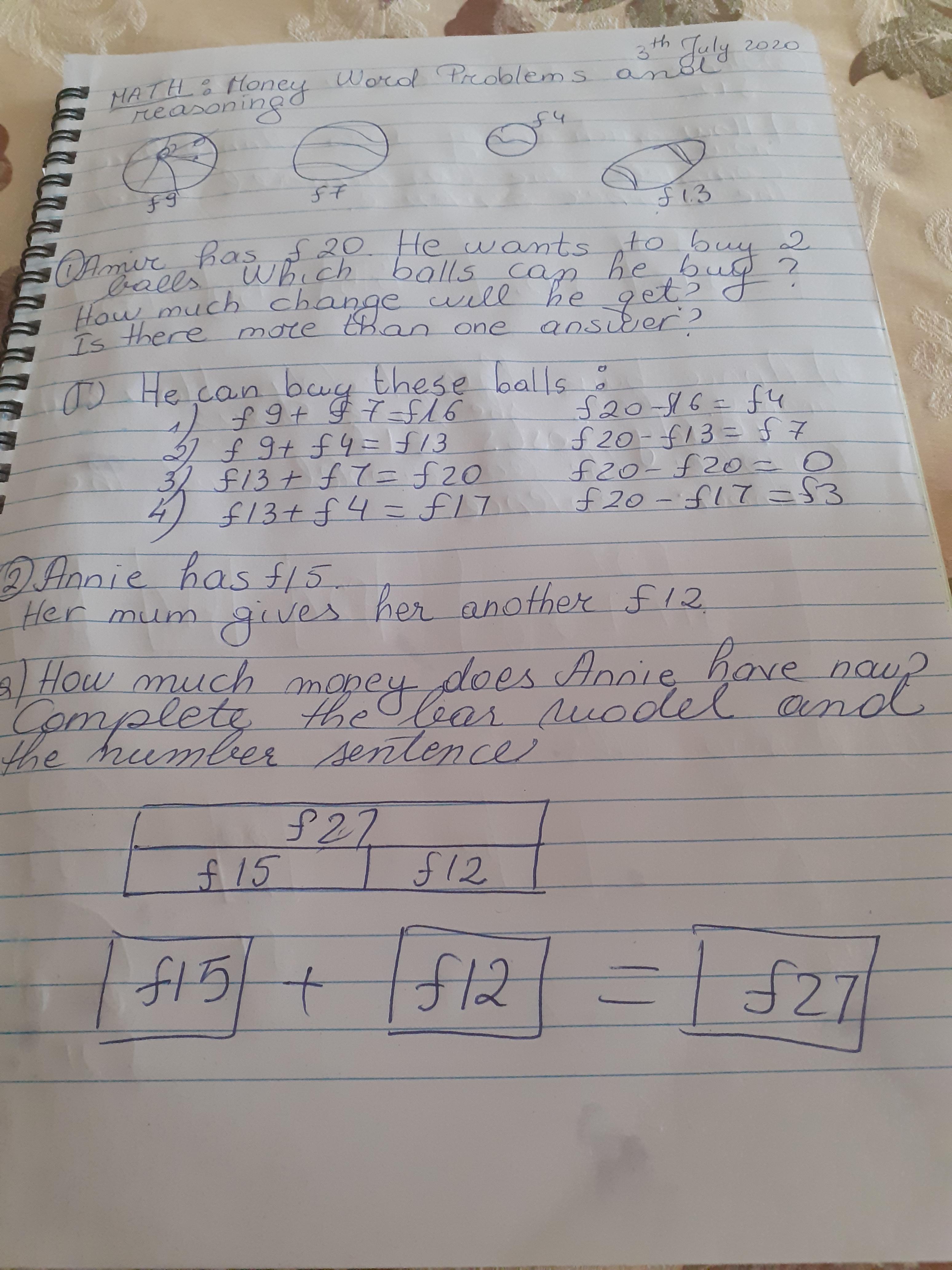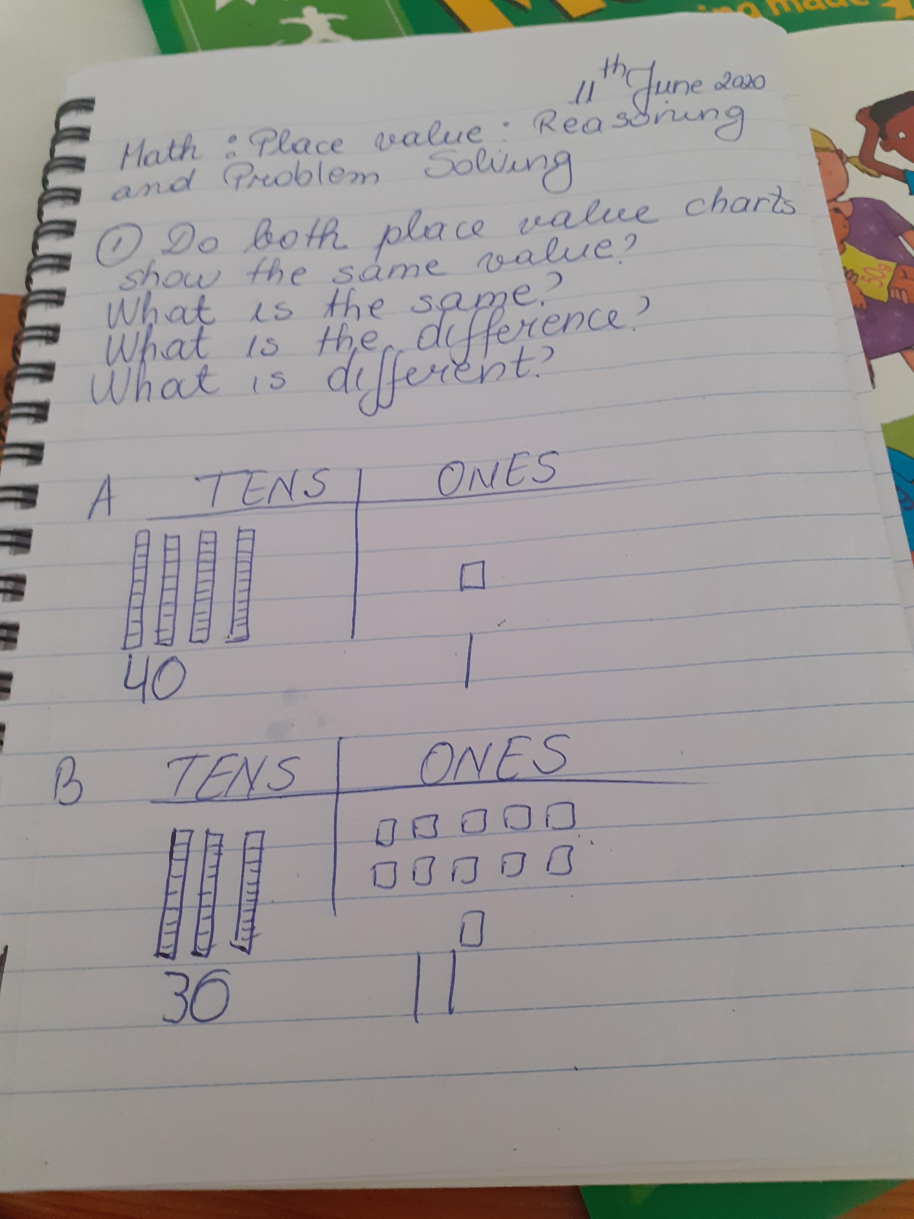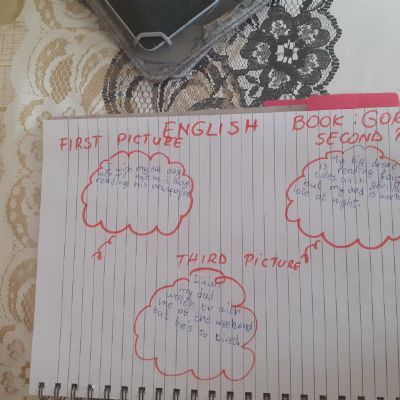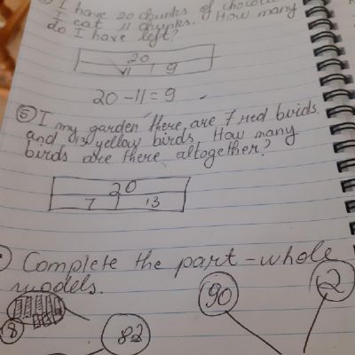 Melisa described the character Hannah in the story of Gorilla and then described a little about herself too. She also did some maths workbook activities.