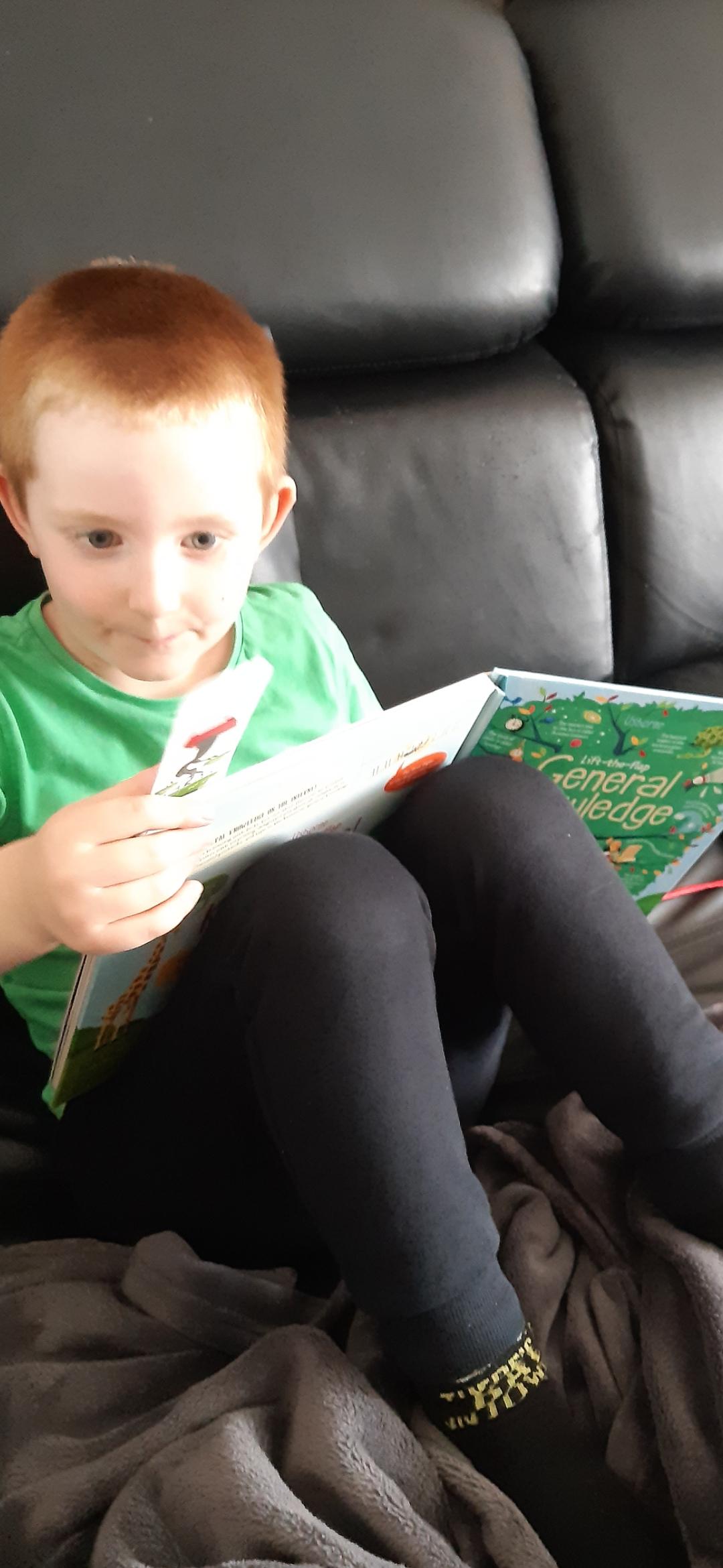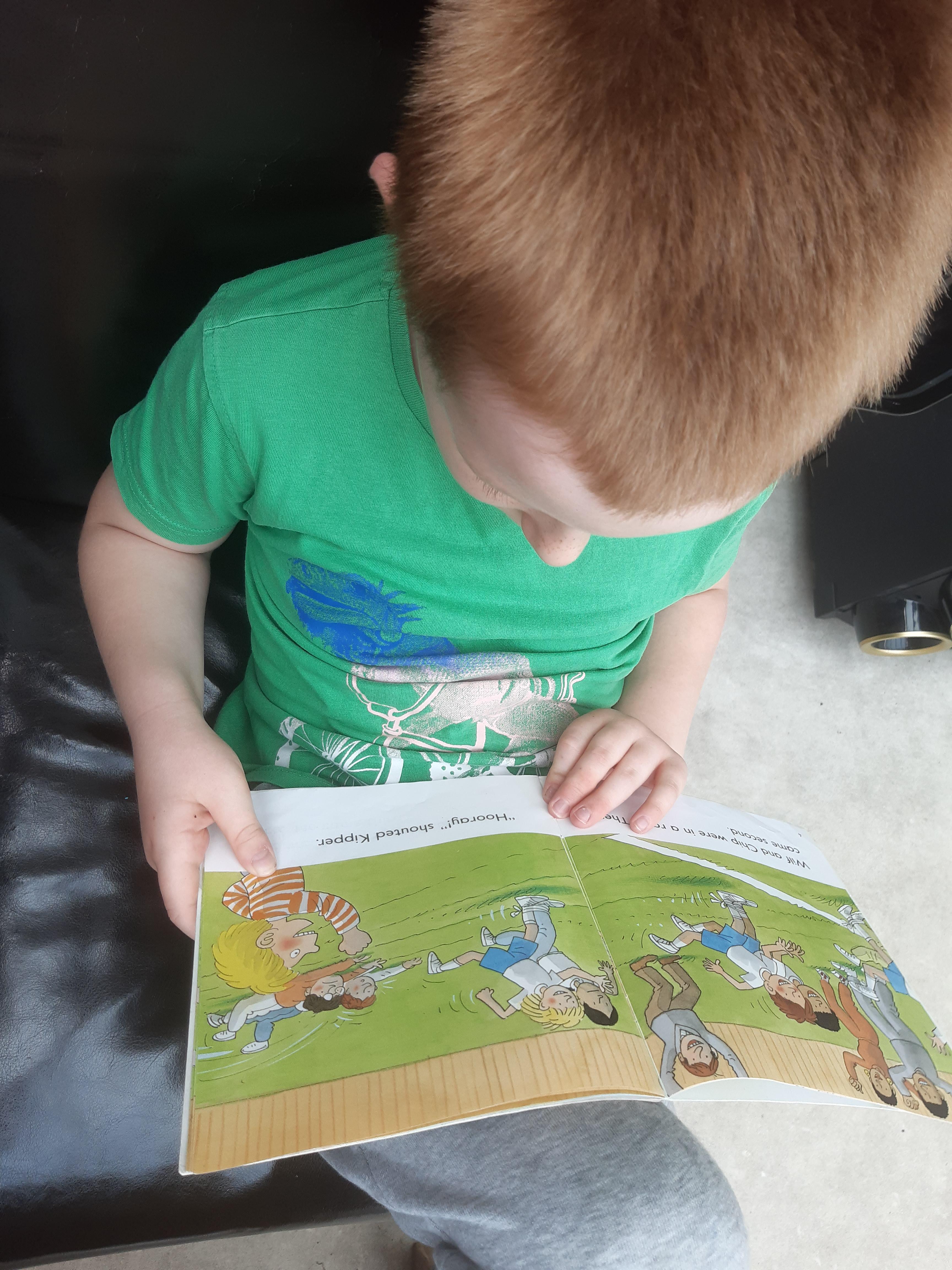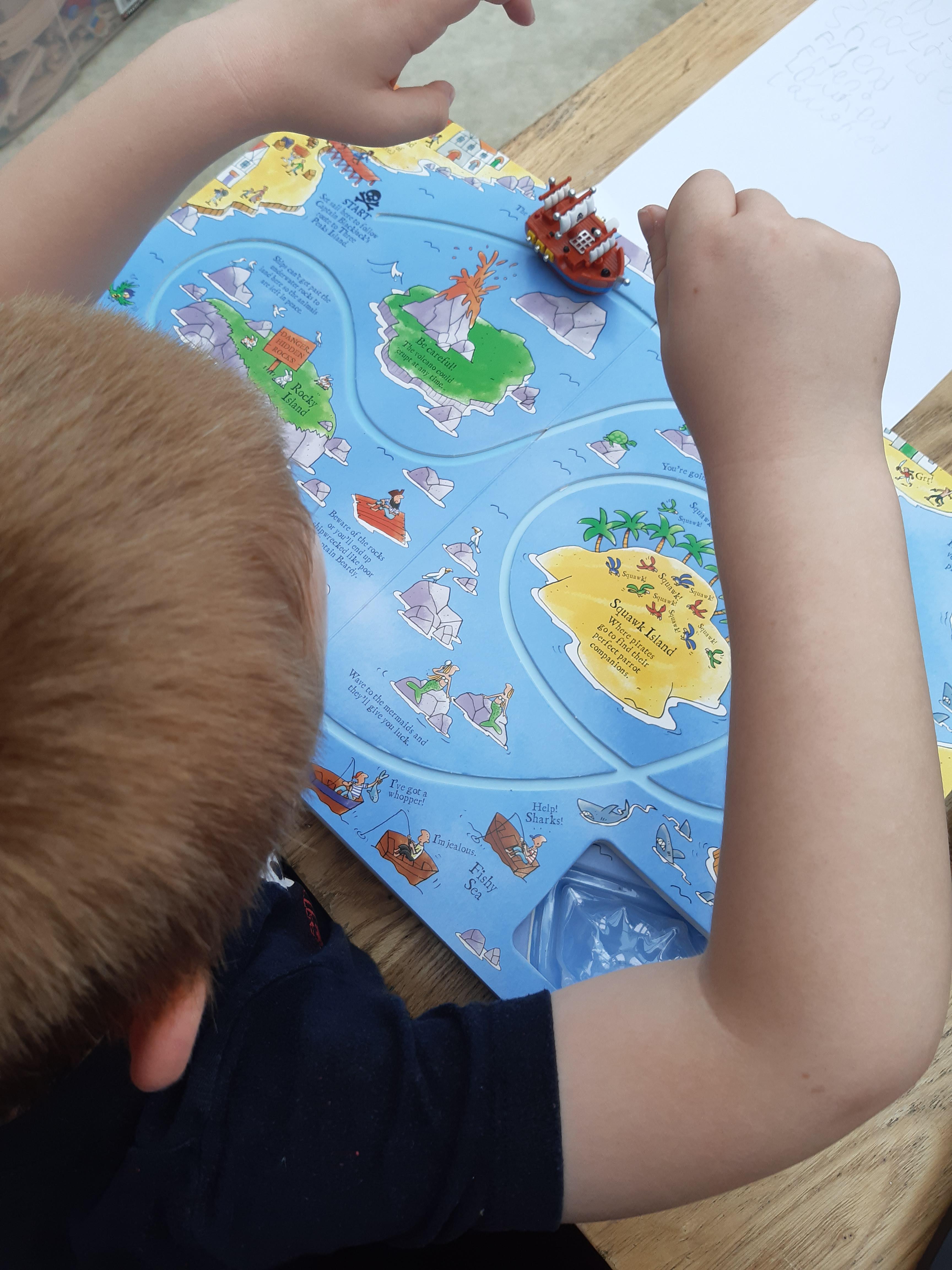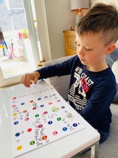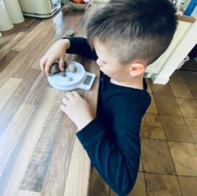 Today Luke got his Gorilla book that he ordered and it looks like he is enjoying reading it. He also has been doing some weighing activities and has made a great board game. Then he played football in the garden. Wow what a busy day!