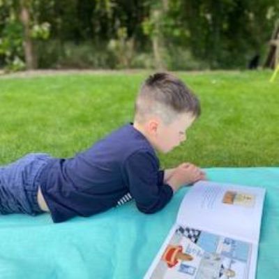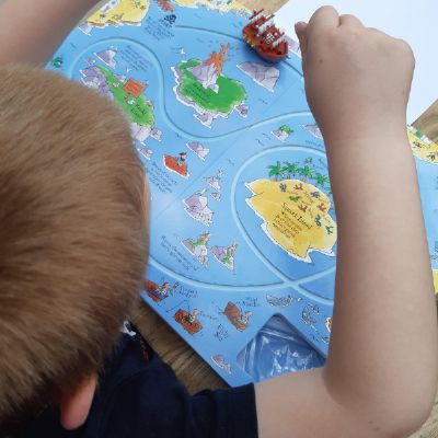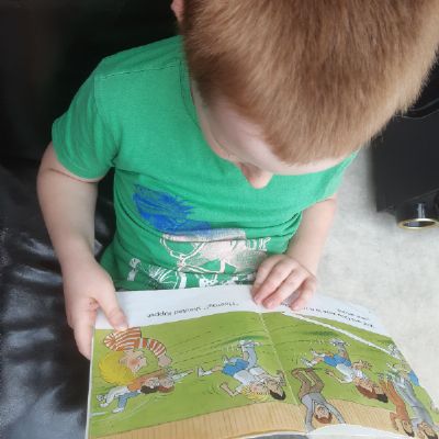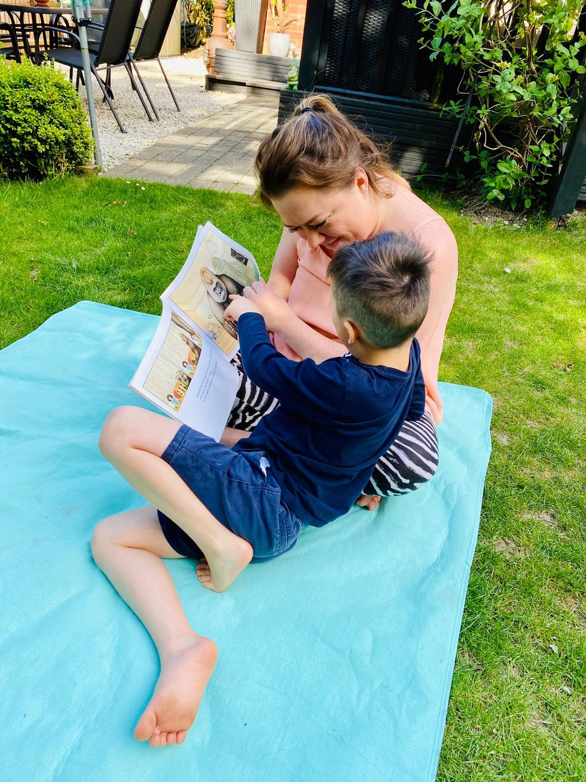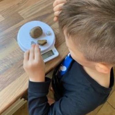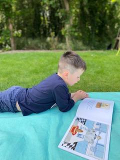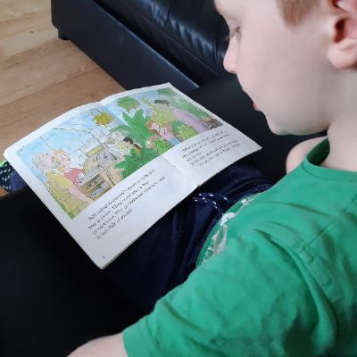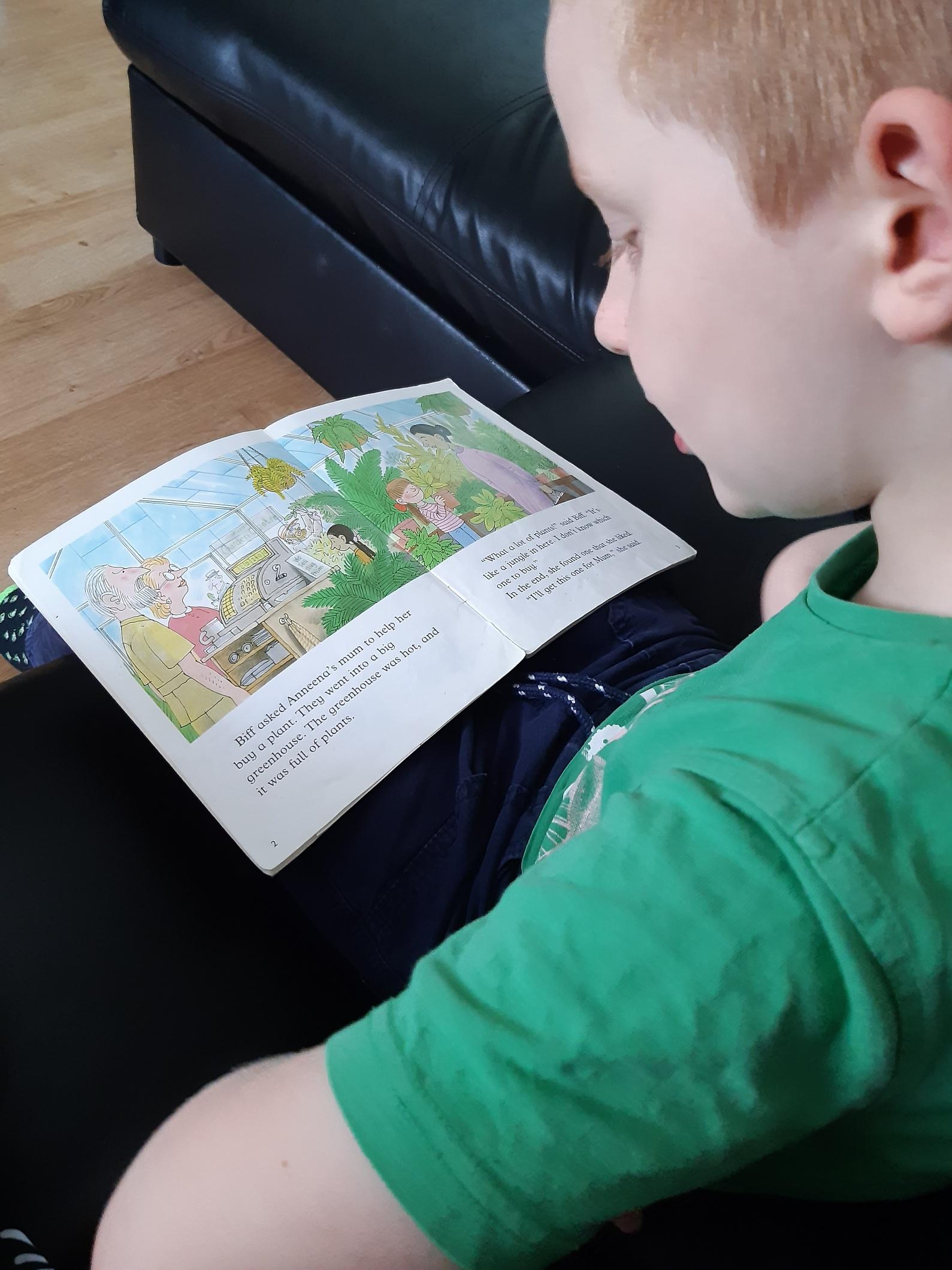 Today Luke got his Gorilla book that he ordered and it looks like he is enjoying reading it. He also has been doing some weighing activities and has made a great board game. Then he played football in the garden. Wow what a busy day!