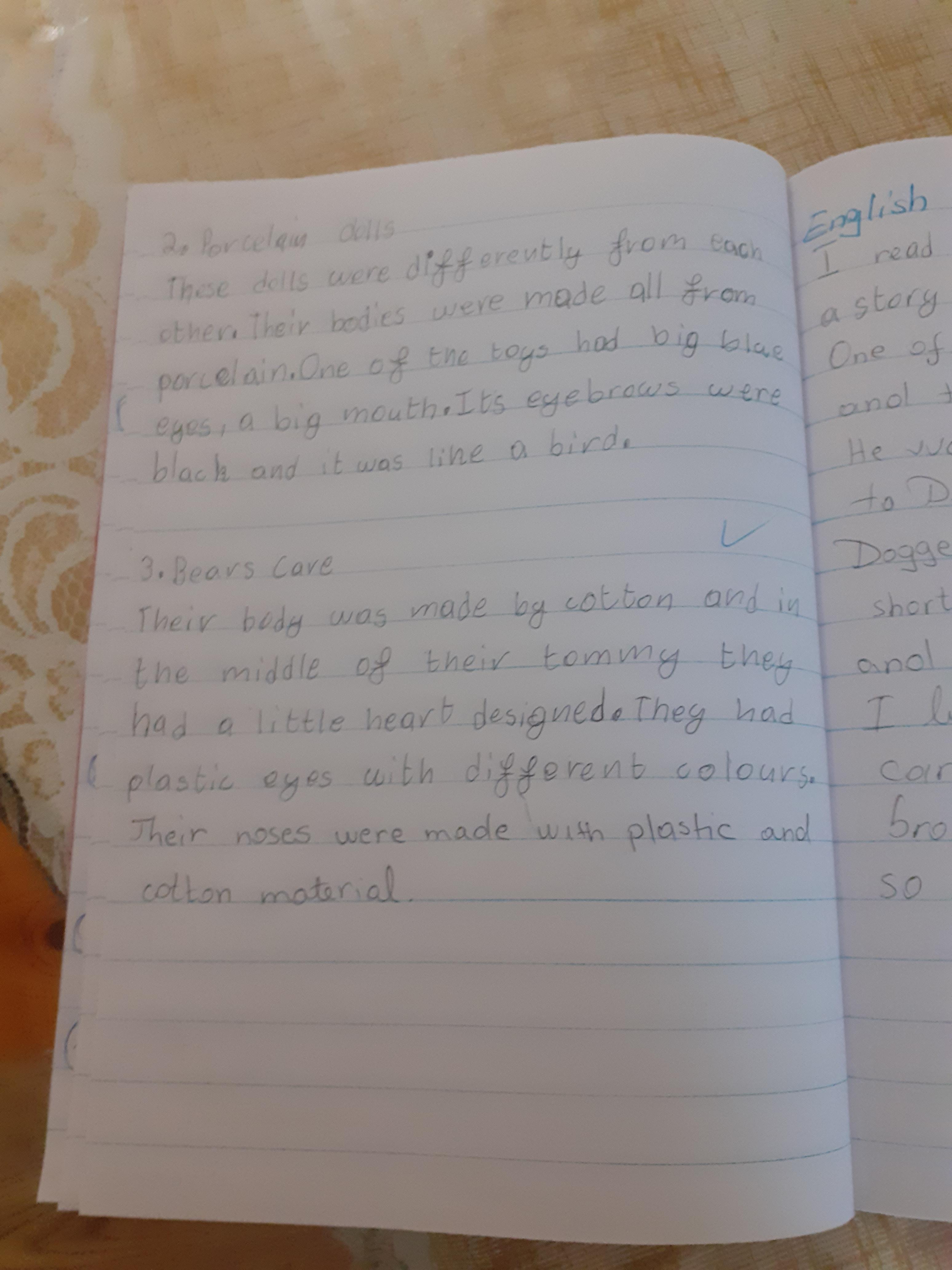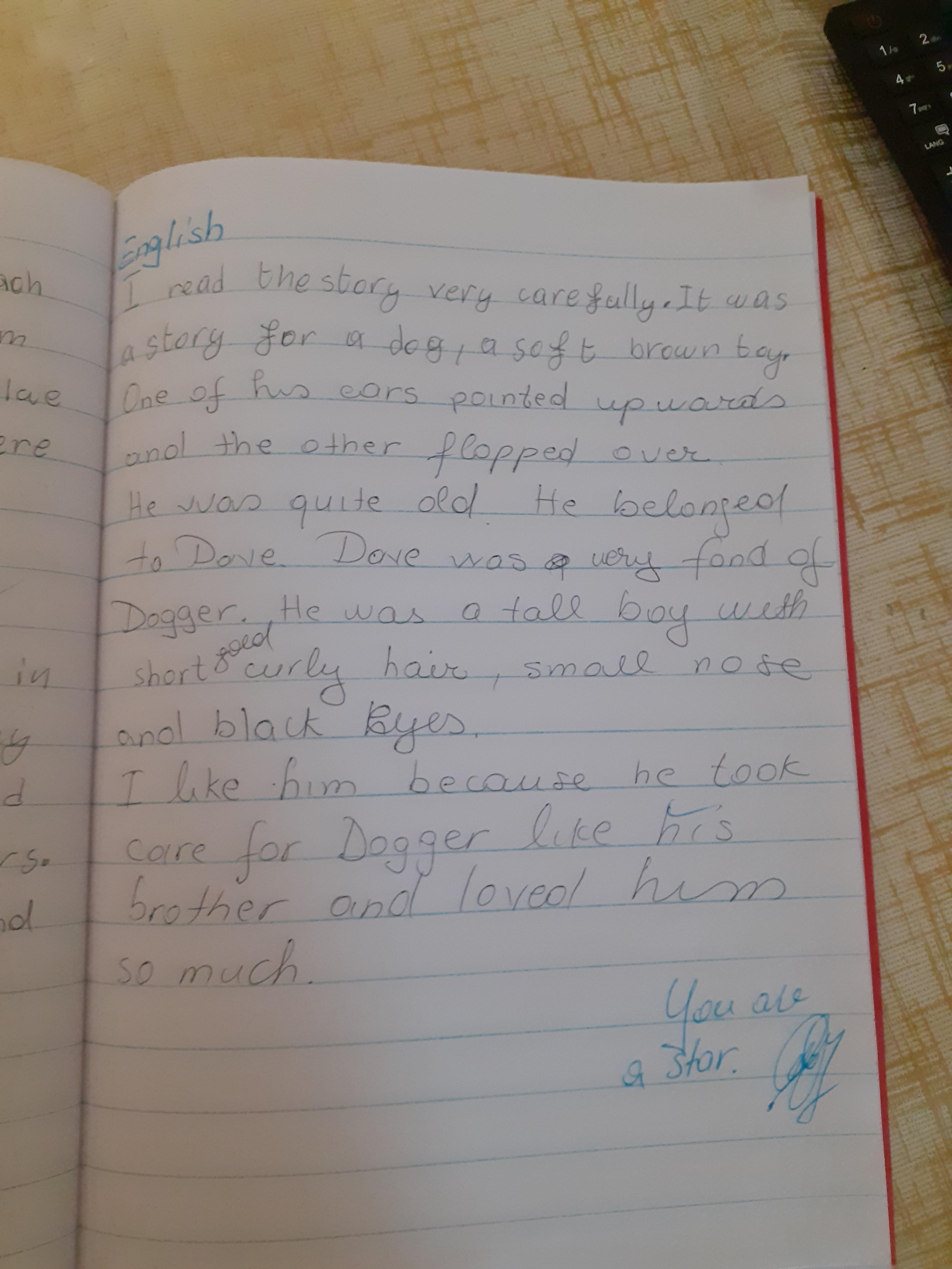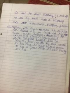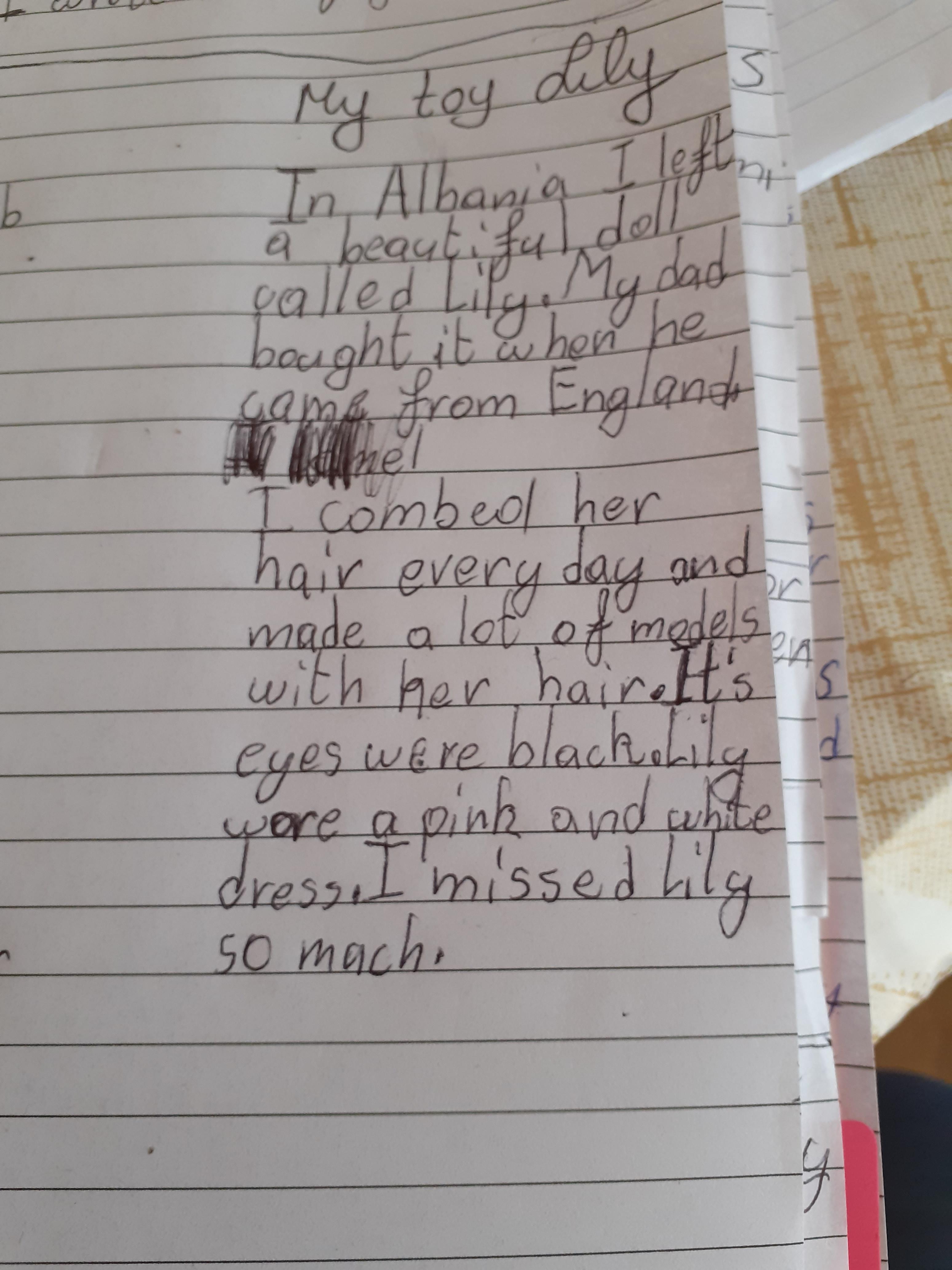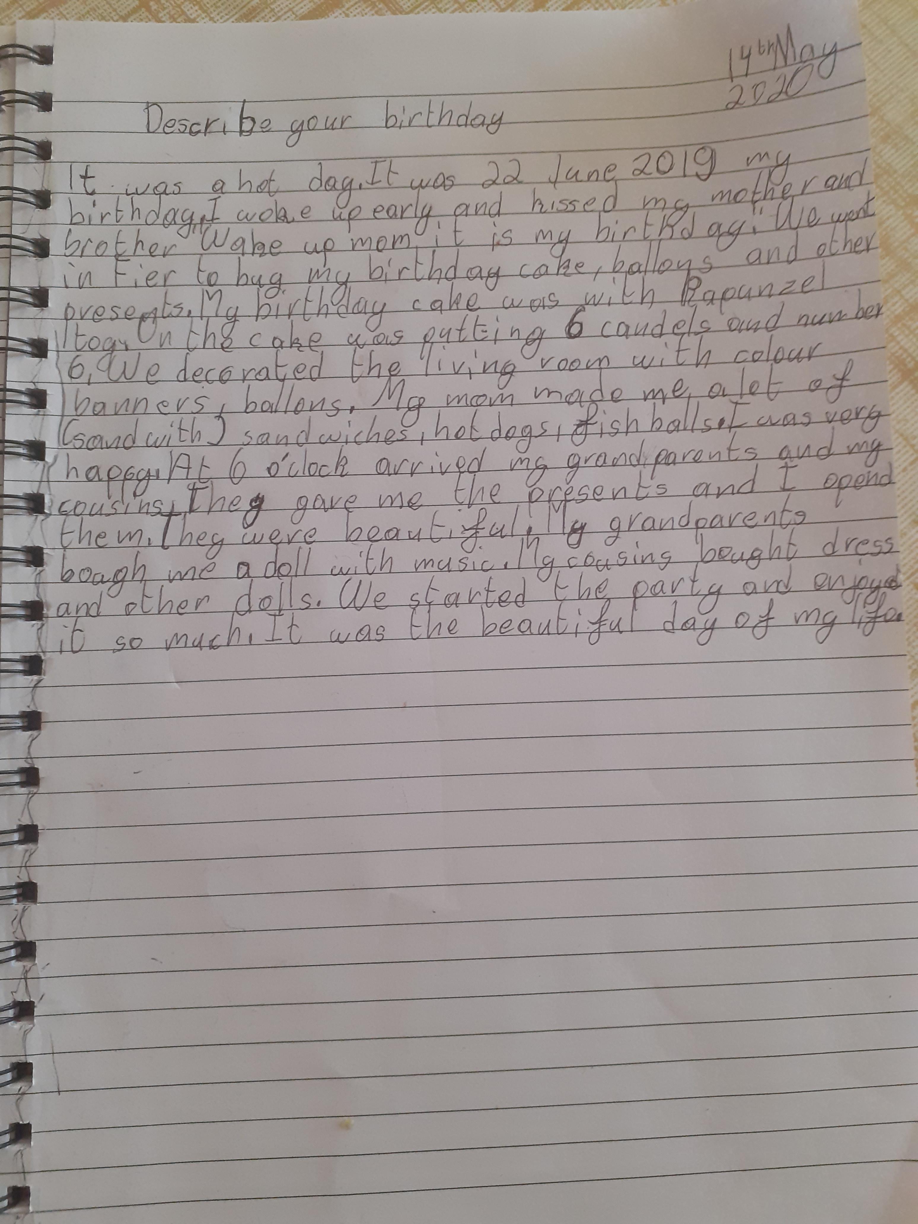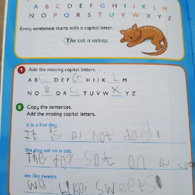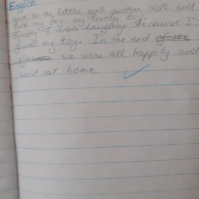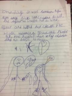 Zeineb is working hard and she and her family are celebrating the Muslim festival of Ramadan; where they have a special meal each evening. Zeineb has also written a story and has remembered her capital letters and full stops.