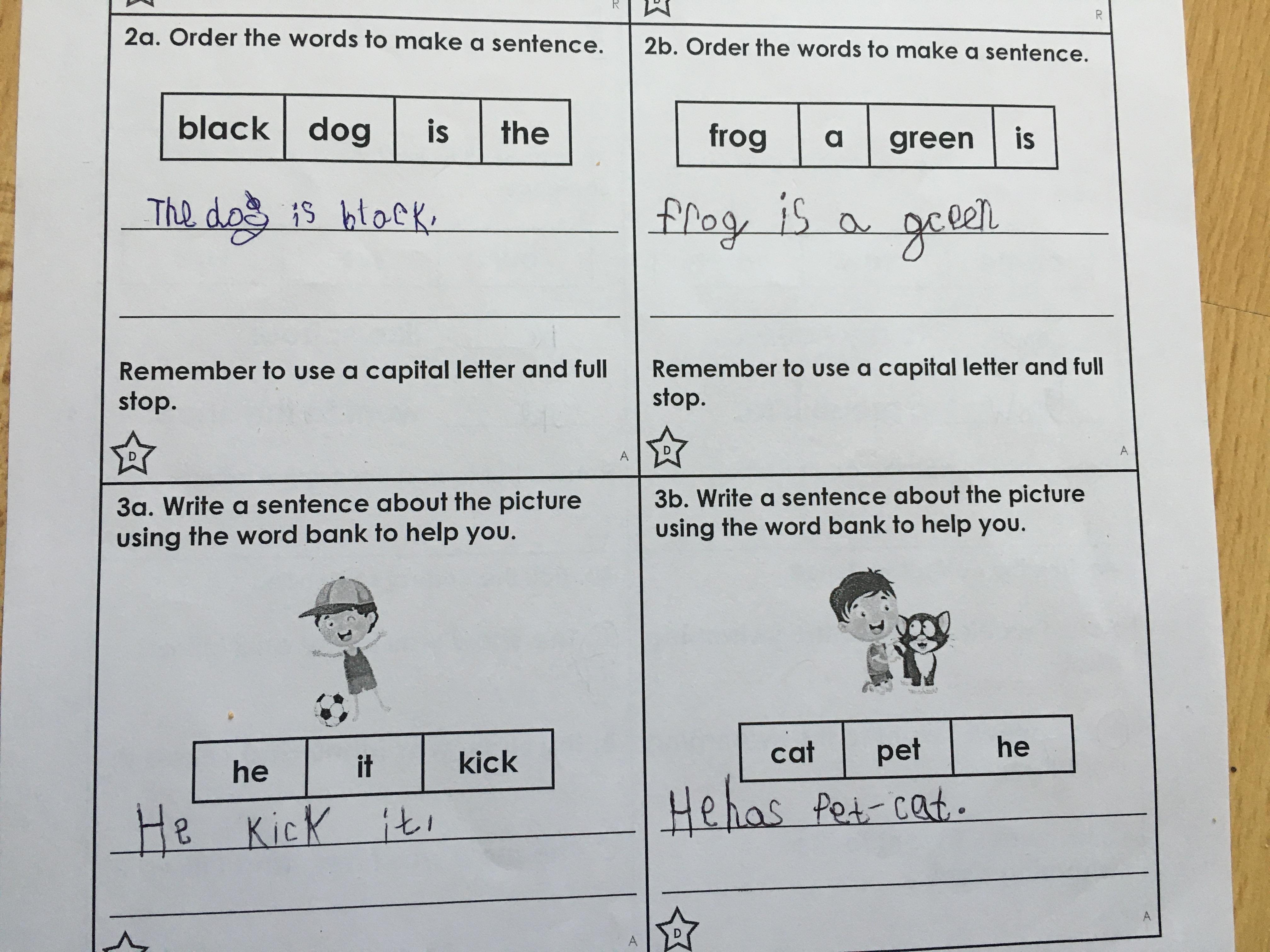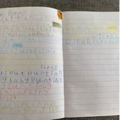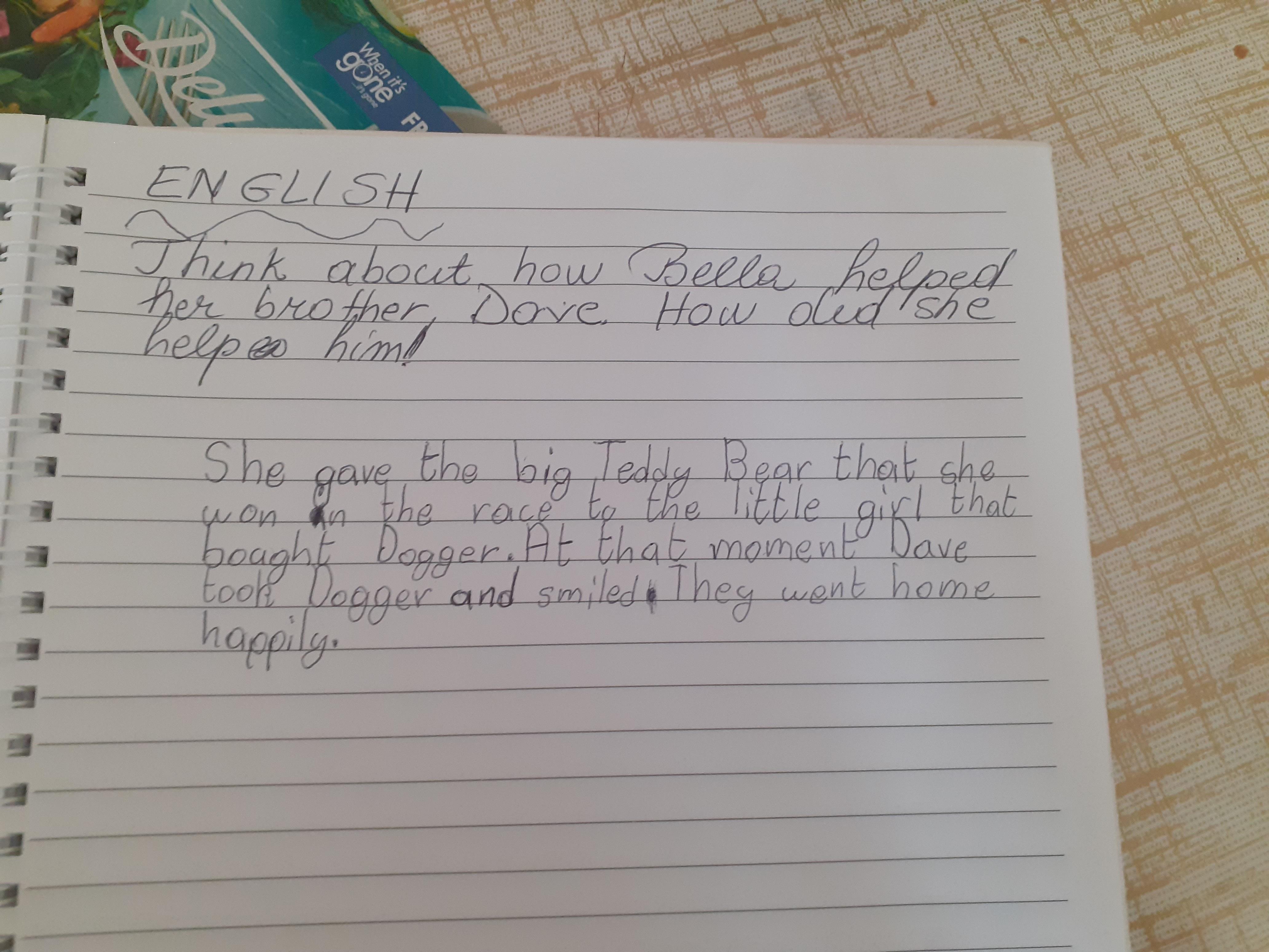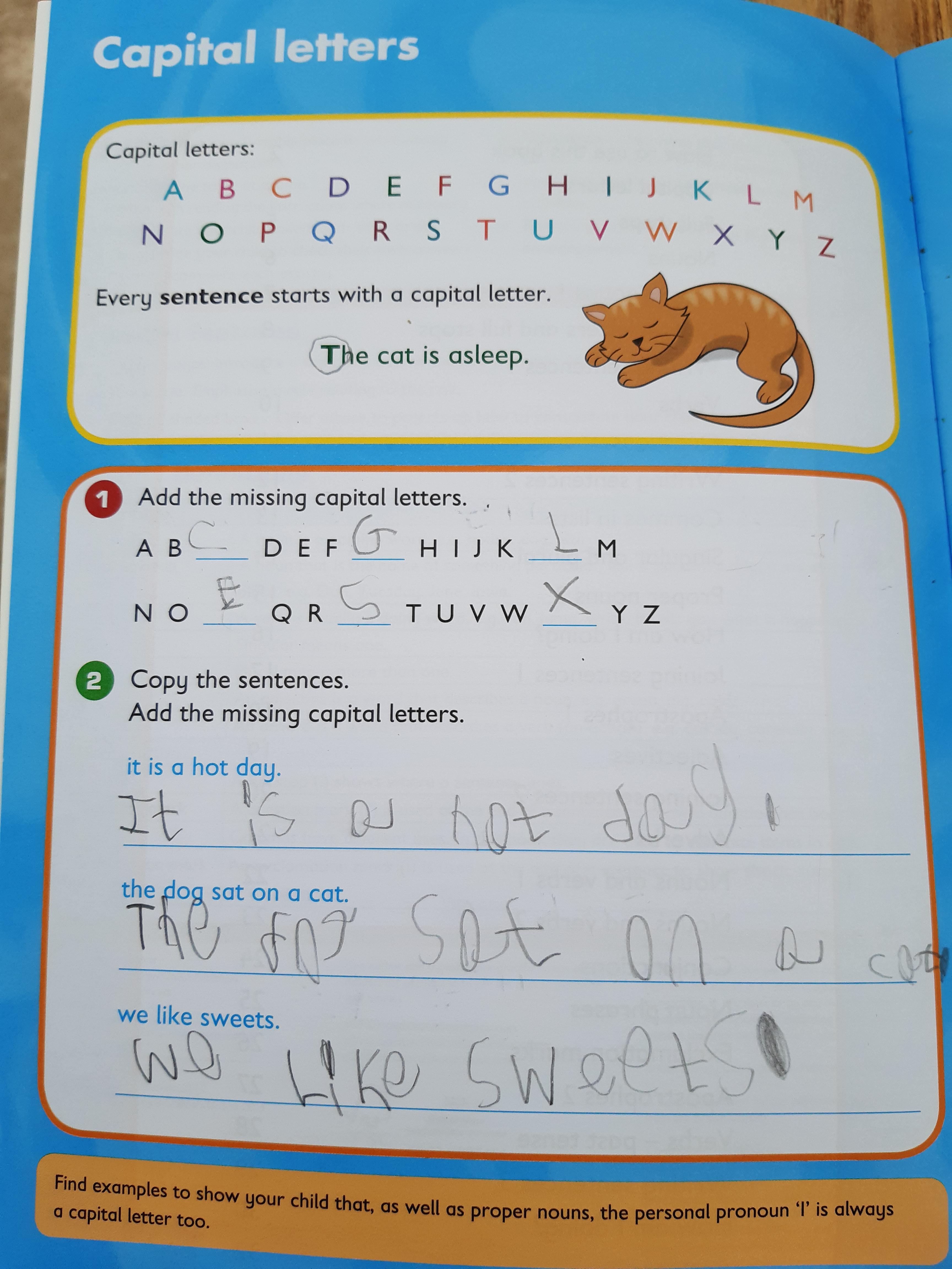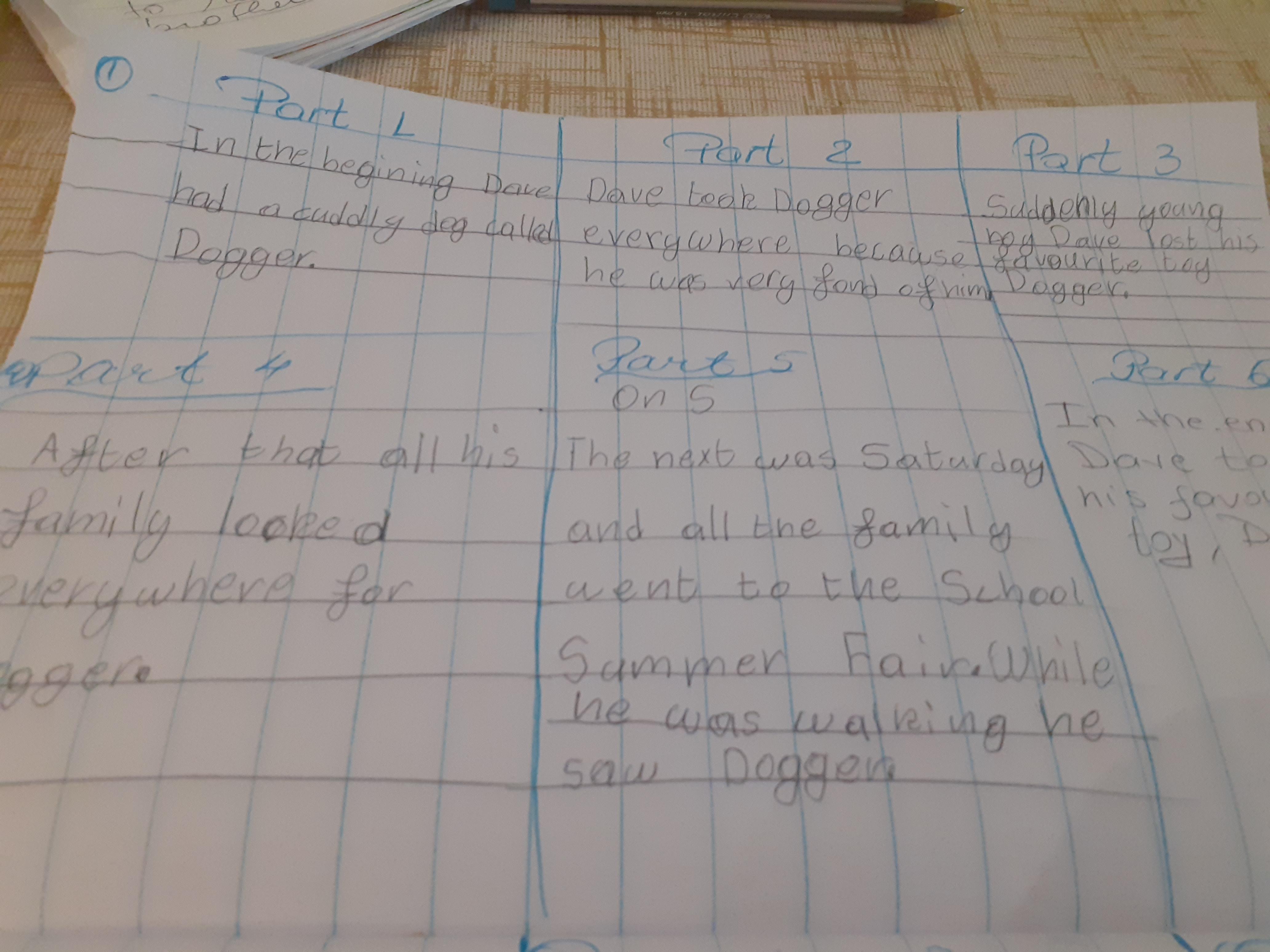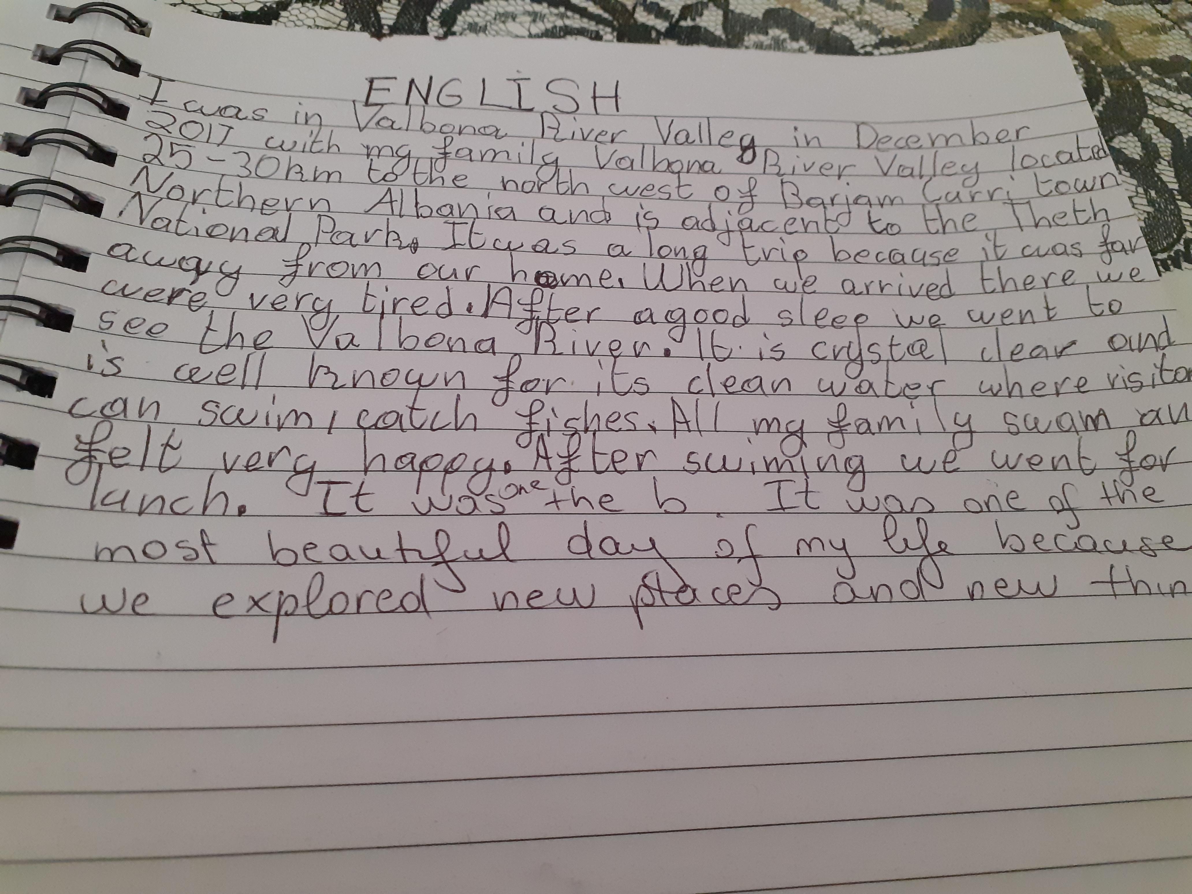 Zeineb is working hard and she and her family are celebrating the Muslim festival of Ramadan; where they have a special meal each evening. Zeineb has also written a story and has remembered her capital letters and full stops.