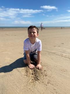 Luke sent in his video singing Looking for the Rainbow to Miss Sutherland - well done Luke you look great in your school uniform! He also had some time on the beach for his PE lesson! What a good idea!