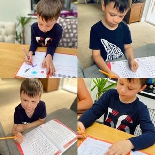 Lots of you are keeping busy with the activities and working hard at home. Well done! Oskaras and Natalia are practicing their handwriting. Melisa has completed her tasks for today.