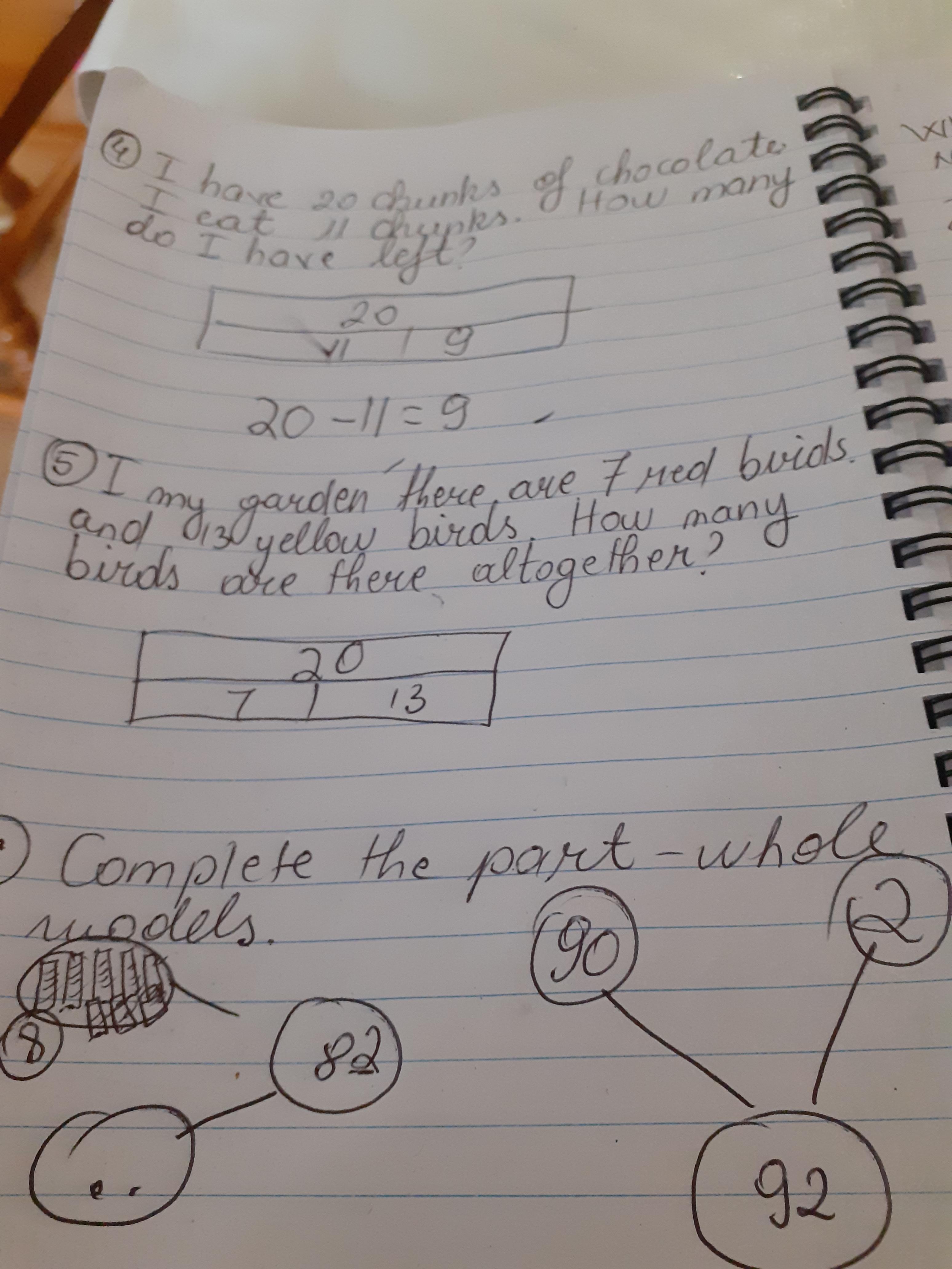 Zeineb has been working on part, part whole method to make 2 digit numbers and has written about going to the zoo and what she saw. Sounds like you saw lots of lovely animals!