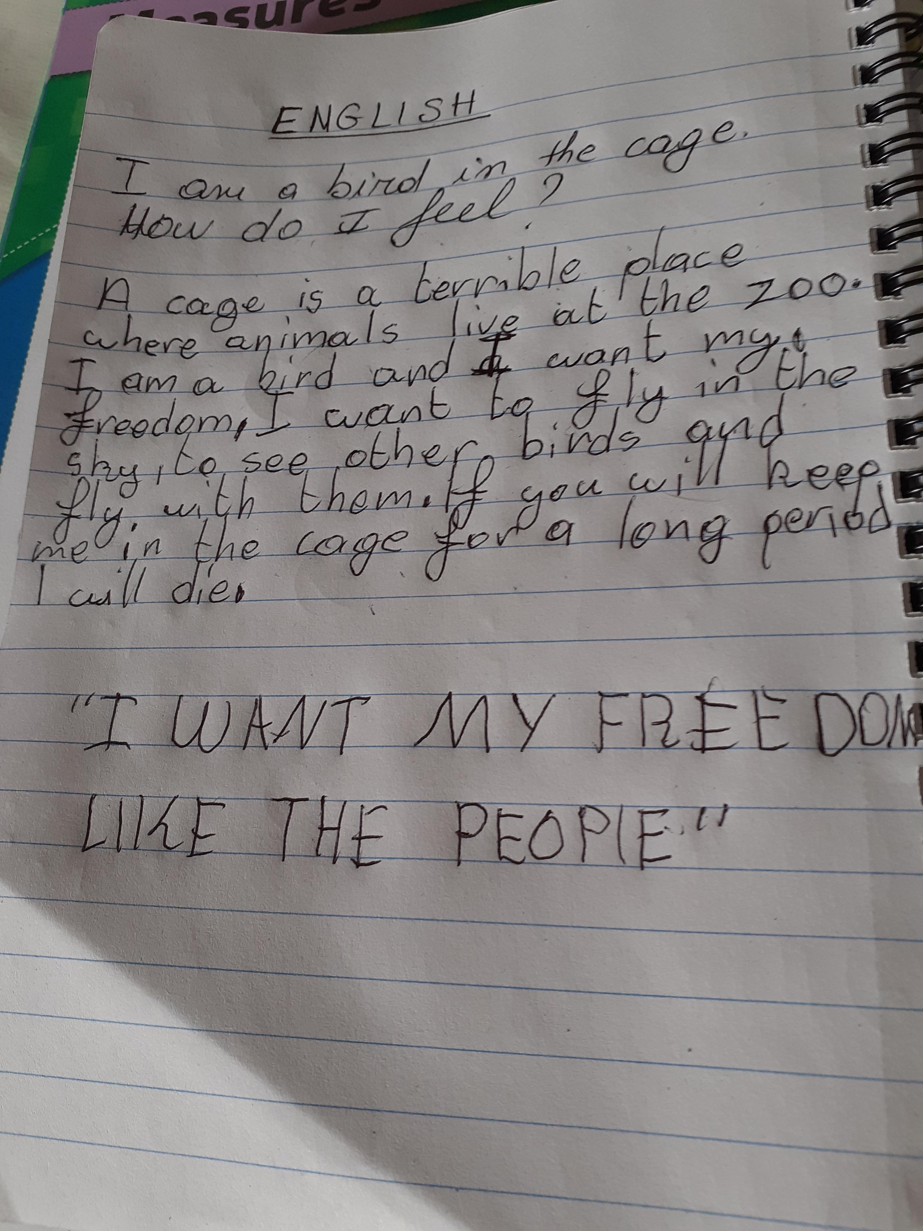 Melisa has sent in a lovely painted heart and has been working hard on her maths! She has also imagined herself as a bird kept in a cage at the zoo. Well done Melisa!
