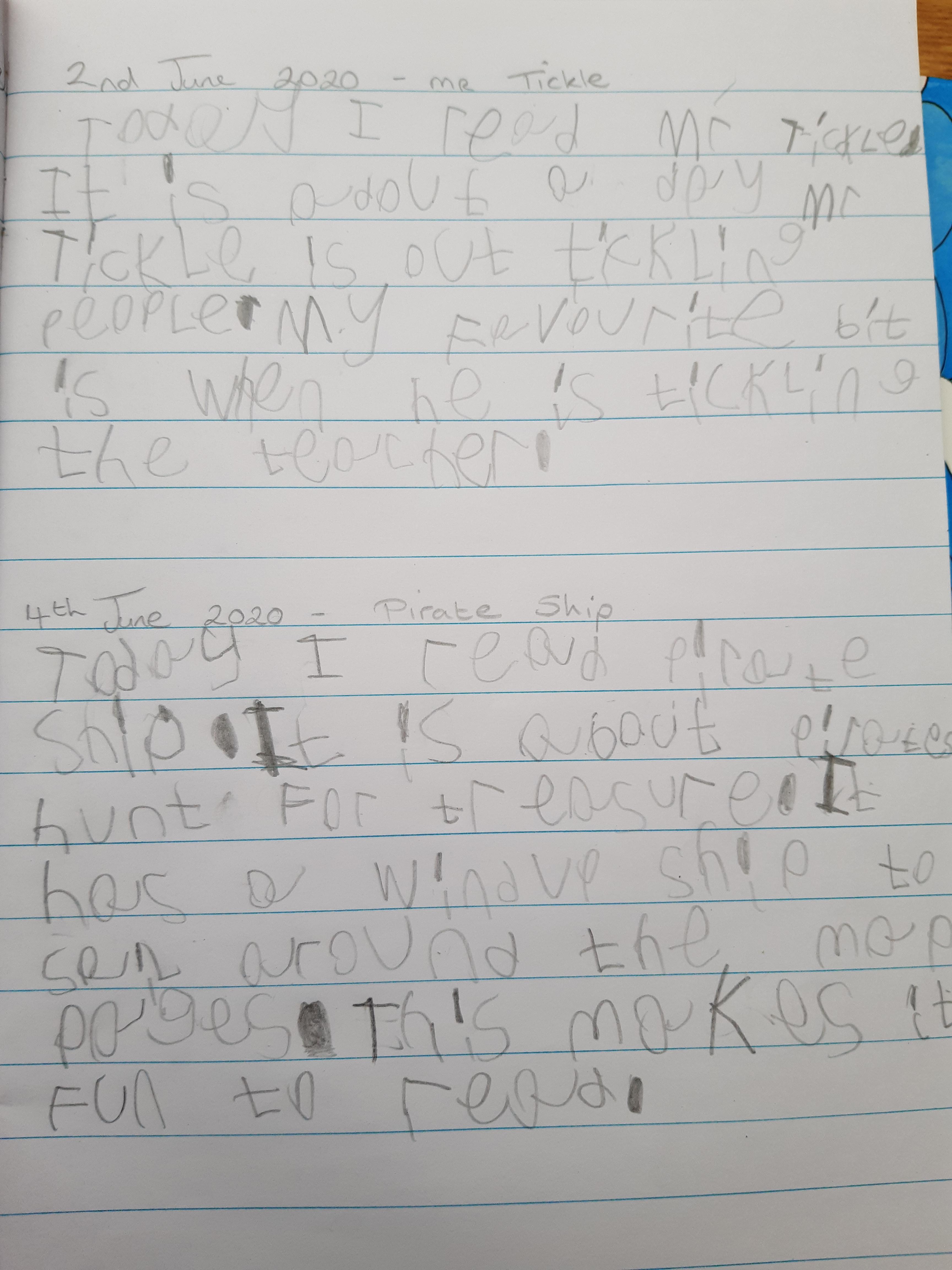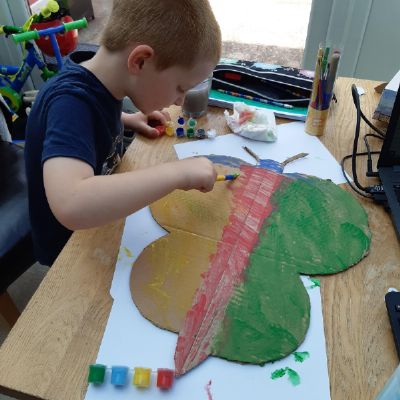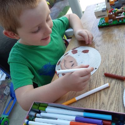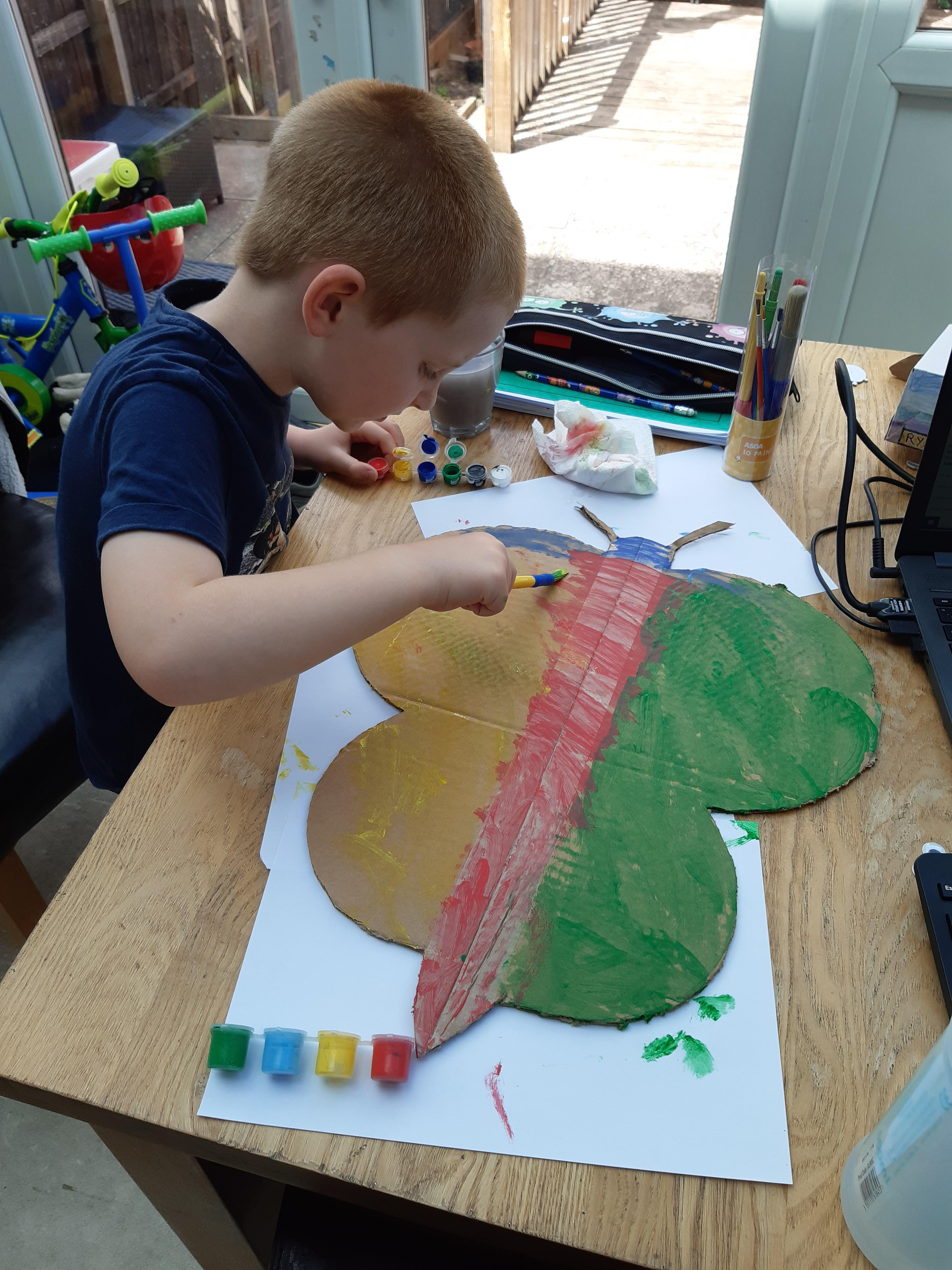 Ryan has been very busy making a giraffe mask, writing about the Mr Men books he is reading, practising his spellings, painting pebbles and doing his activity books! Wow Ryan - well done and it is lovely to see your happy smiley face!
