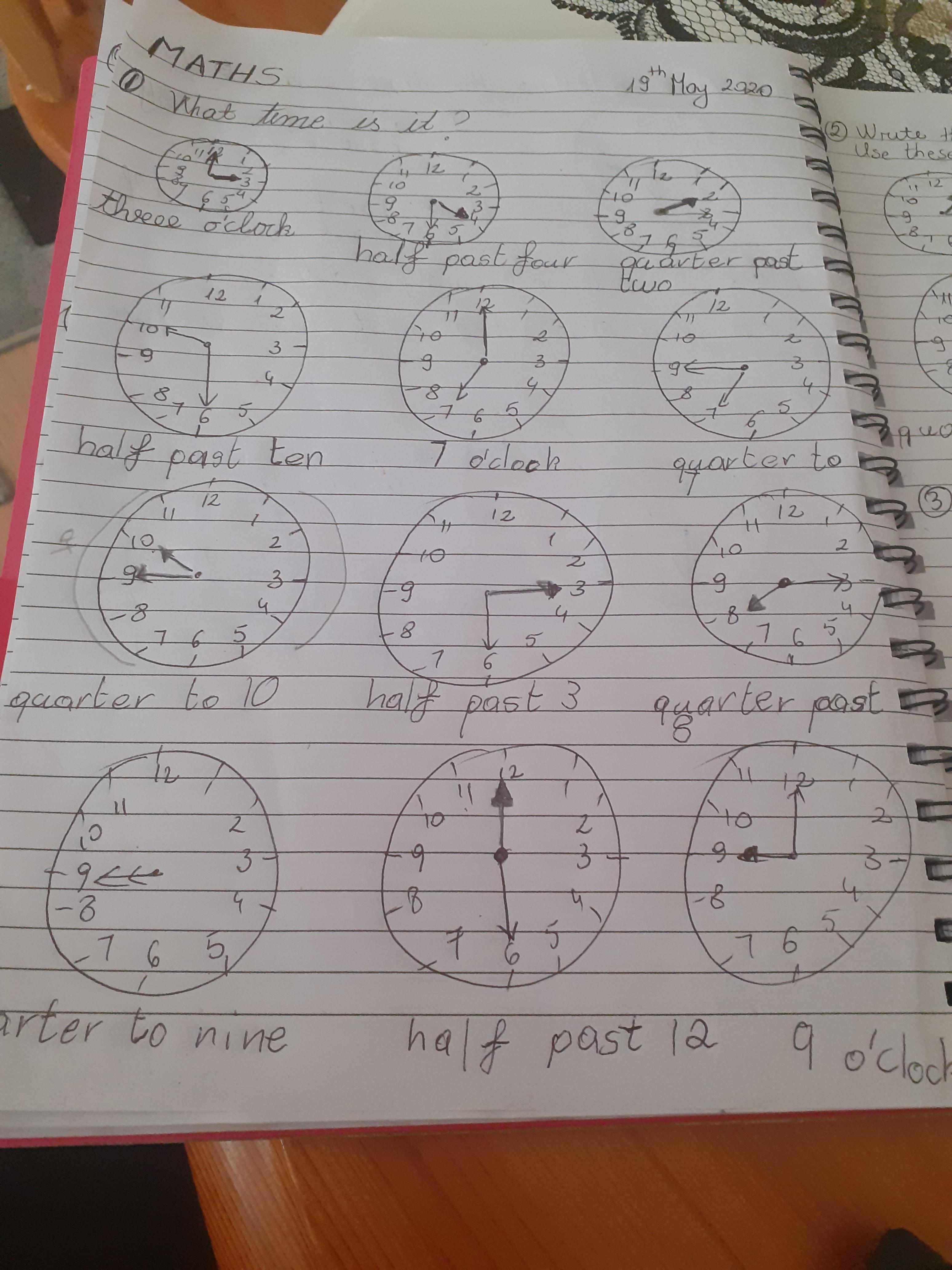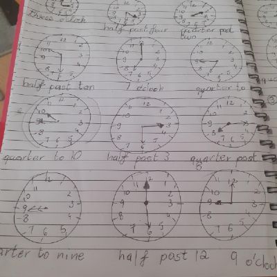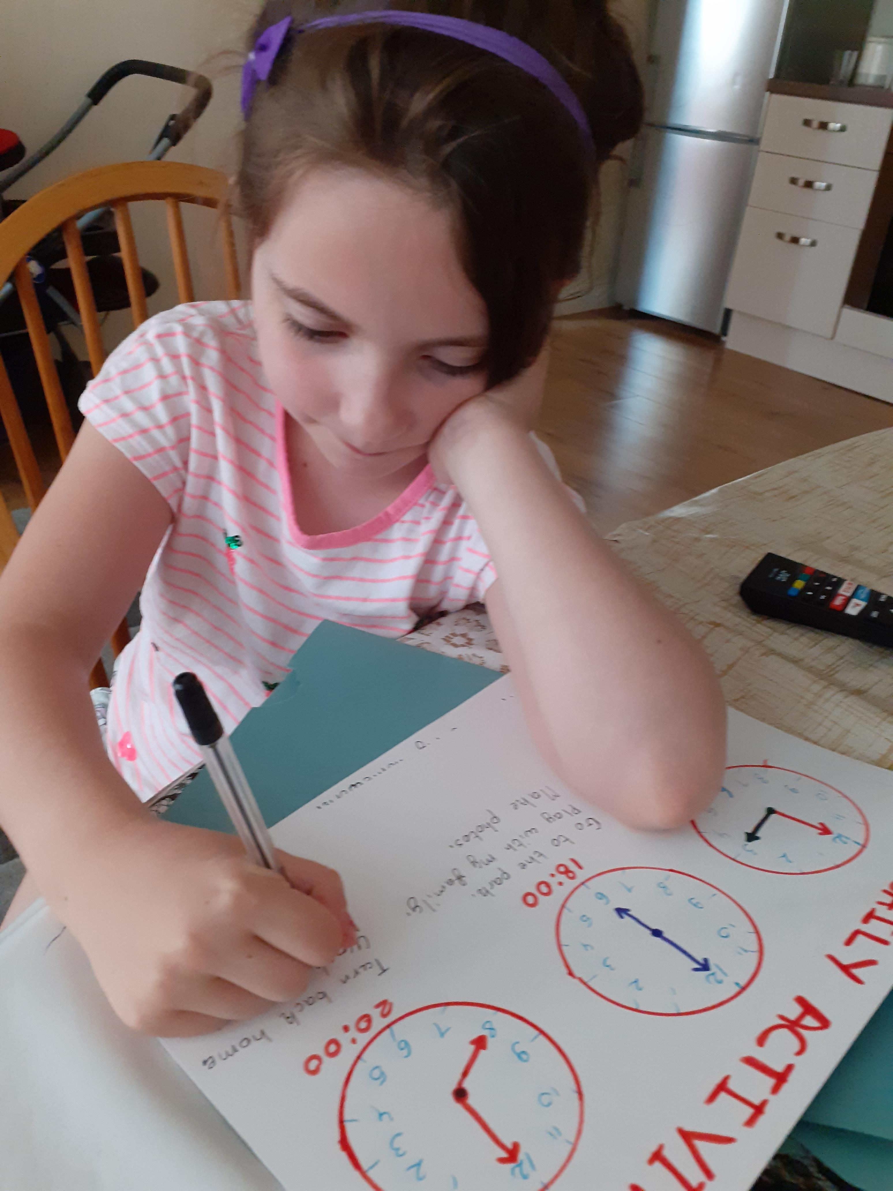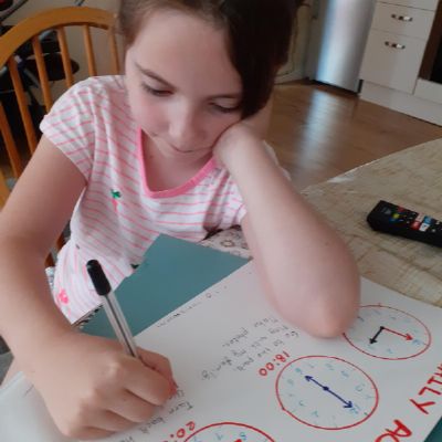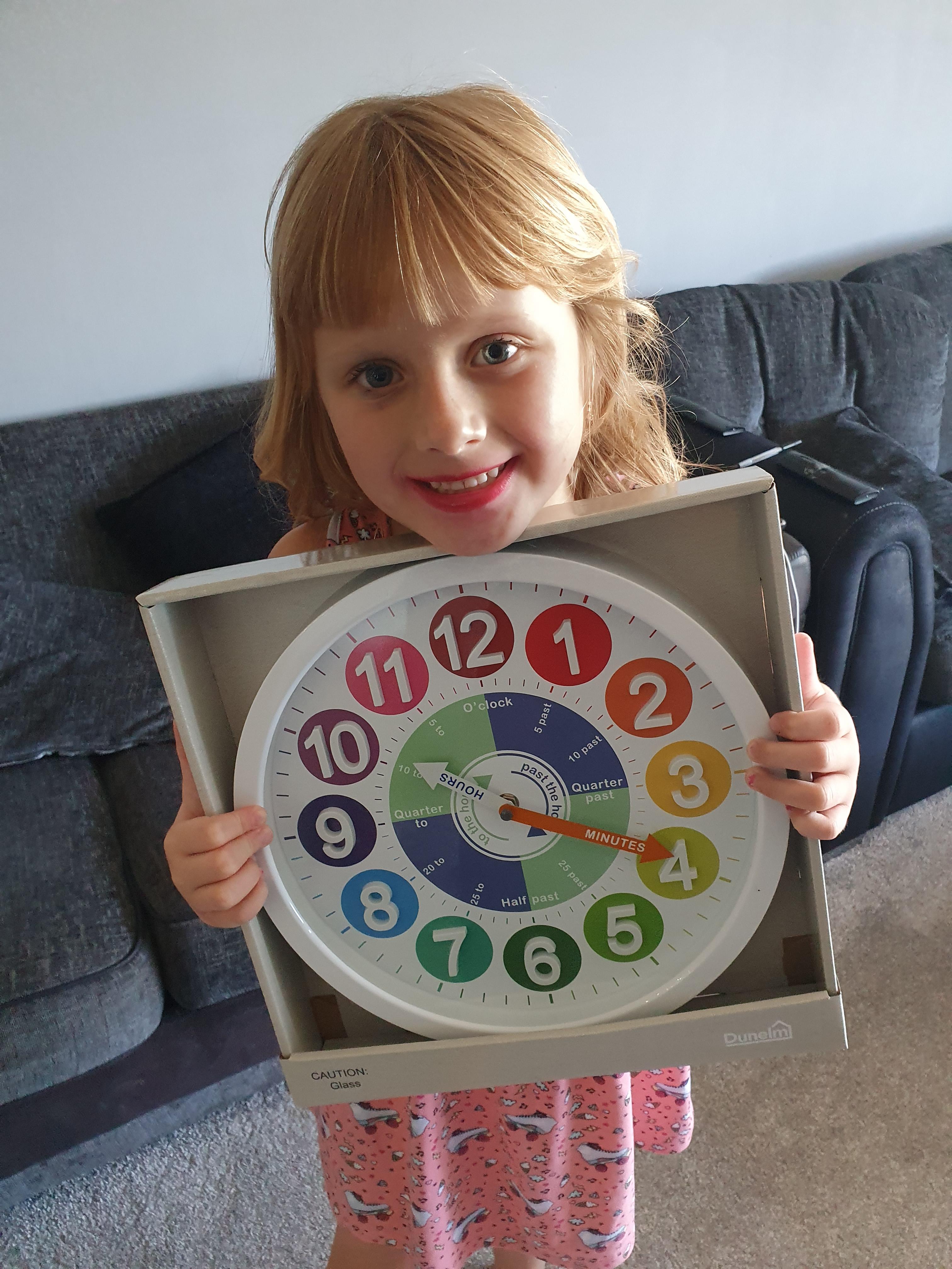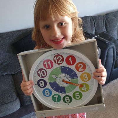 Term 6 home/learning - Natalia has been learning to tell the time with her new clock and working hard on her activity books. Well done Natalia! You superstar!