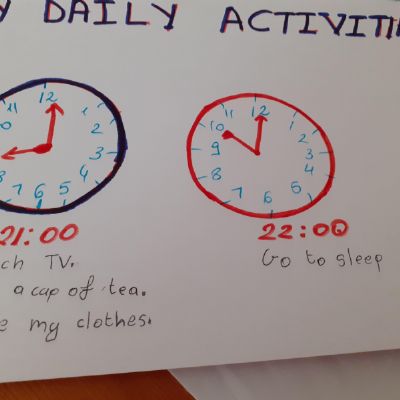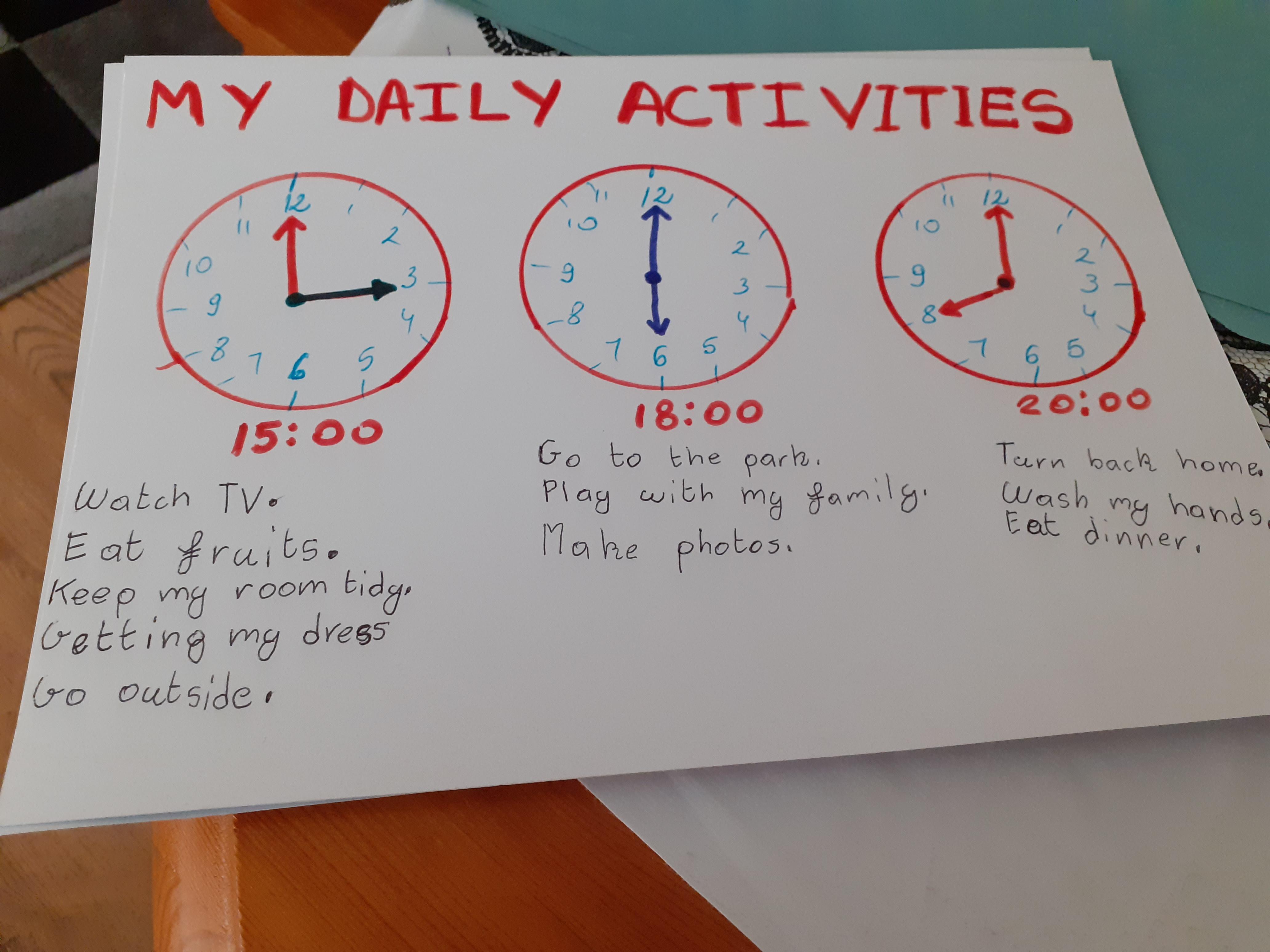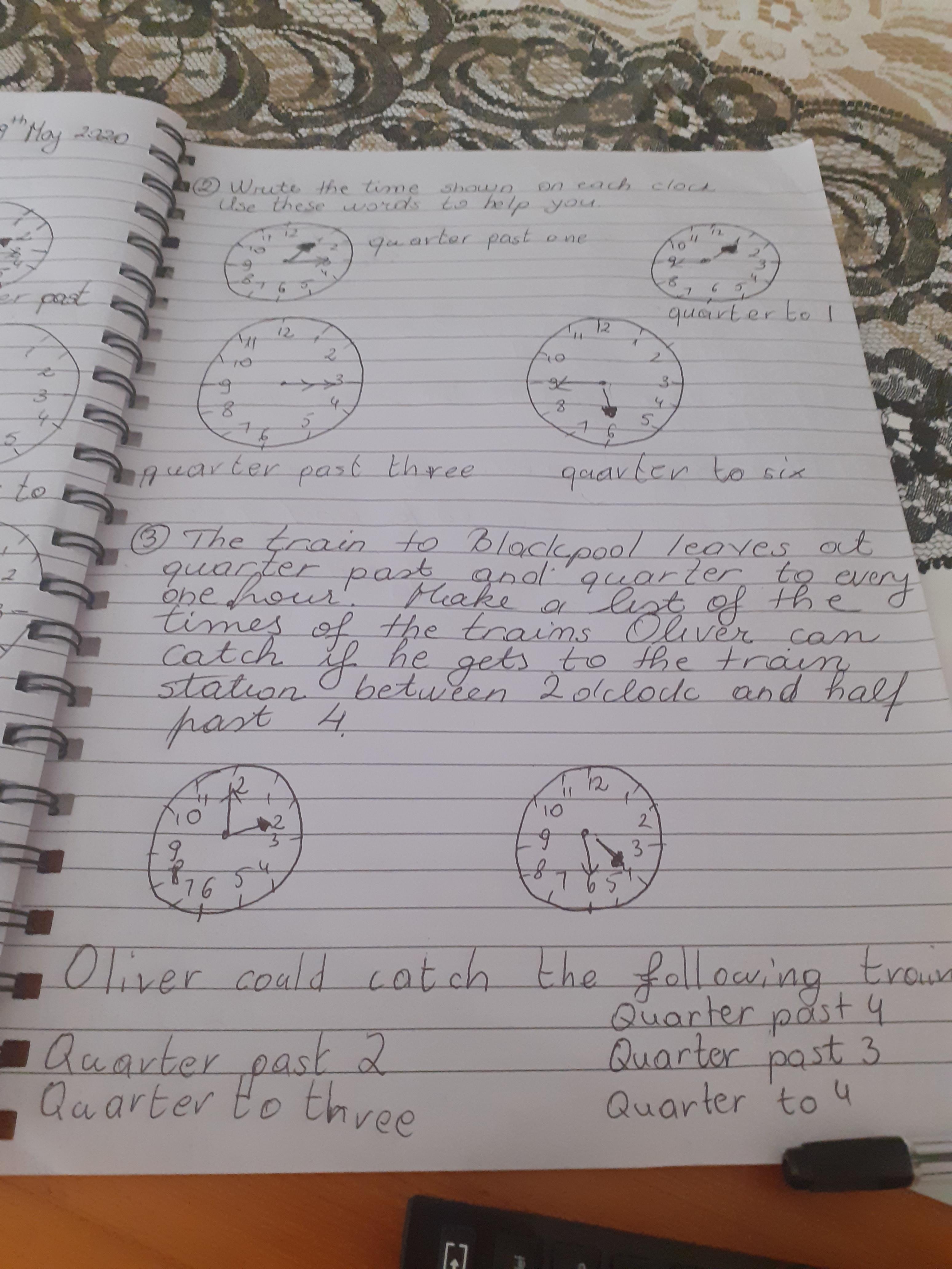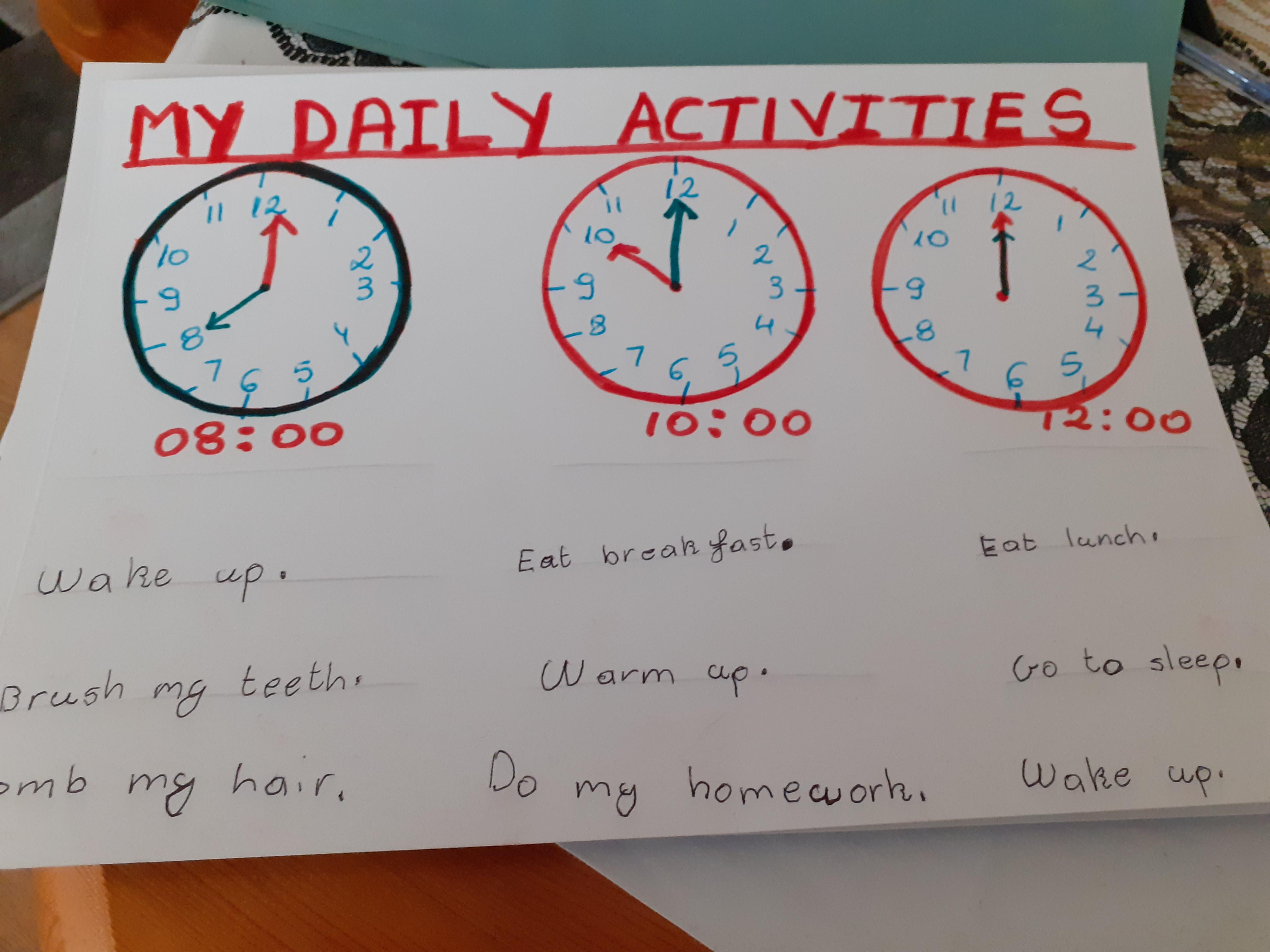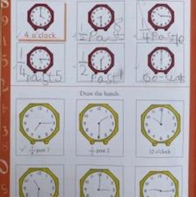 Term 6 home/learning - Natalia has been learning to tell the time with her new clock and working hard on her activity books. Well done Natalia! You superstar!