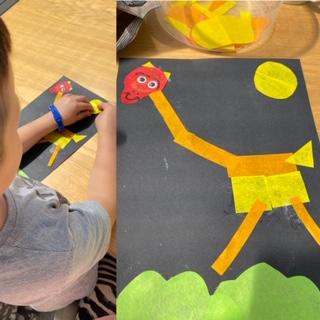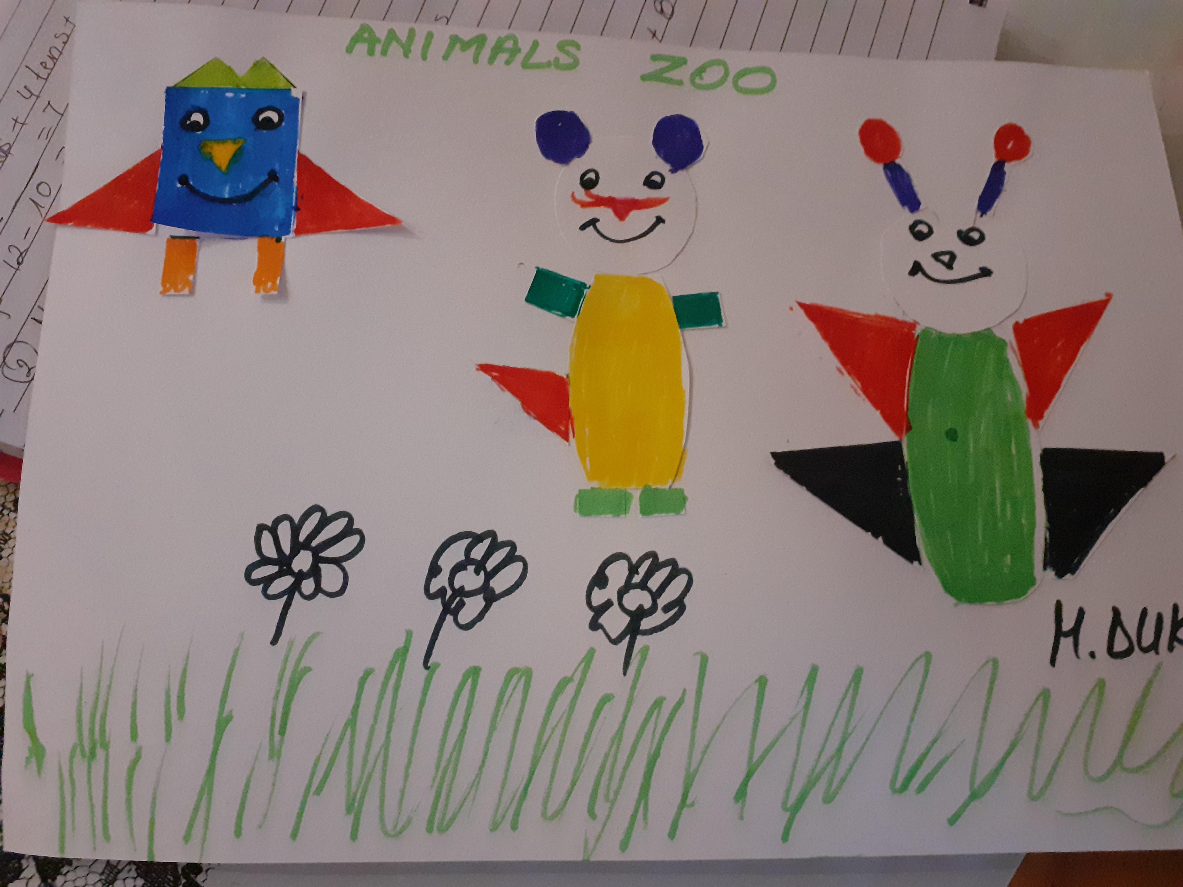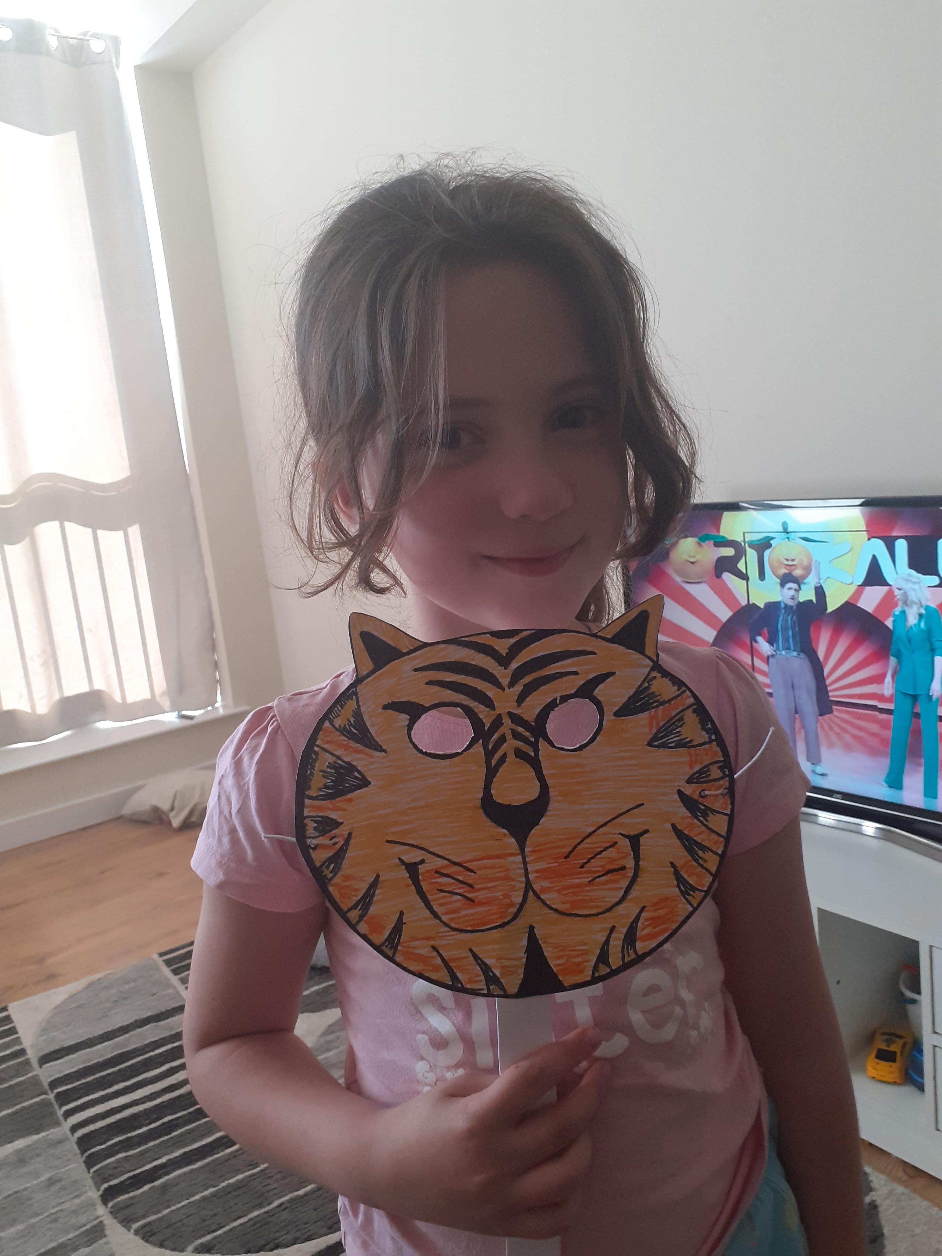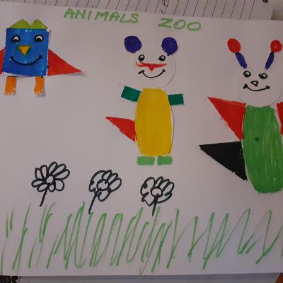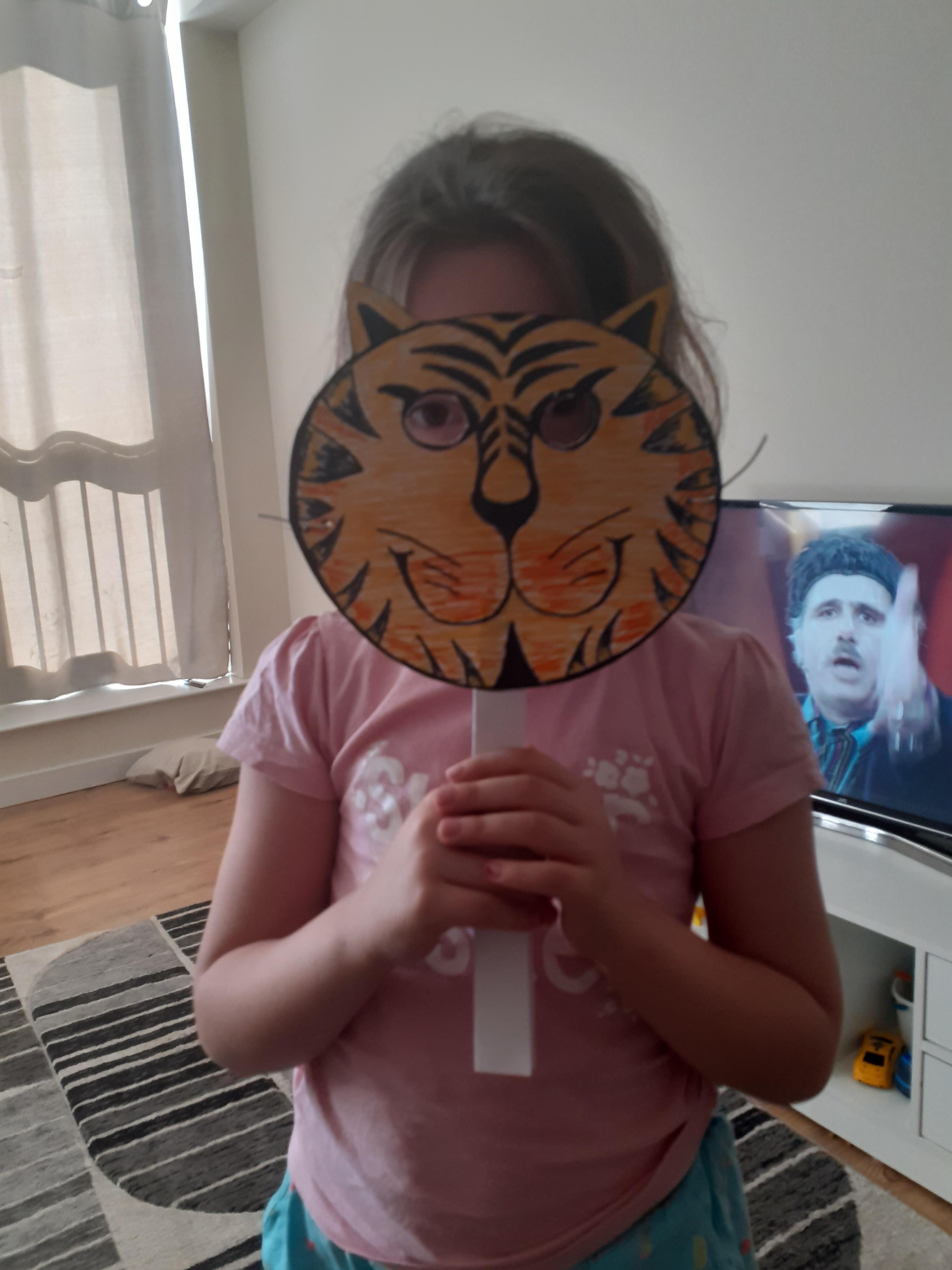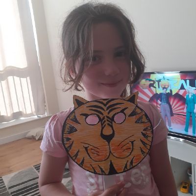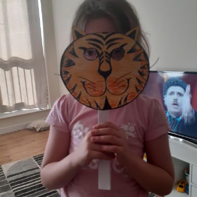 Melisa has working on her work books and has been working on making 2 digit numbers using the part, part whole method and she has made a fantastic tiger mask! She also made some animals using 2D shapes and painted some lovely pictures.