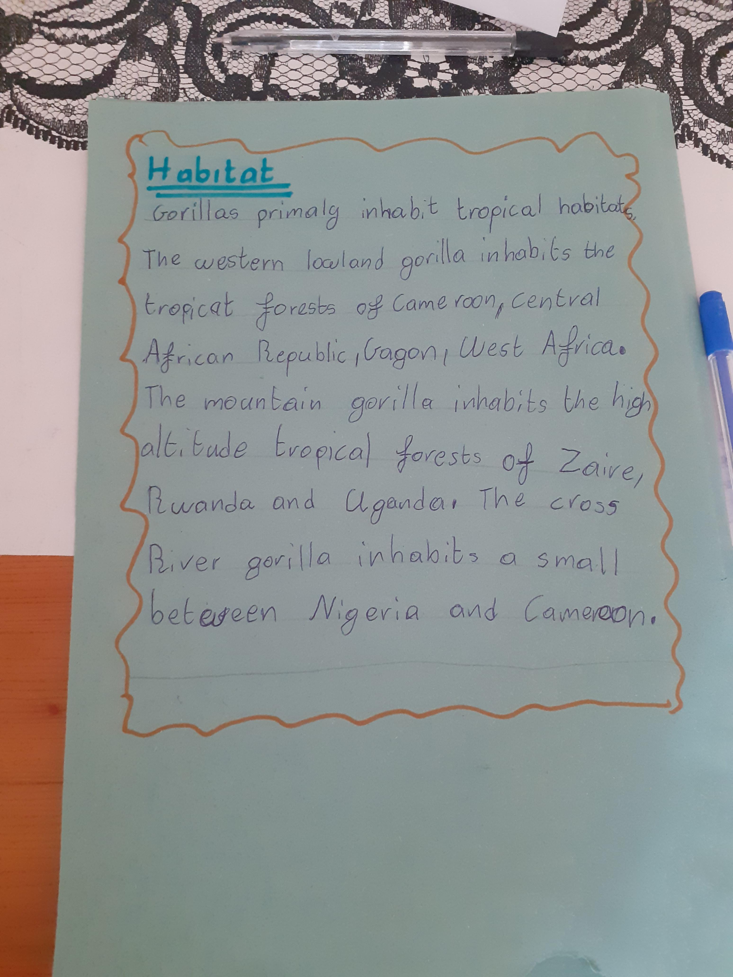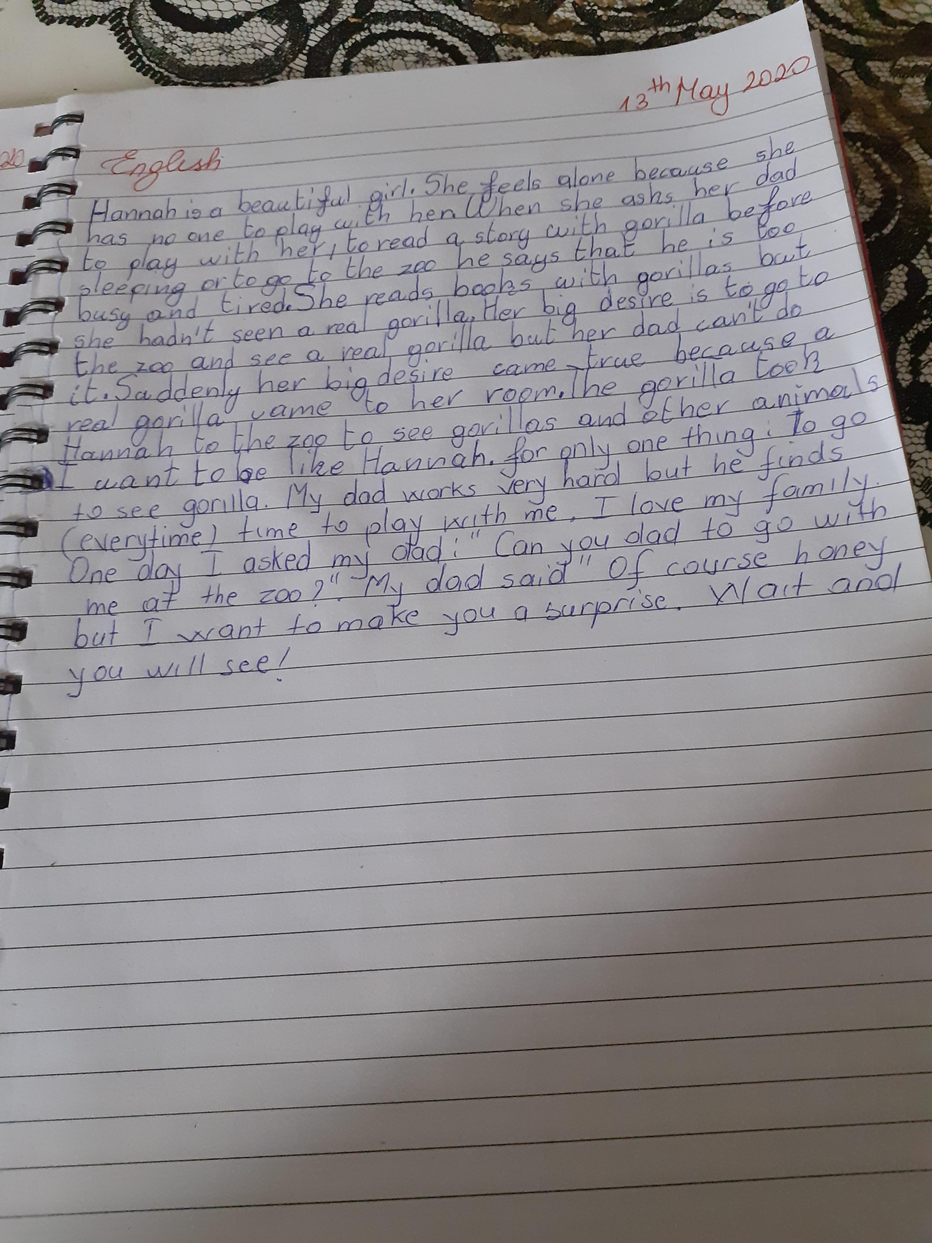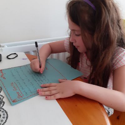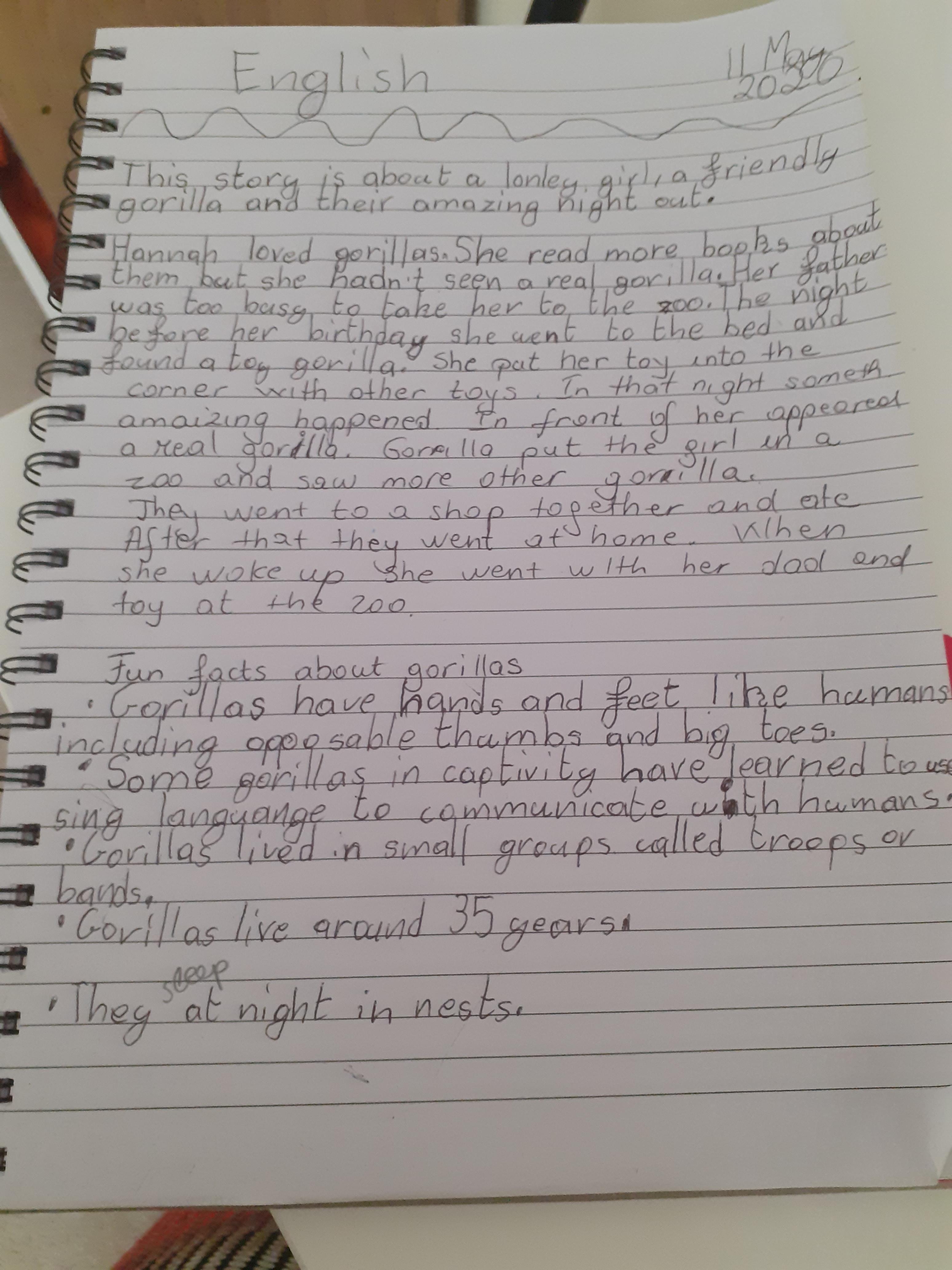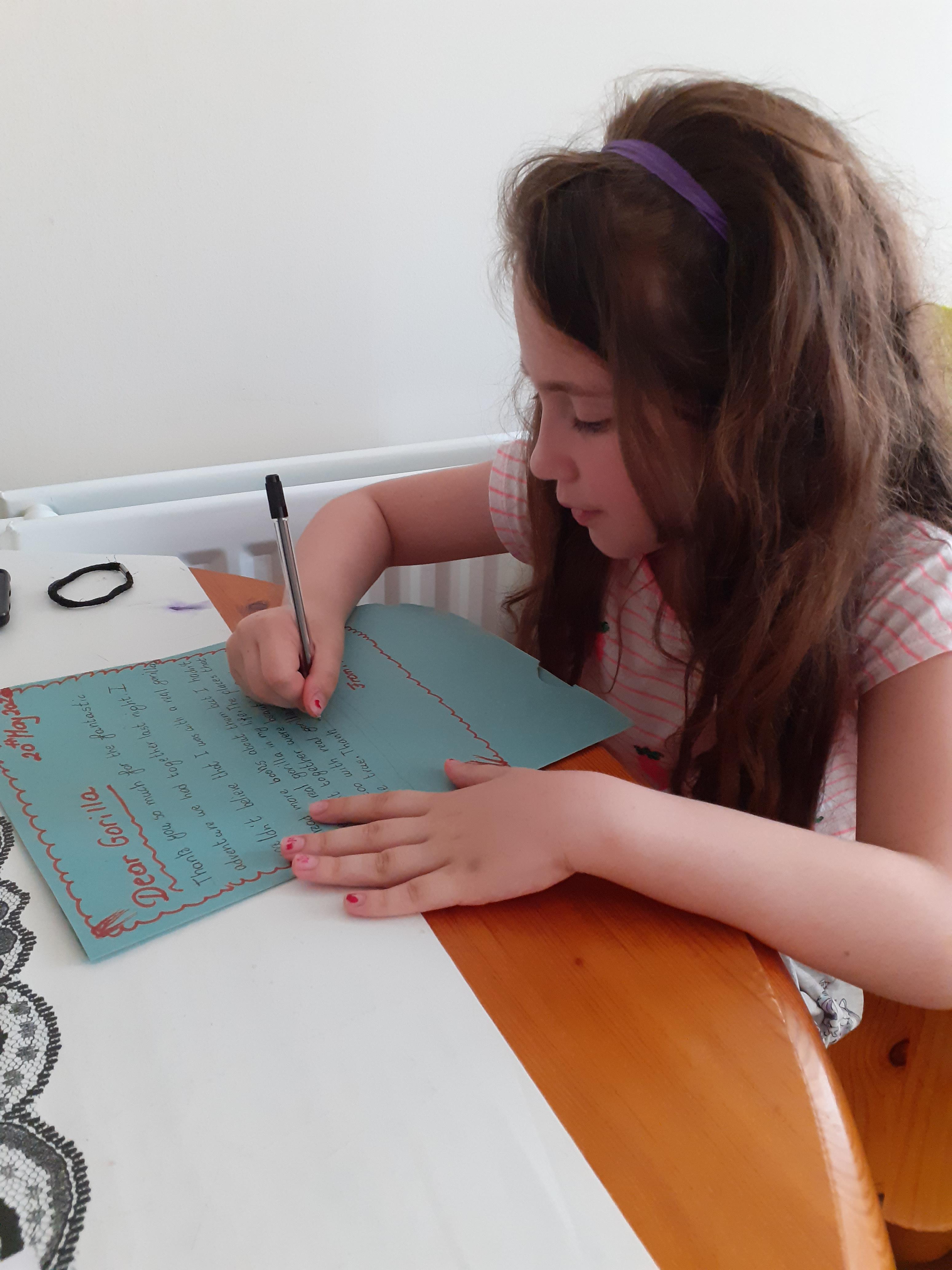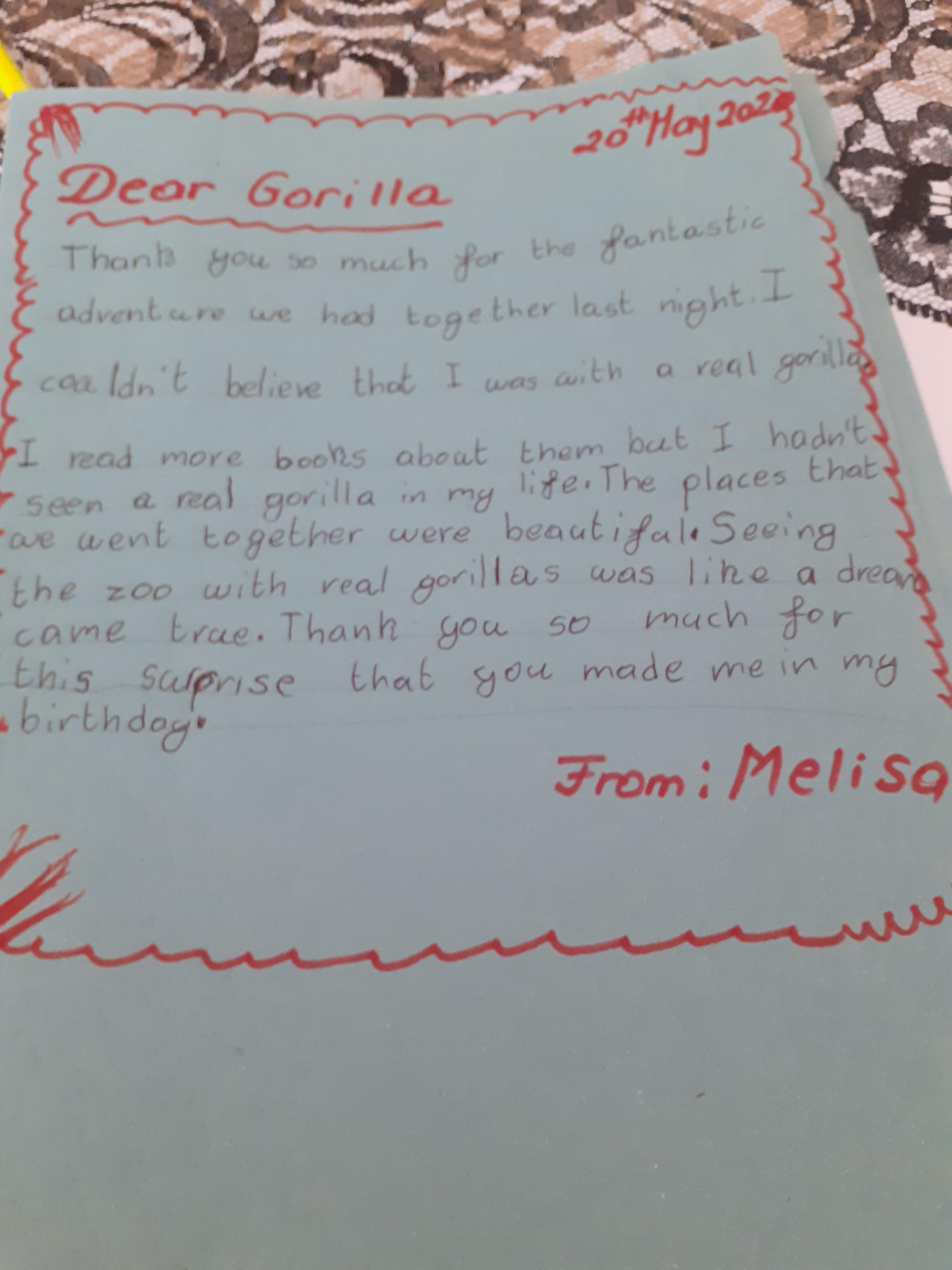 Melisa has worked hard on writing out her daily timetable with times on the clocks and she wrote a letter to say thank you to the gorilla for her adventure - what a thoughtful letter!