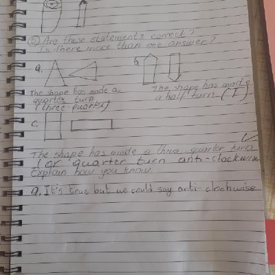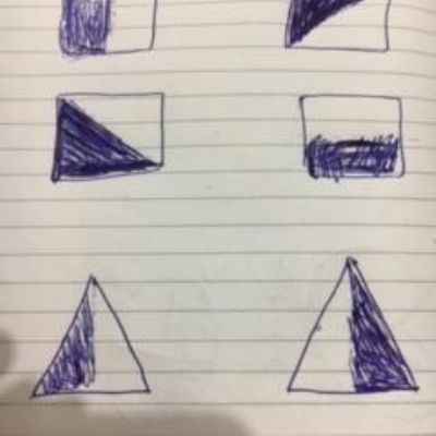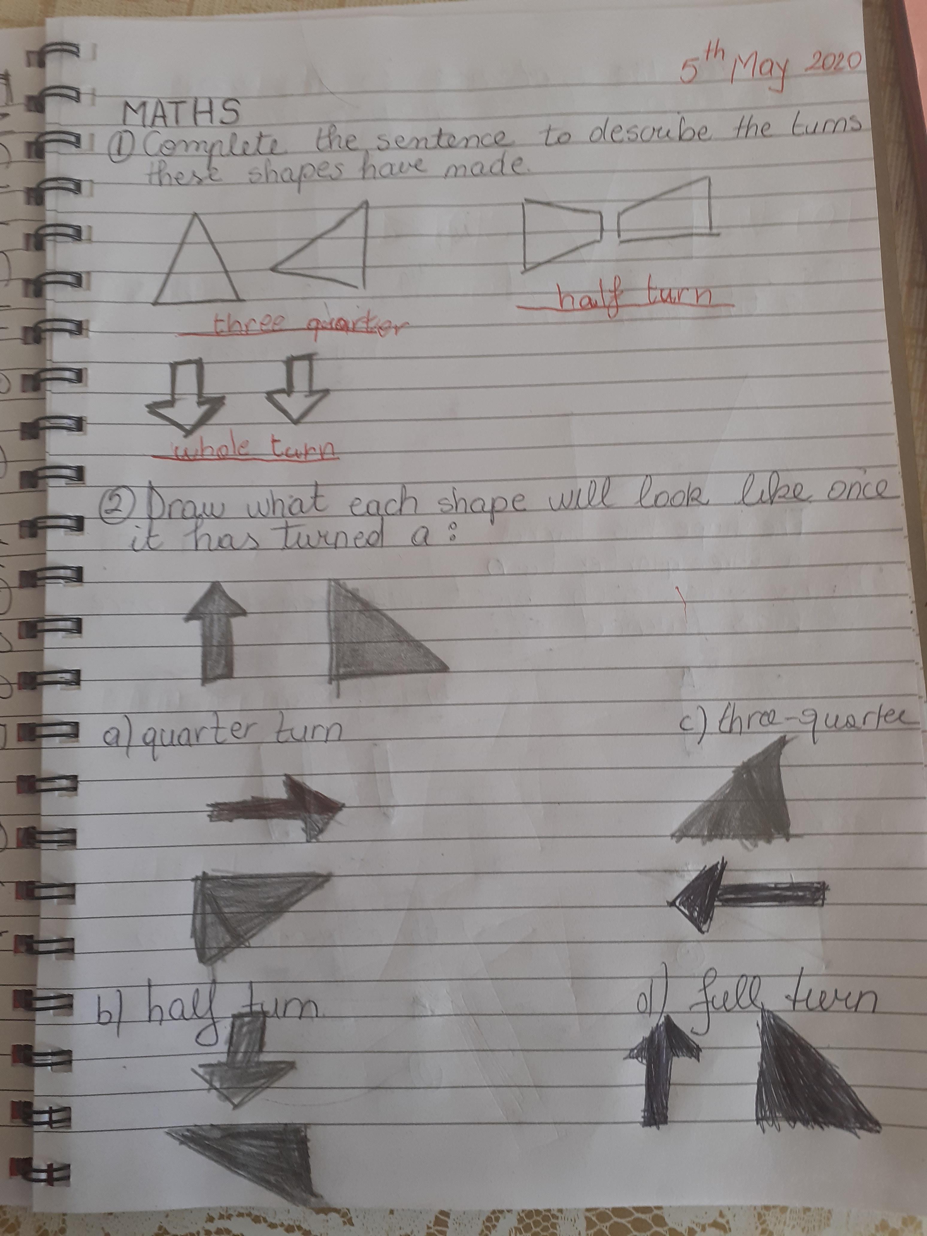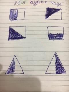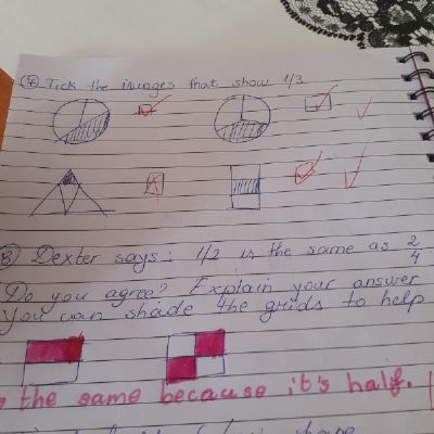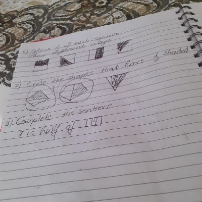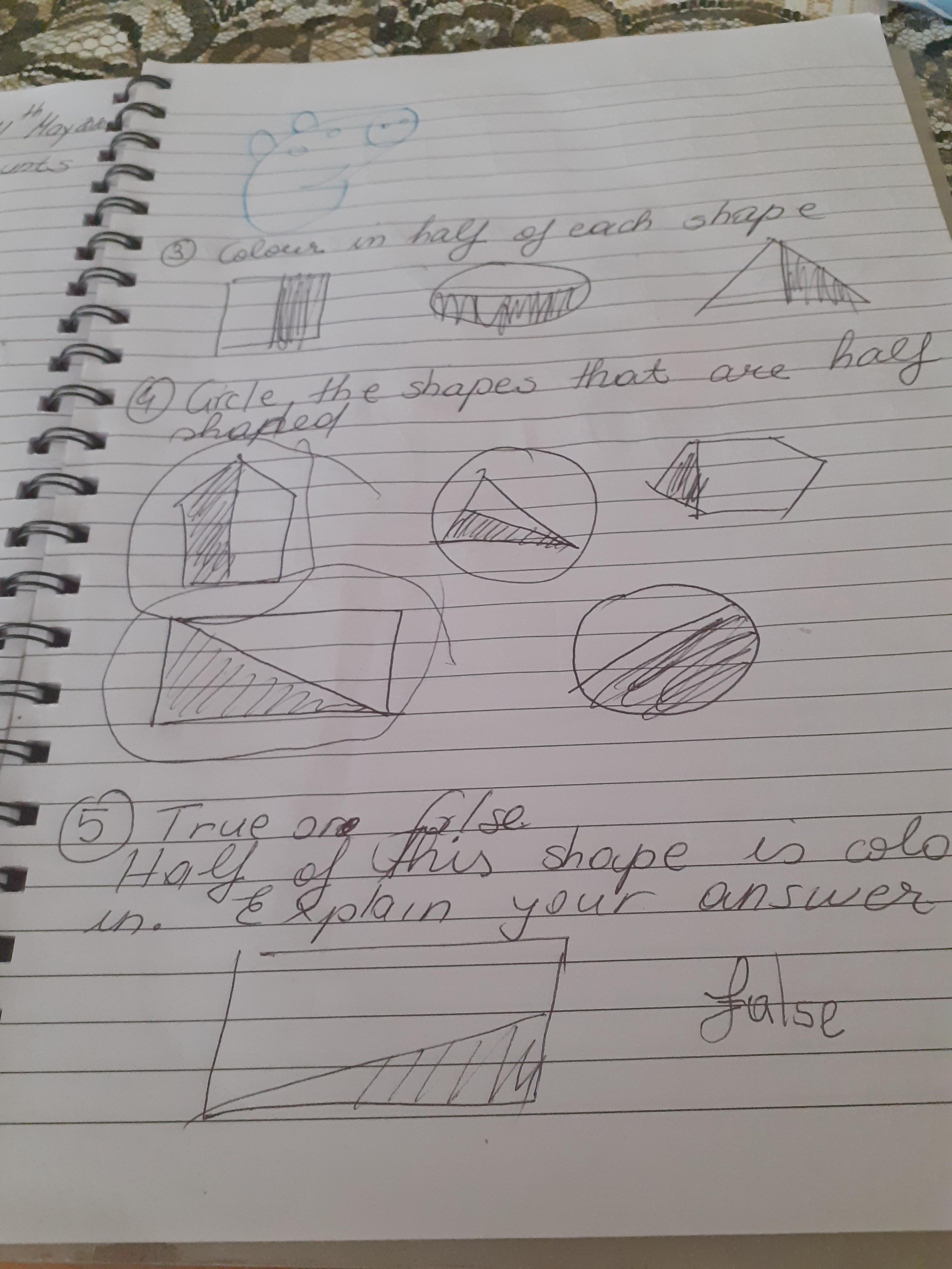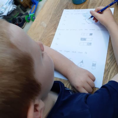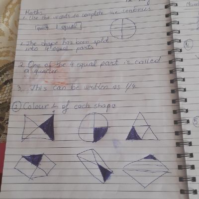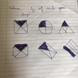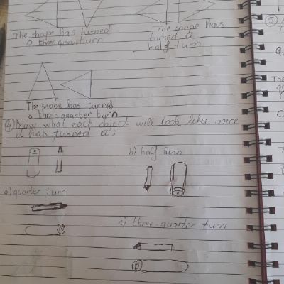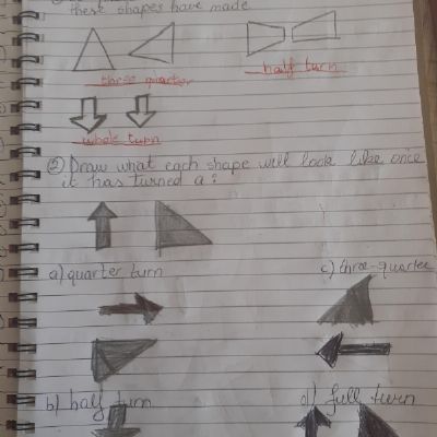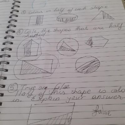 Melisa has worked hard with her maths today, moving shapes a whole, half, quarter and three quarters. She also compared an old and new toy and made some toys from paper.