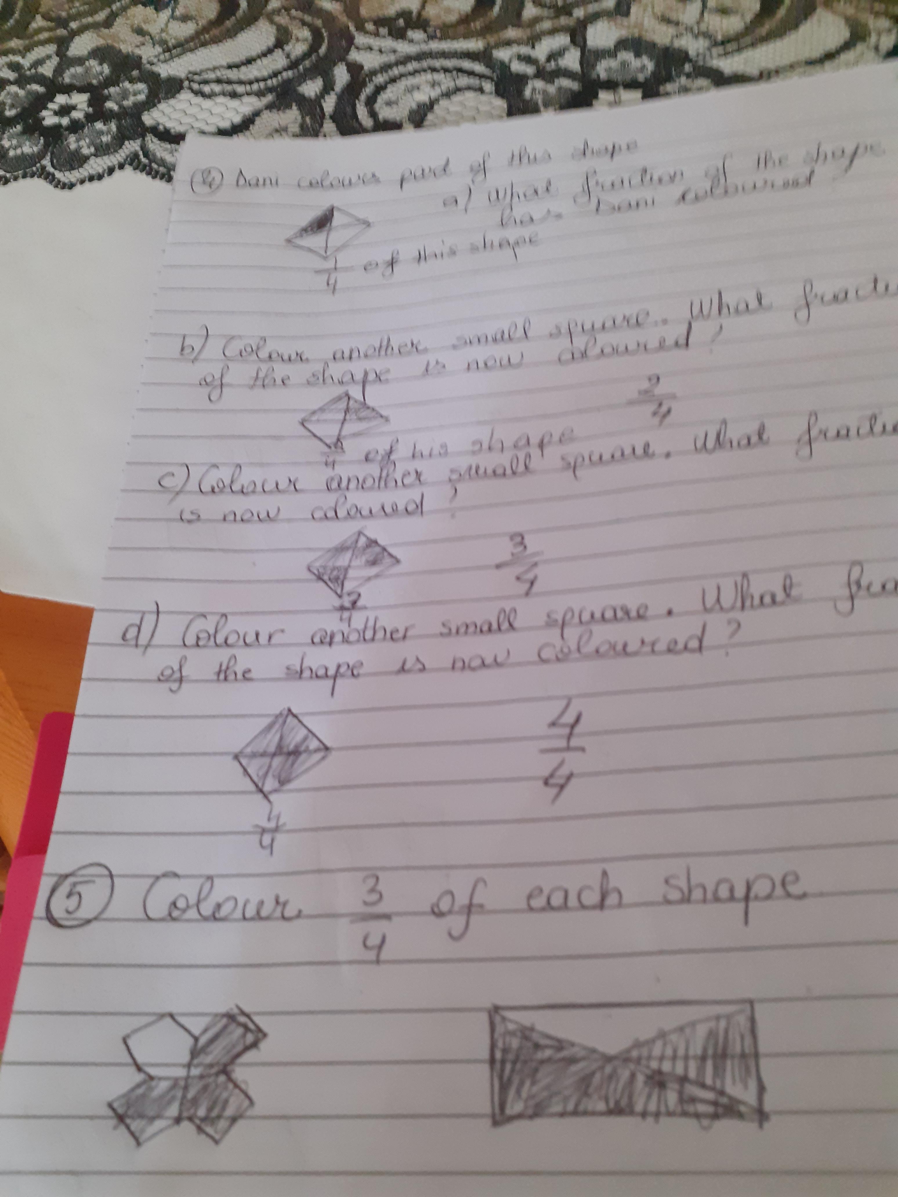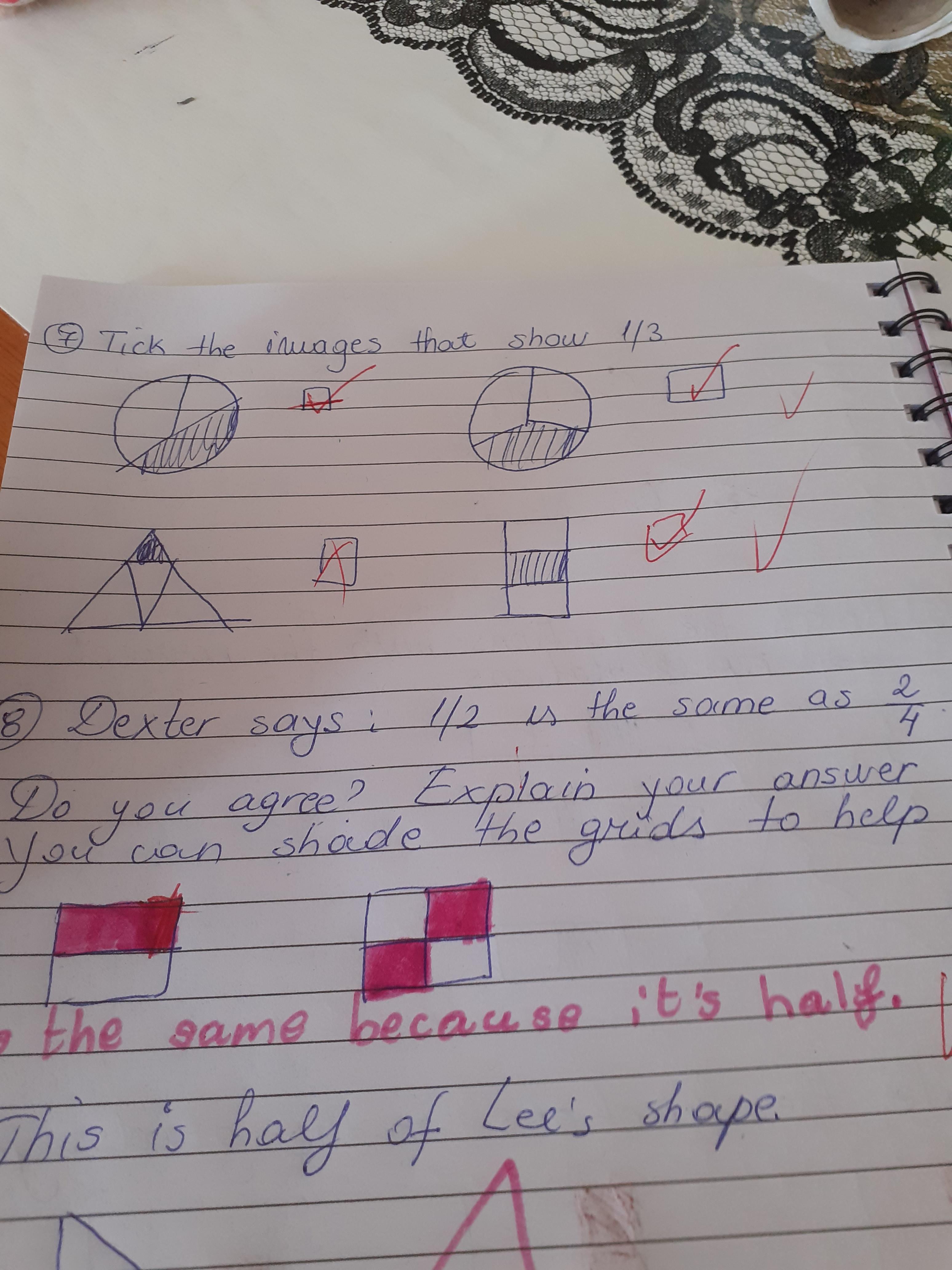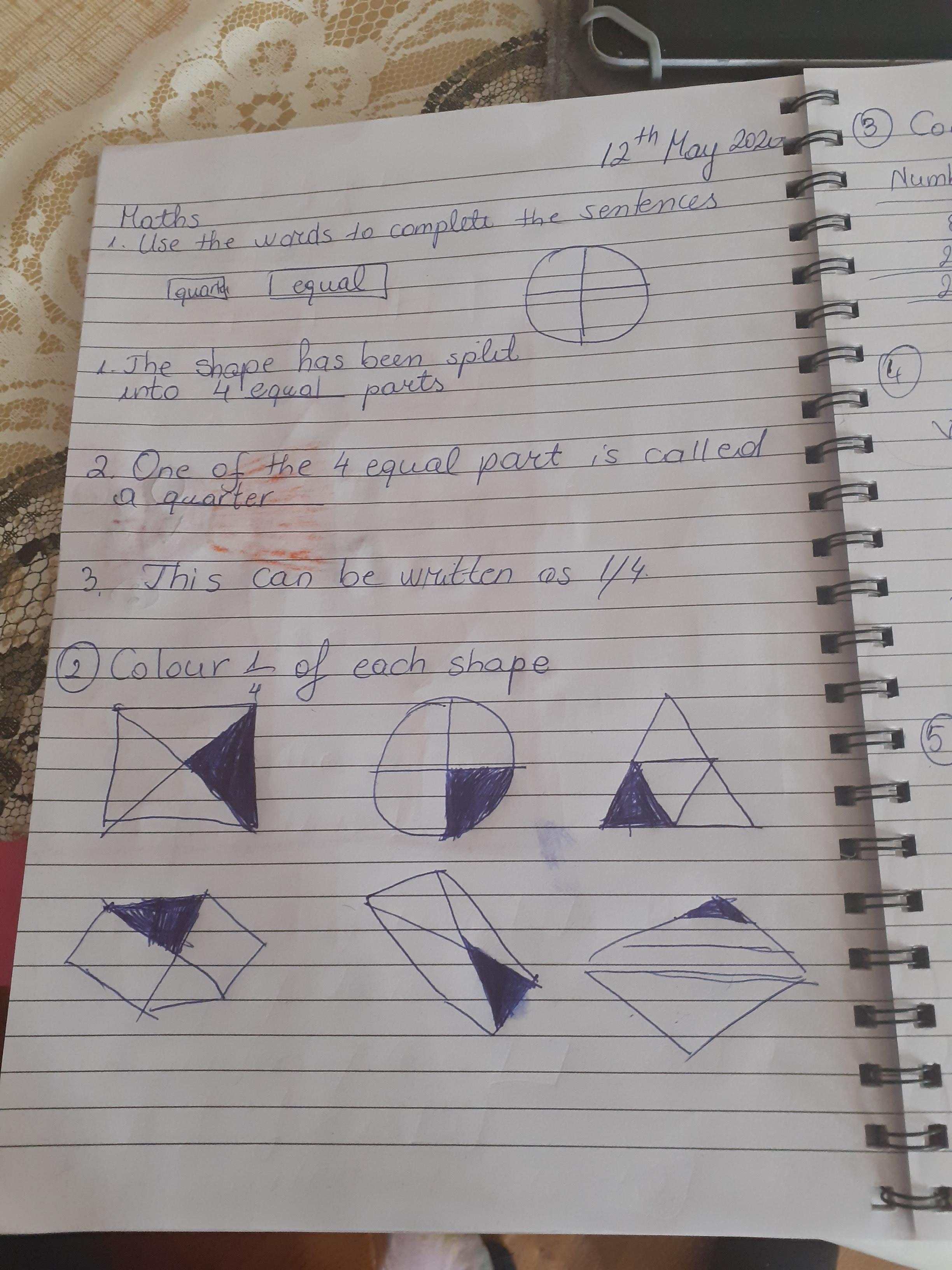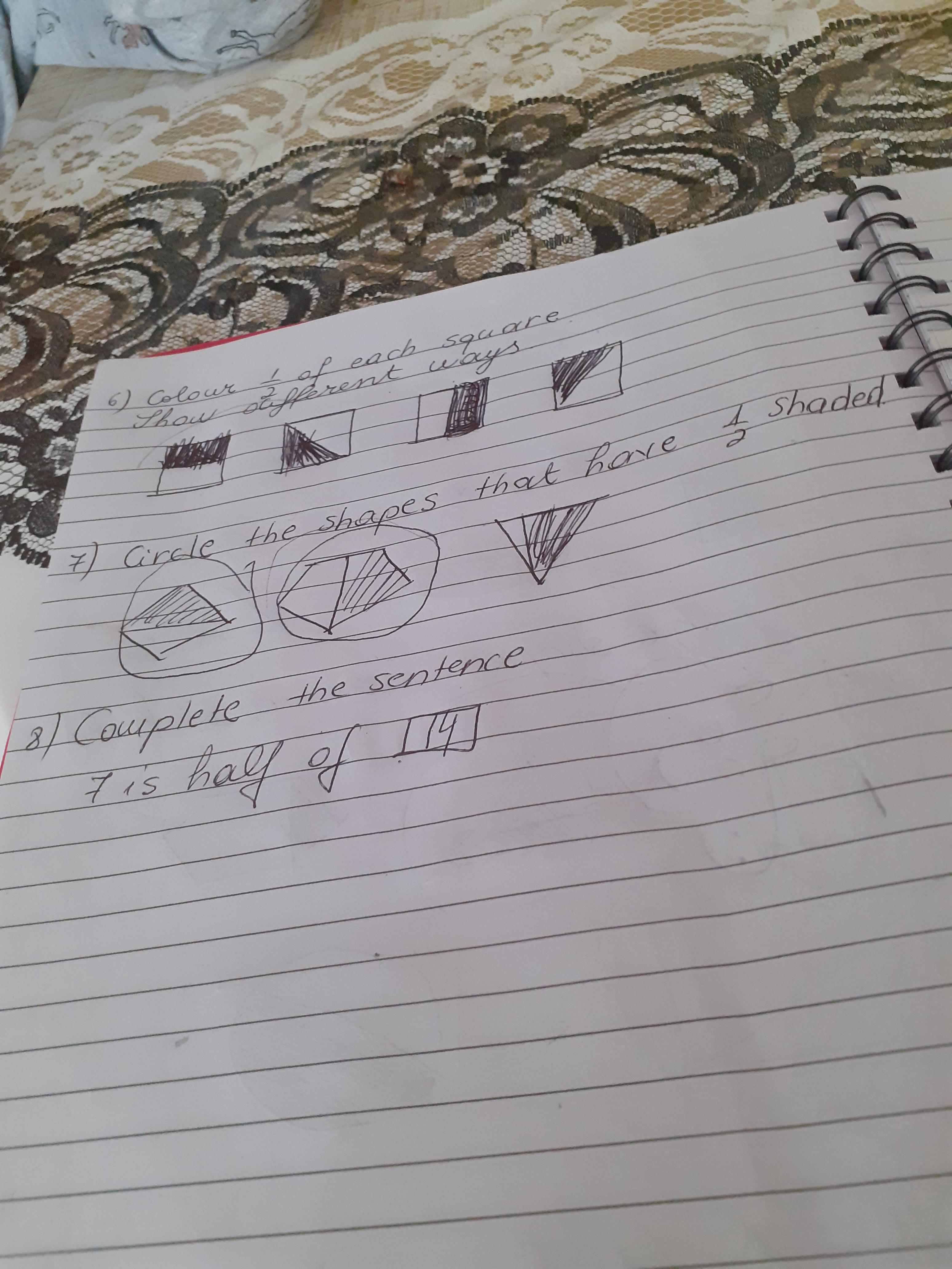 Melisa has worked hard with her maths today, moving shapes a whole, half, quarter and three quarters. She also compared an old and new toy and made some toys from paper.
