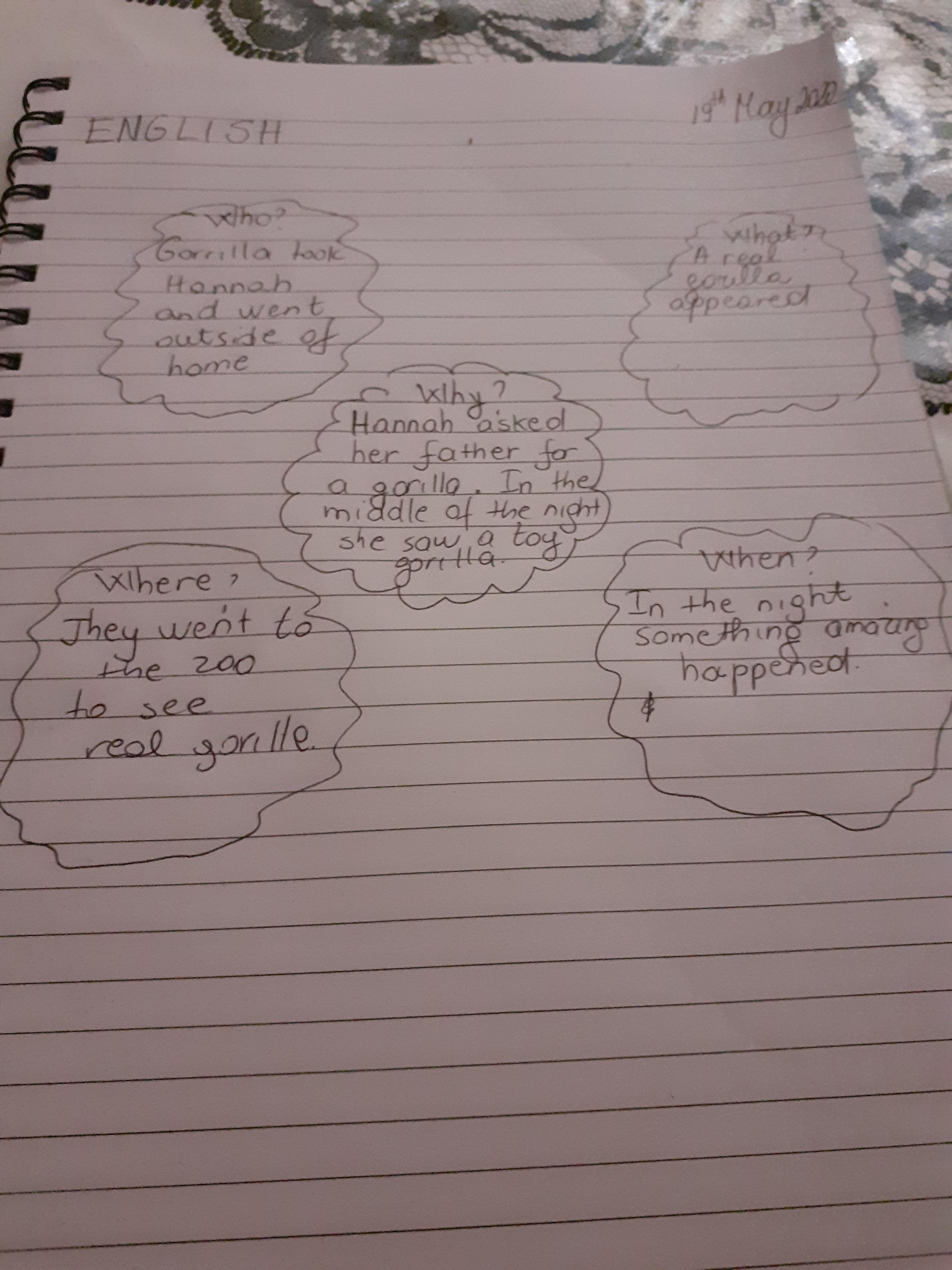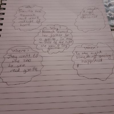 Melisa has been busy practising her time activities and wrote out a story map of Hannah's adventure with the gorilla. Well done Melisa - keep up the hard work!