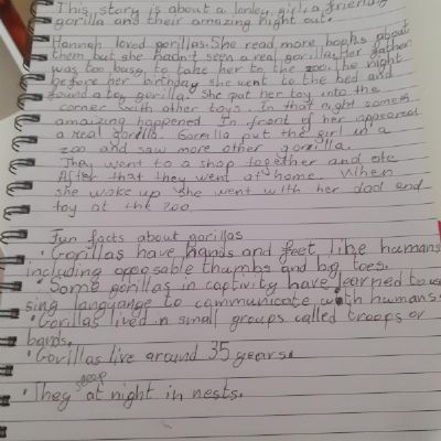 Scarlett and Melisa have been busy doing their maths halving today. Then Melisa wrote about what she thought the story Gorilla was going to be about and some facts about gorillas.