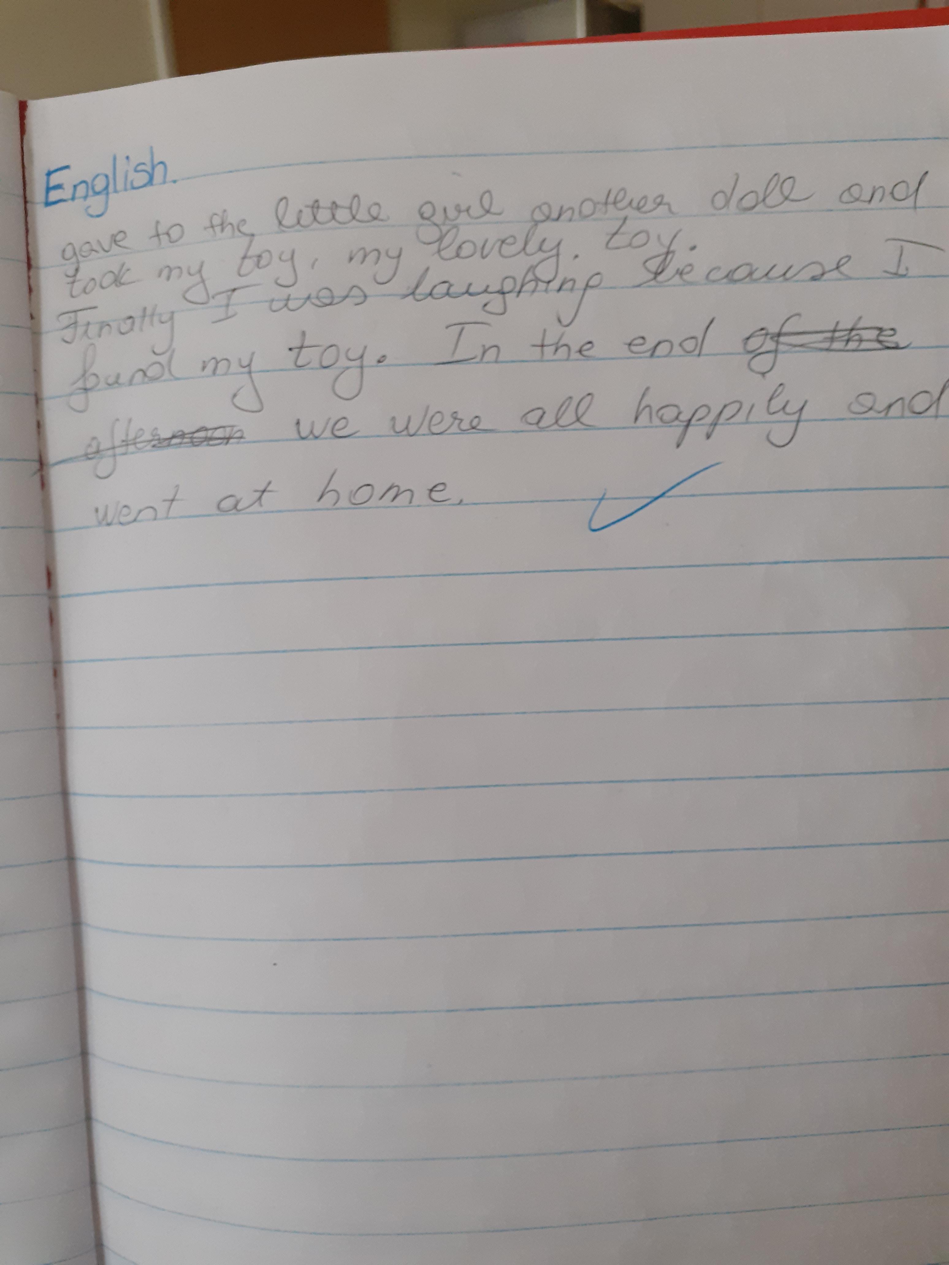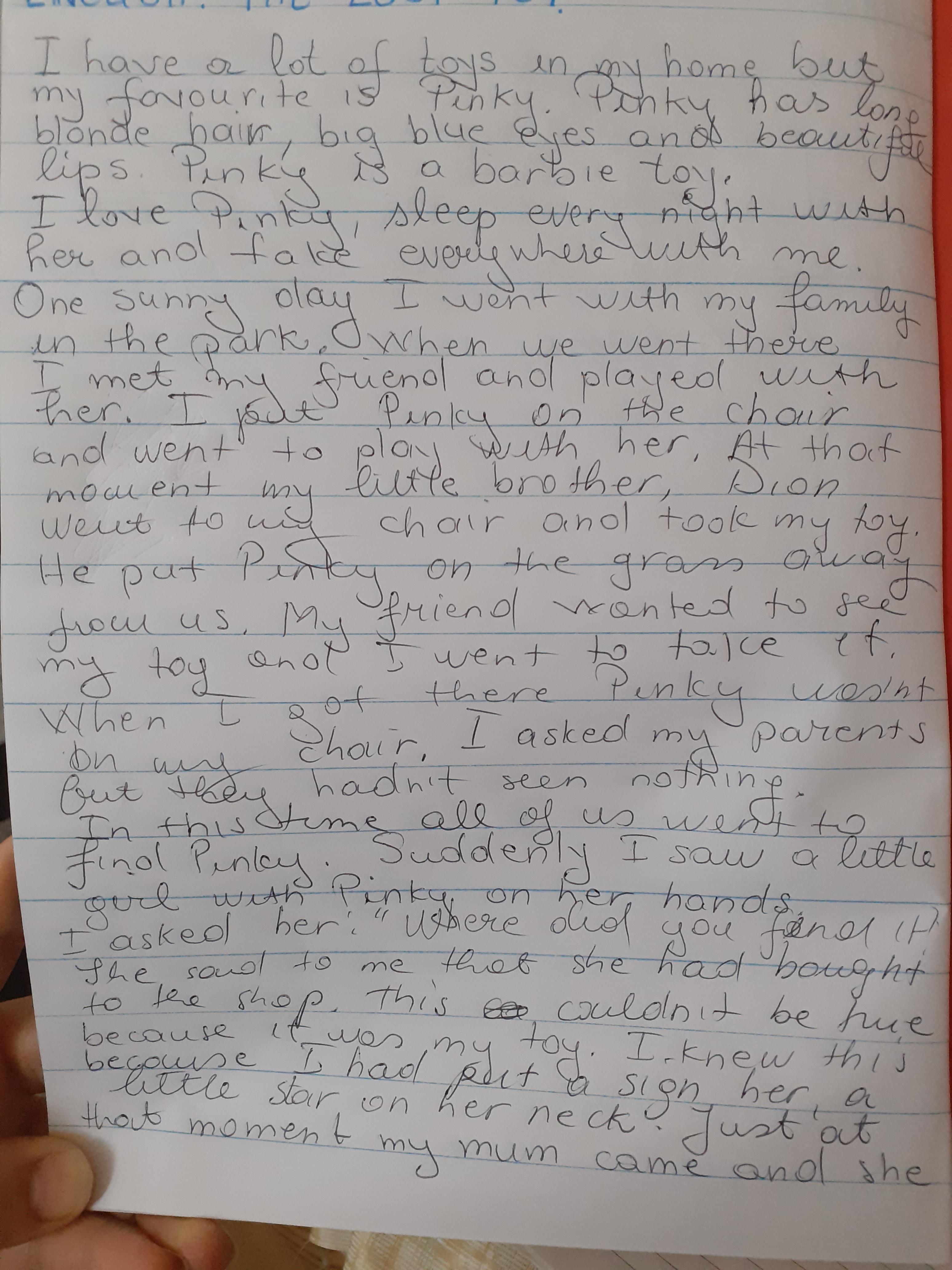 Melisa is working hard every day on the activities set and yesterday she wrote a good story about how her favourite toy got lost. Can you read the story and tell who took her toy?