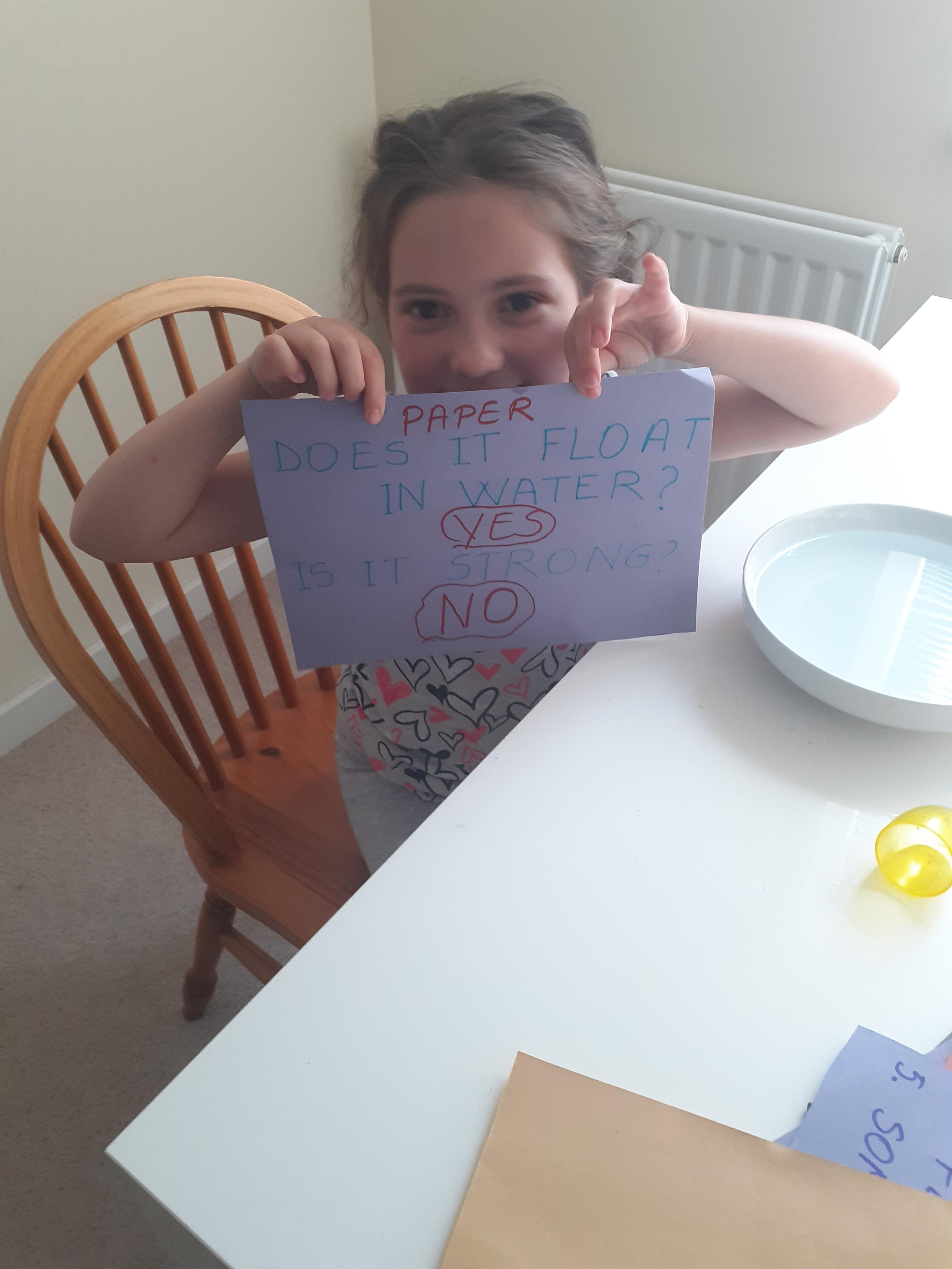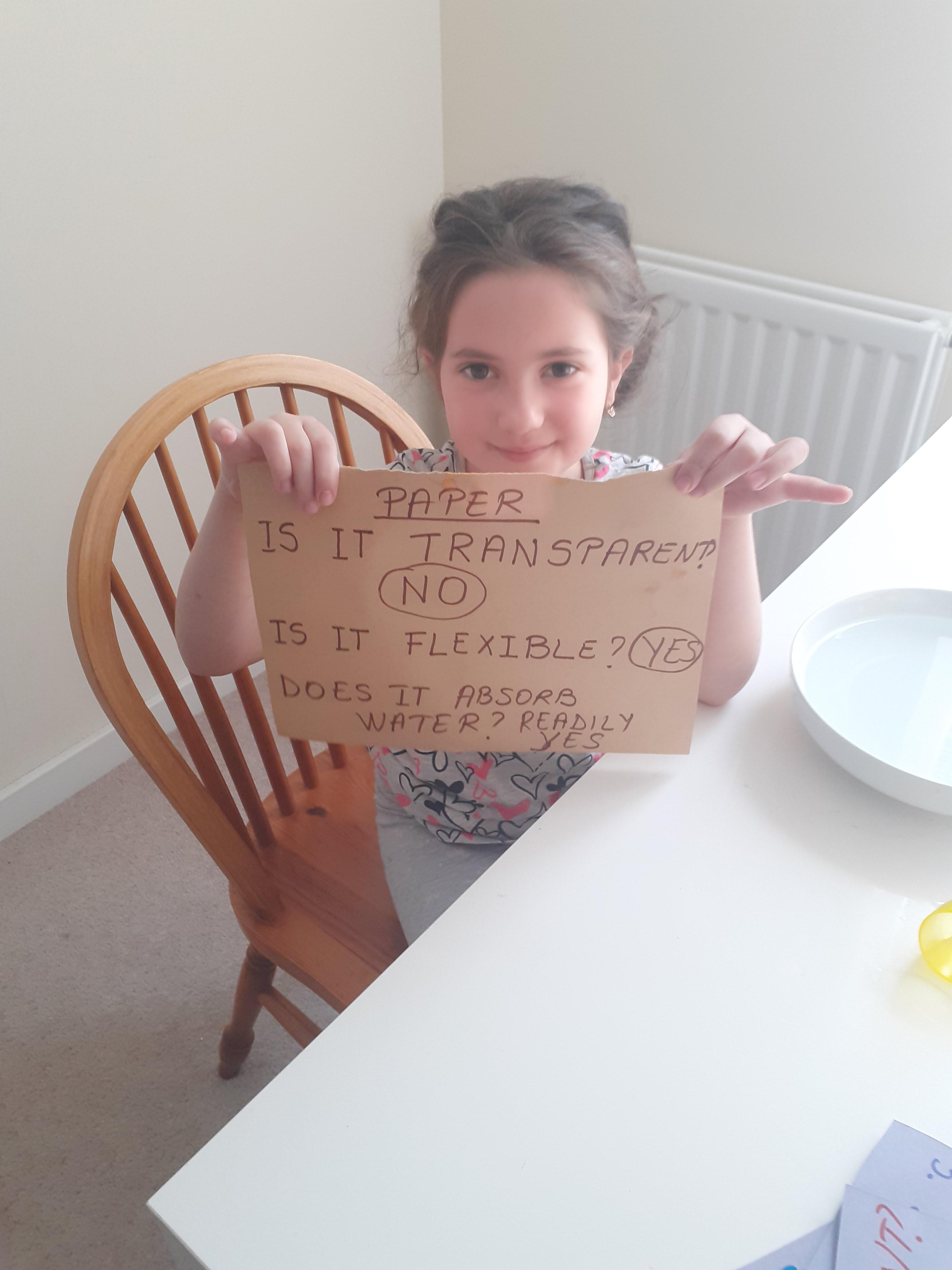 Well done Melisa! She has been working hard on counting in 3's, doing her 3 times table and testing paper for her Science task. Can you name some properties of paper from her photos?