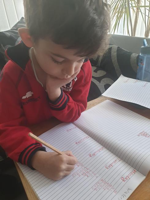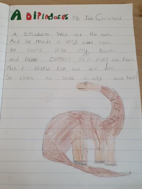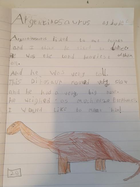 Jude has written a brilliant fact poem about an Artgentinosaurus and Bobby has been practicing using and applying his phonics when spelling words.