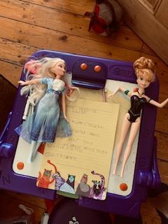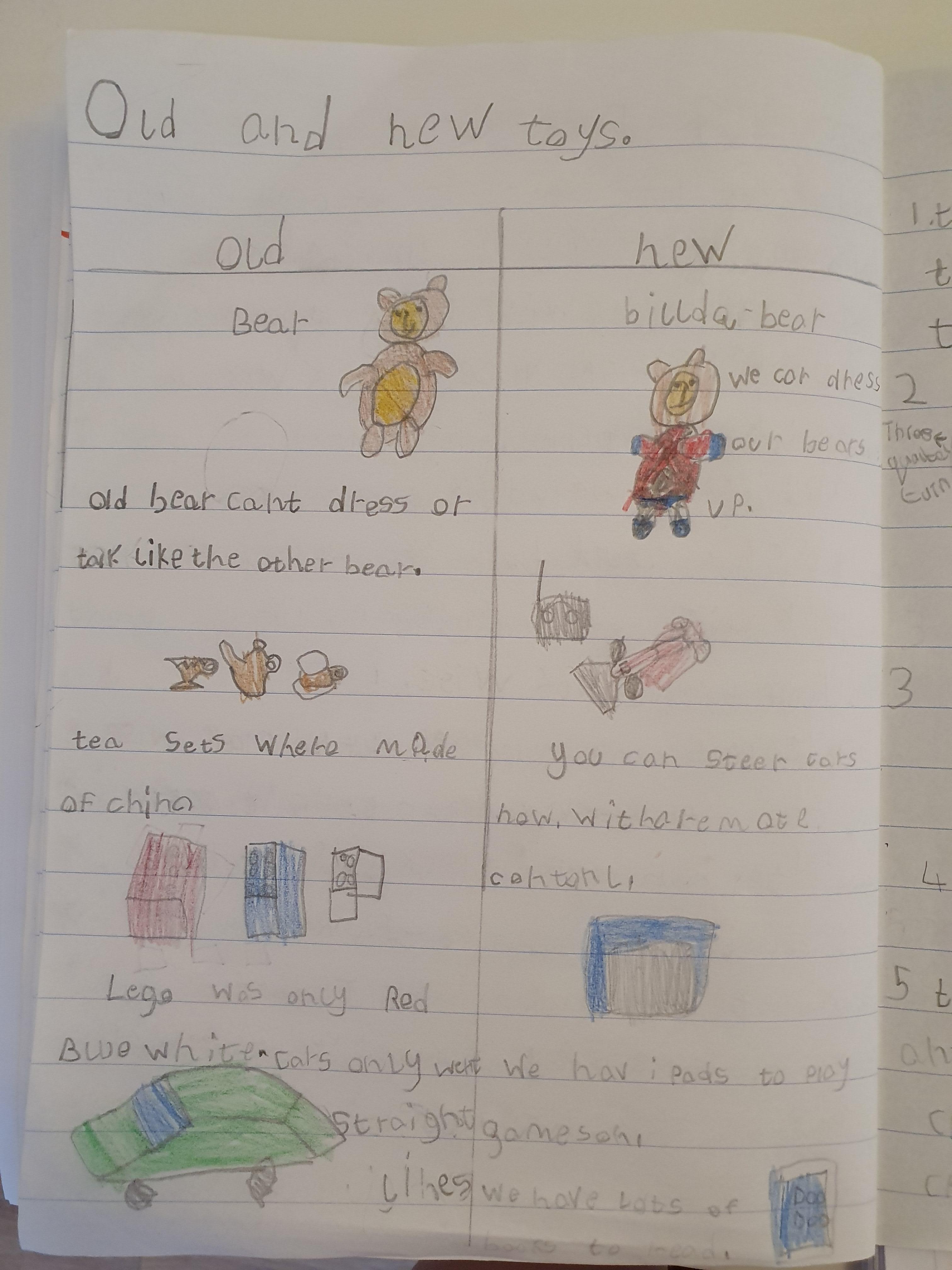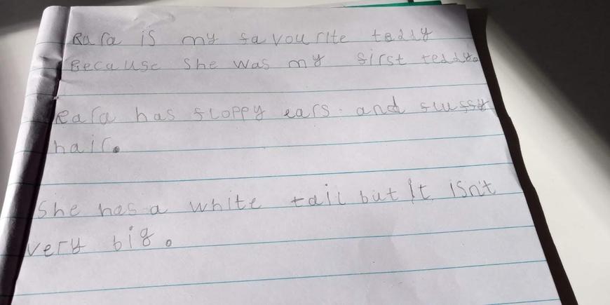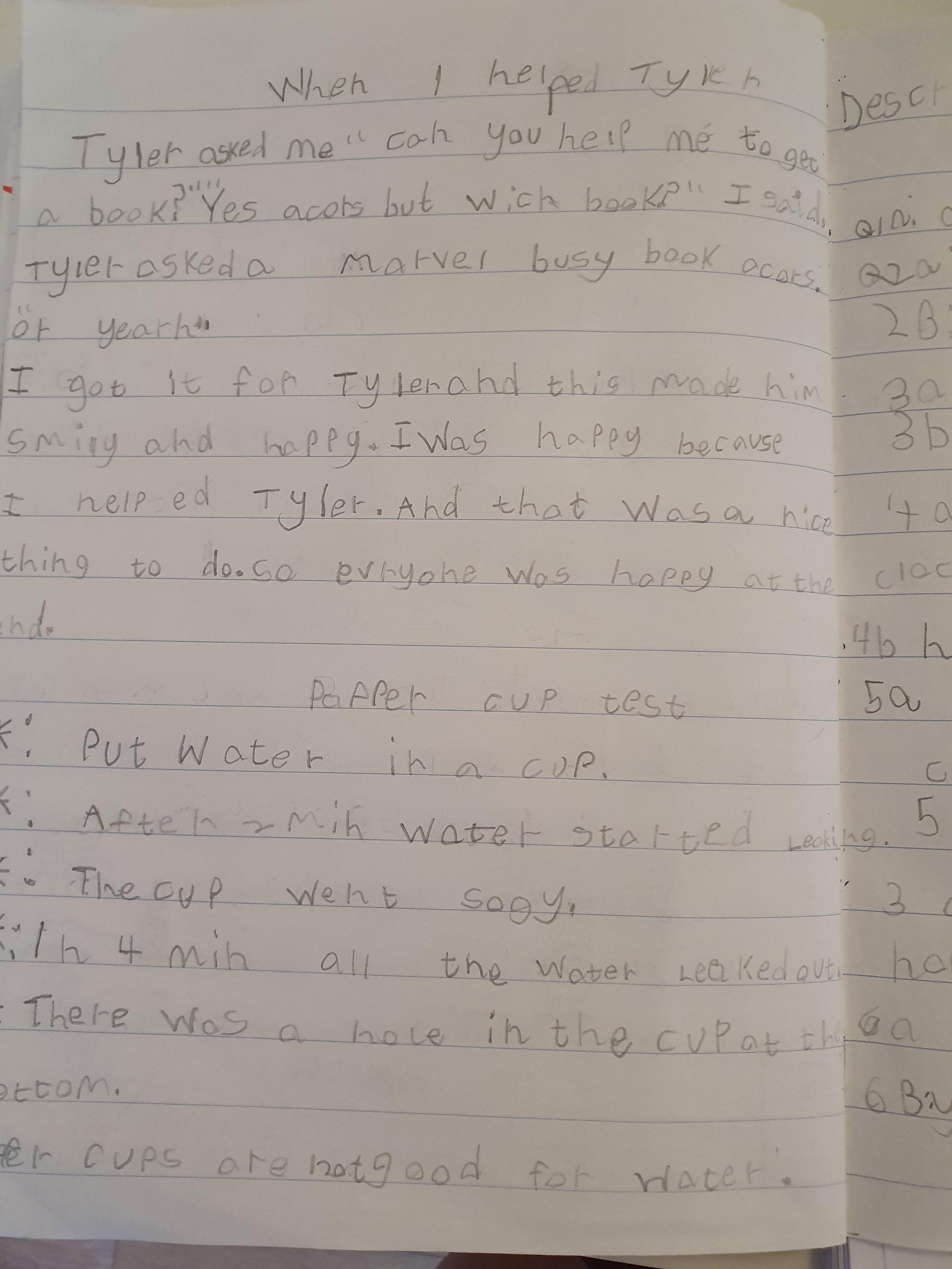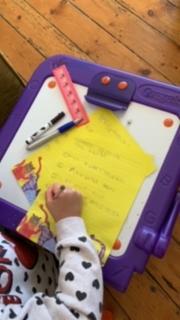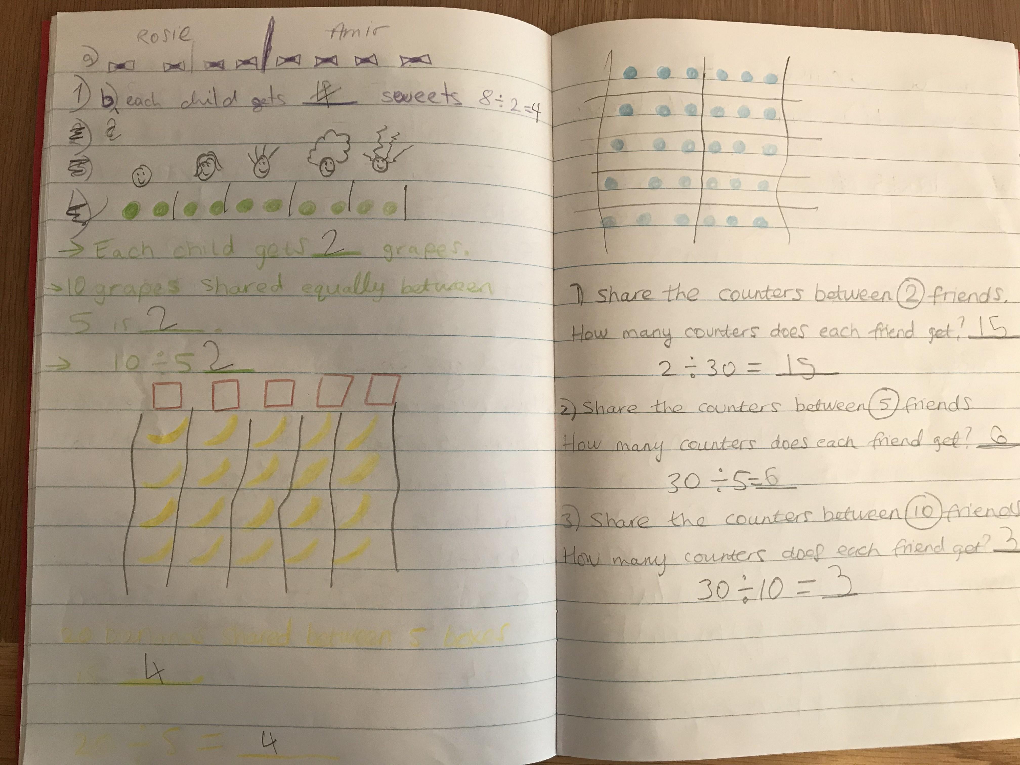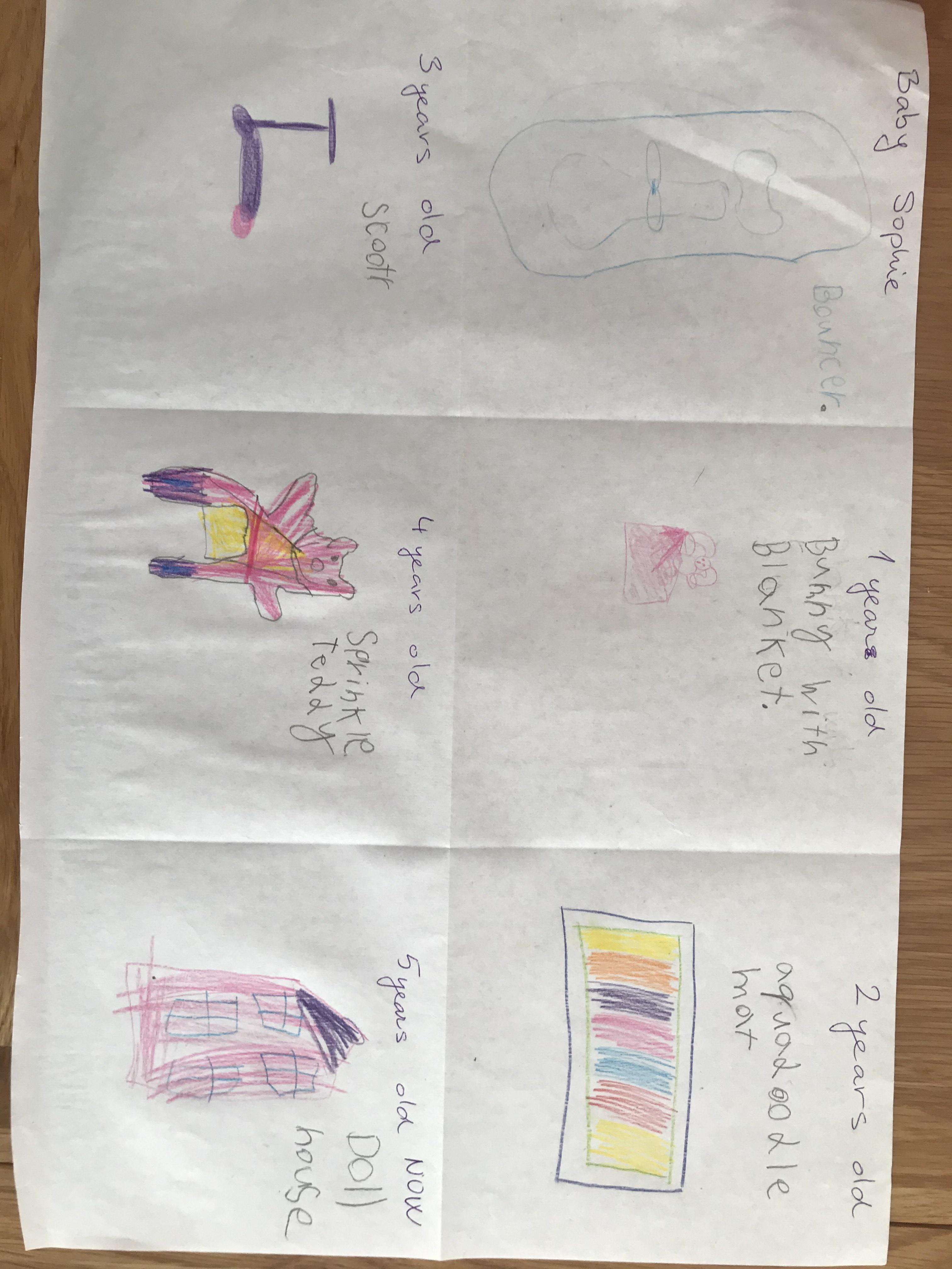 "Darcy really enjoyed her live phonics on youtube...she has been practising her writing a lot and making sure the tails are below ... Darcy wrote a description of Bella ... added to the diary of her day ... did a timeline of her life with major points and favourite toys and practised  division using pasta and circles"