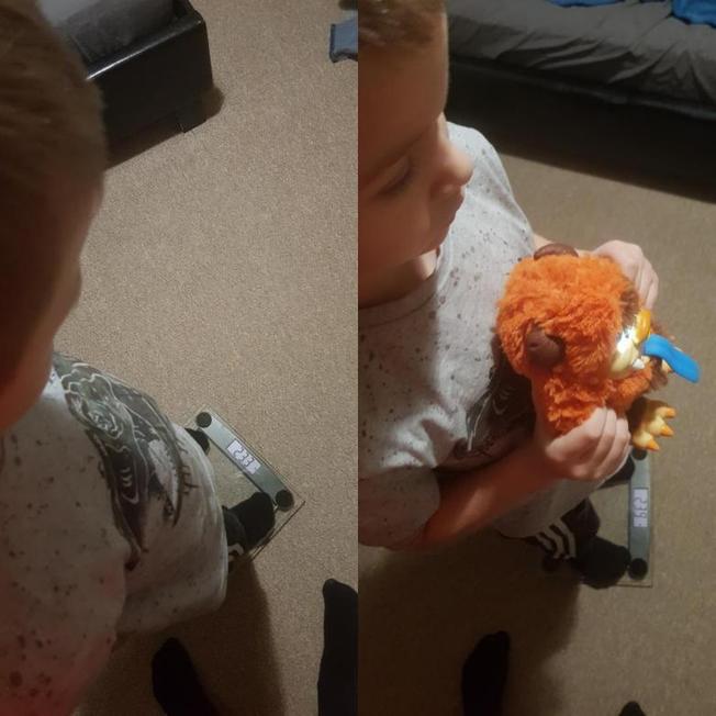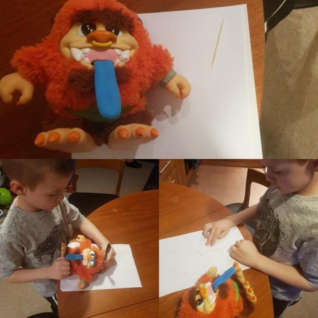 Viktor decided to measure the height and weight of his favourite toy. Viktor used toothpicks to measure the height of his toy. First, Viktor marked a line with his pen on a blank piece of paper, to ensure his measurement was precise. Second, after he placed the toothpicks on the paper, he saw that his toy was two and a half toothpicks long. To find out the weight of his toy, Viktor used our home scale. First, he measured his own weight, which is 23kg and 300g. After that he took his toy and measured his weight again. This time the scale showed 23kg and 900g. With the help of his mum, Viktor found the difference between the two numbers, and worked out the toy to be weighing 600g.