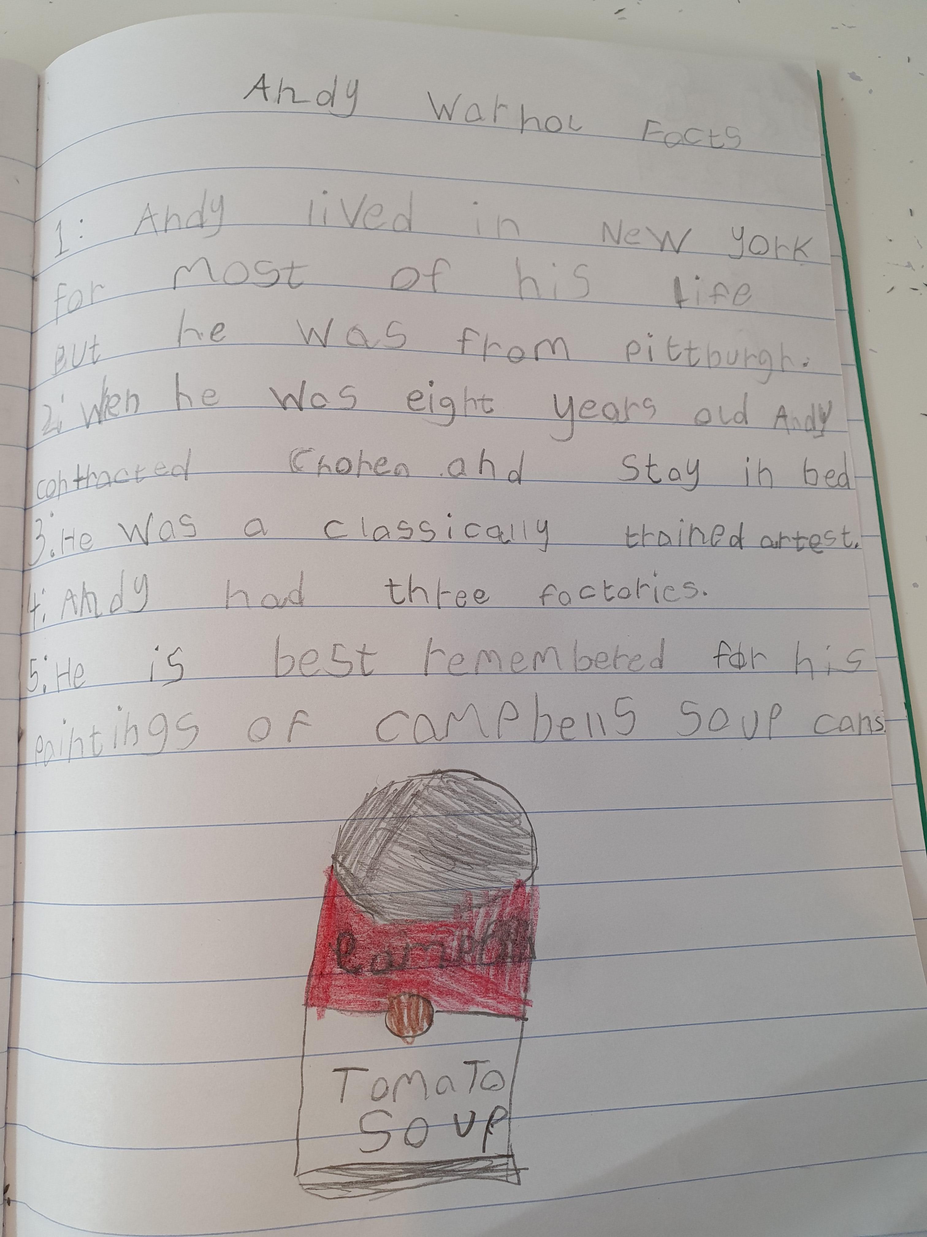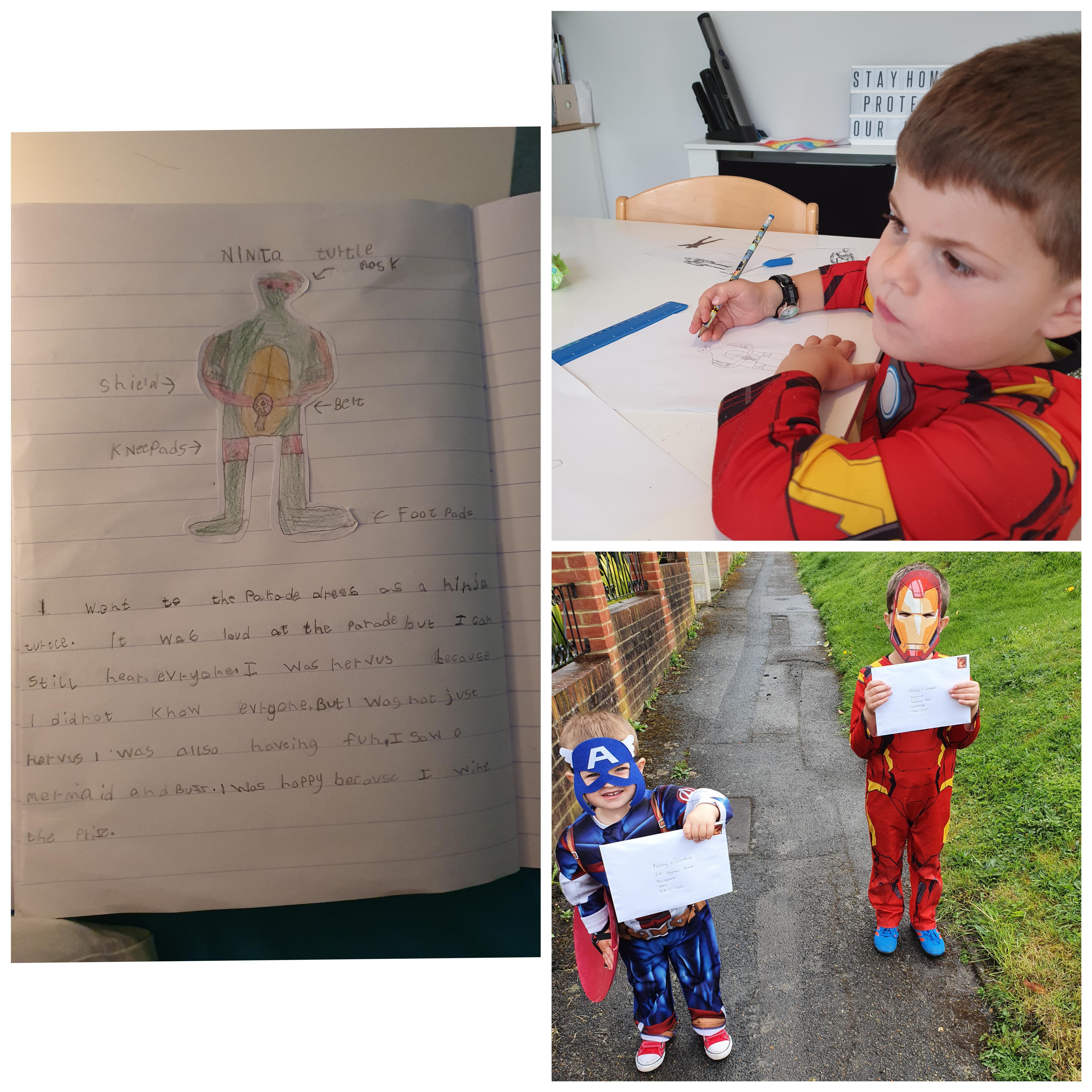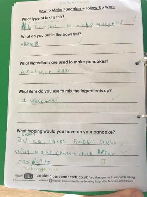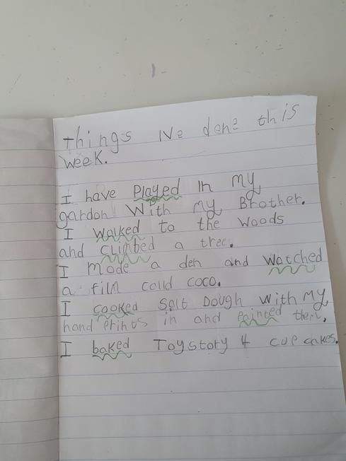 Henry worked hard on his English workbook at home in the last two weeks of Term 4.  He also made some fabulous pancakes using his weighing and measuring maths skills. I hope you will show us how to make those pancakes Henry - they look delicious! He has enjoyed crafting and going on walks and bike rides. Henry has been  reading with his family and started reading a Diary of a Wimpy Kid book on his own.