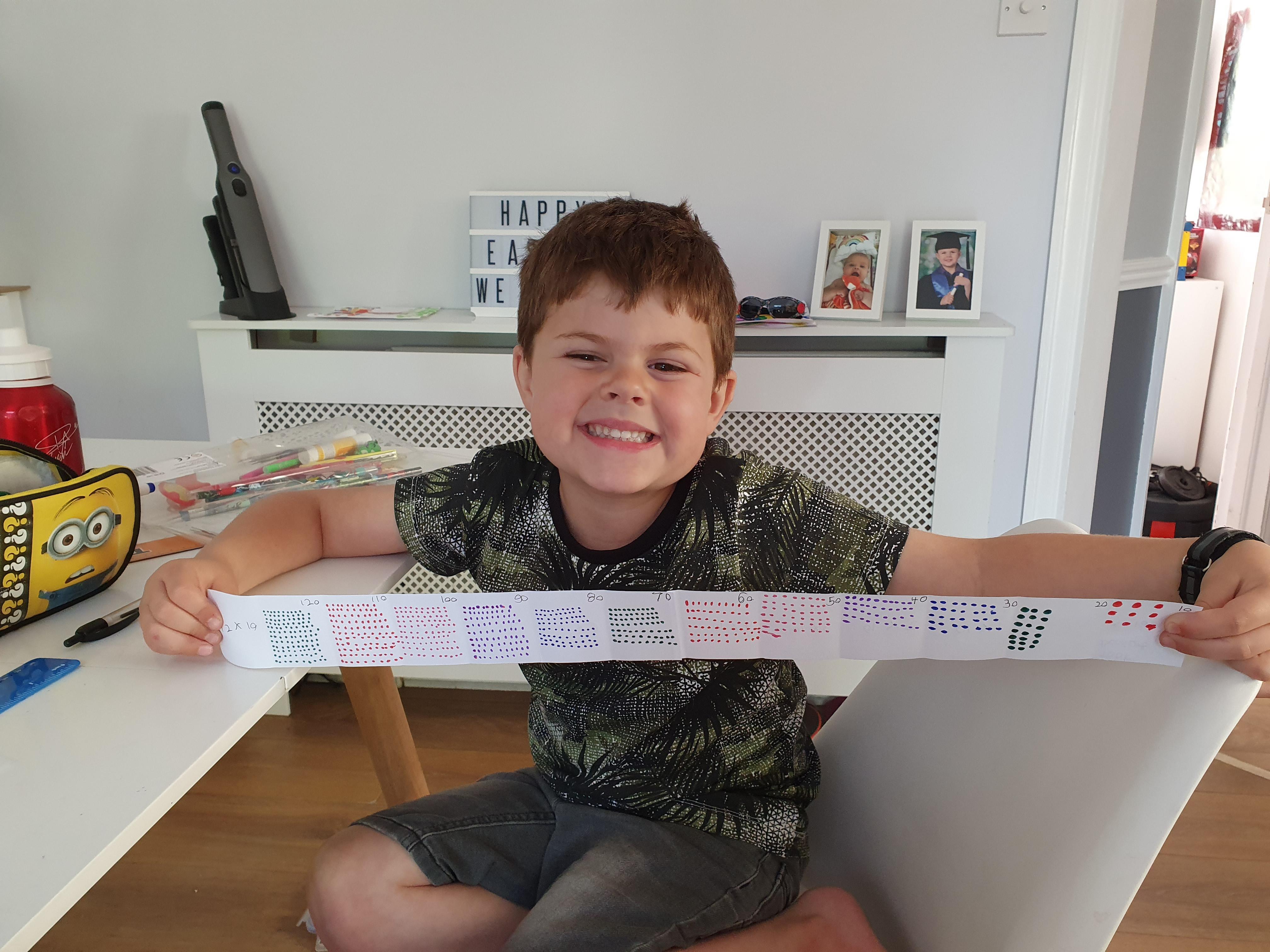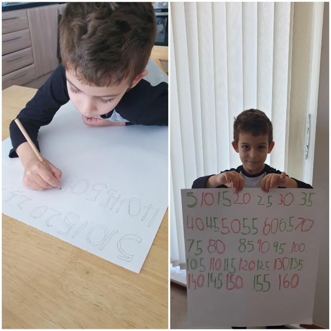 Jude enlisted the help of his little brother to create posters  to show counting to 100 in fives.  WOW boys you are a great example of how to make Maths fun!