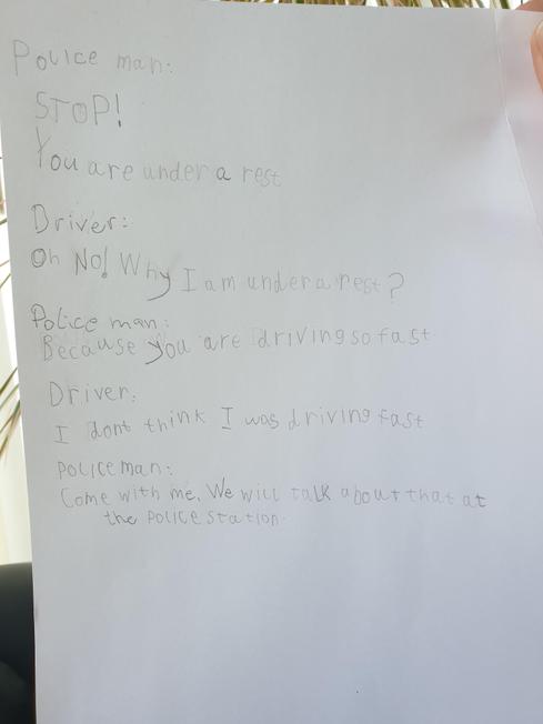 Another super example of how to set out a conversation in our writing.  Bobby has written it like a play script.  Great use of question marks and explanation marks too Bobby. And what fabulous bubble writing on your 5x tables poster! yes