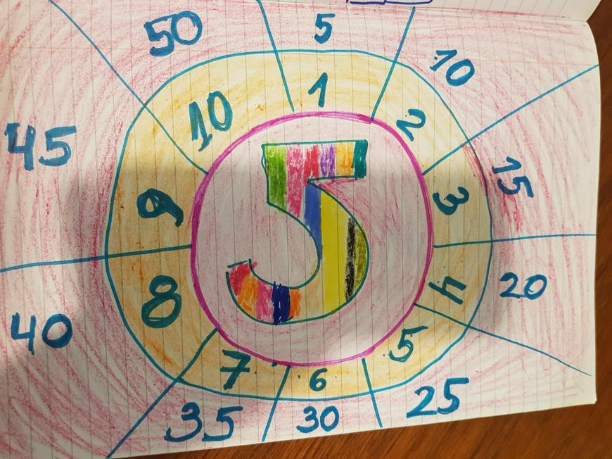 Viktor has created this colourful spiral poster to help him visualise and remember his 5 times table.  Perhaps you would like to make one too?enlightened