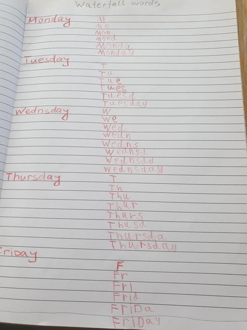 parts of a plant task and Bobby has been doing waterfall words to practice his spellings this week.