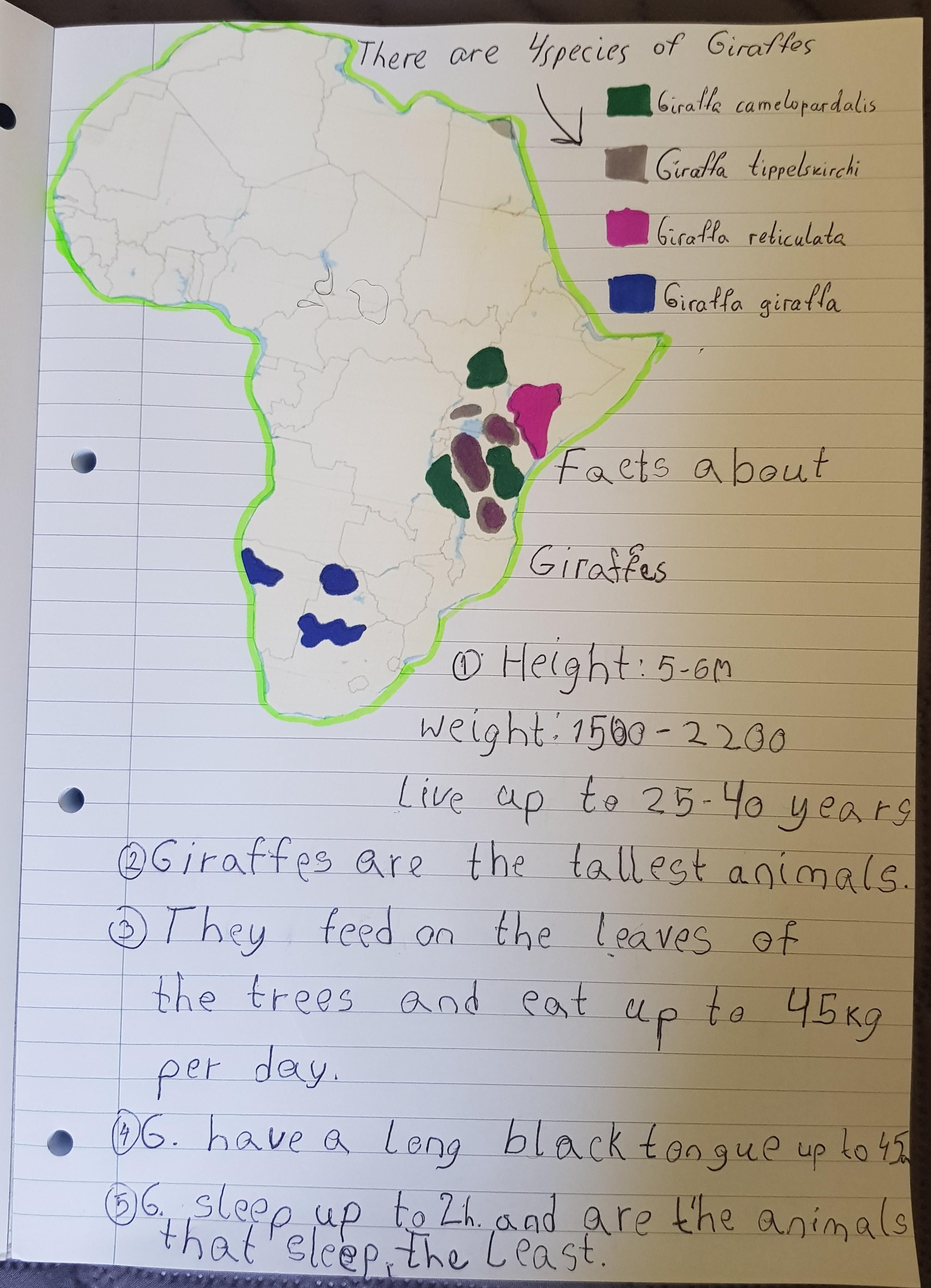 Viktor has continued well with his home learning, We are particularly impressed with your giraffe fact sheet. Well done Viktor ! Keep up the good work.