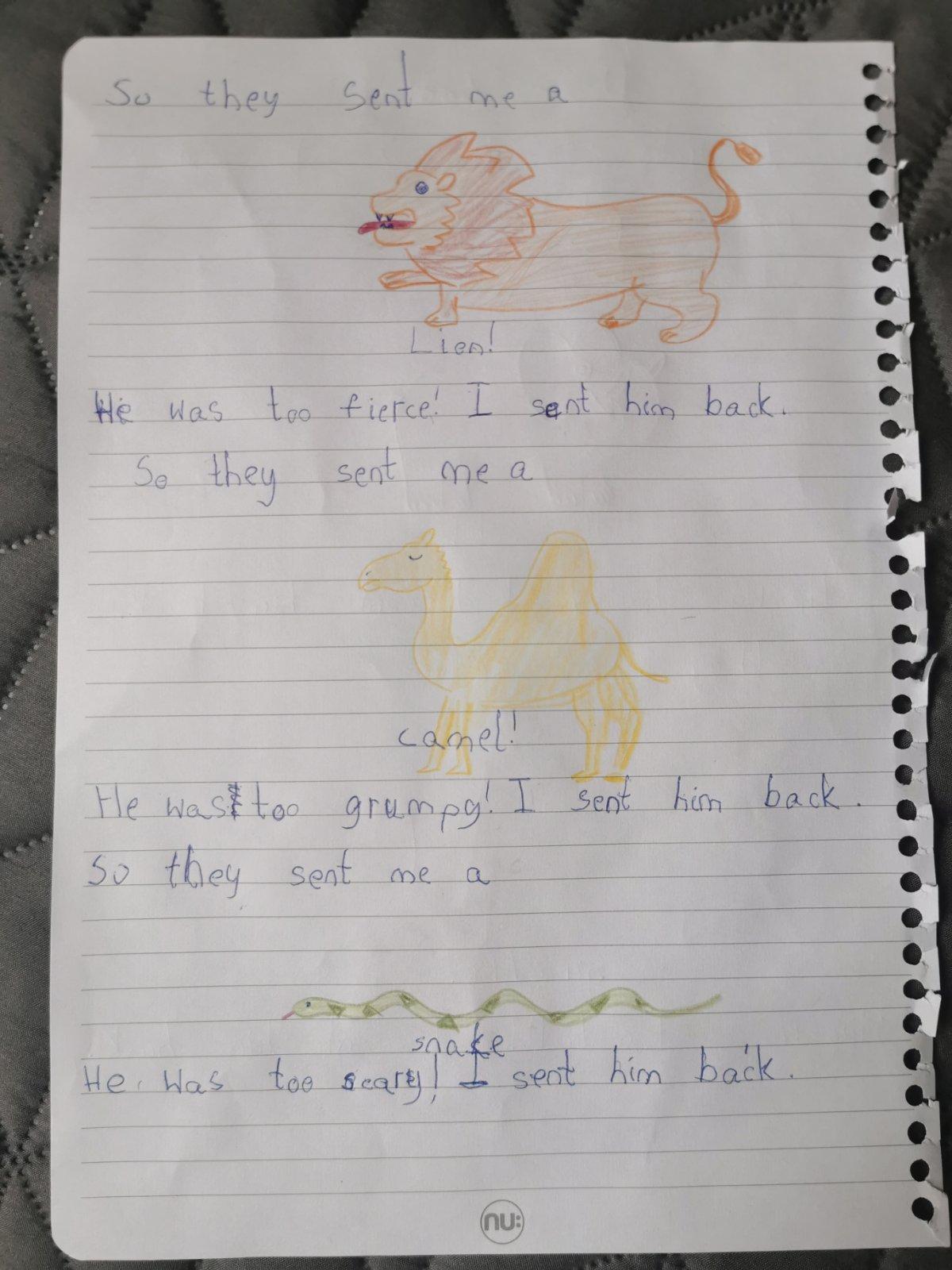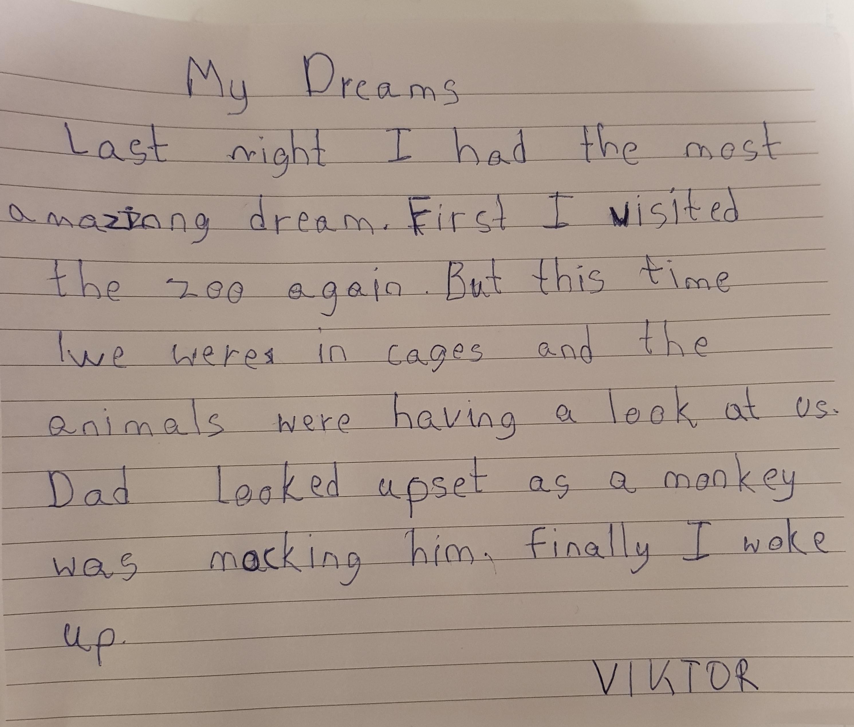 Sophie has done some amazing work this week. Including great spelling learning as well as an amazing dream. We love your front cover of our new book Sophie, Well Done!