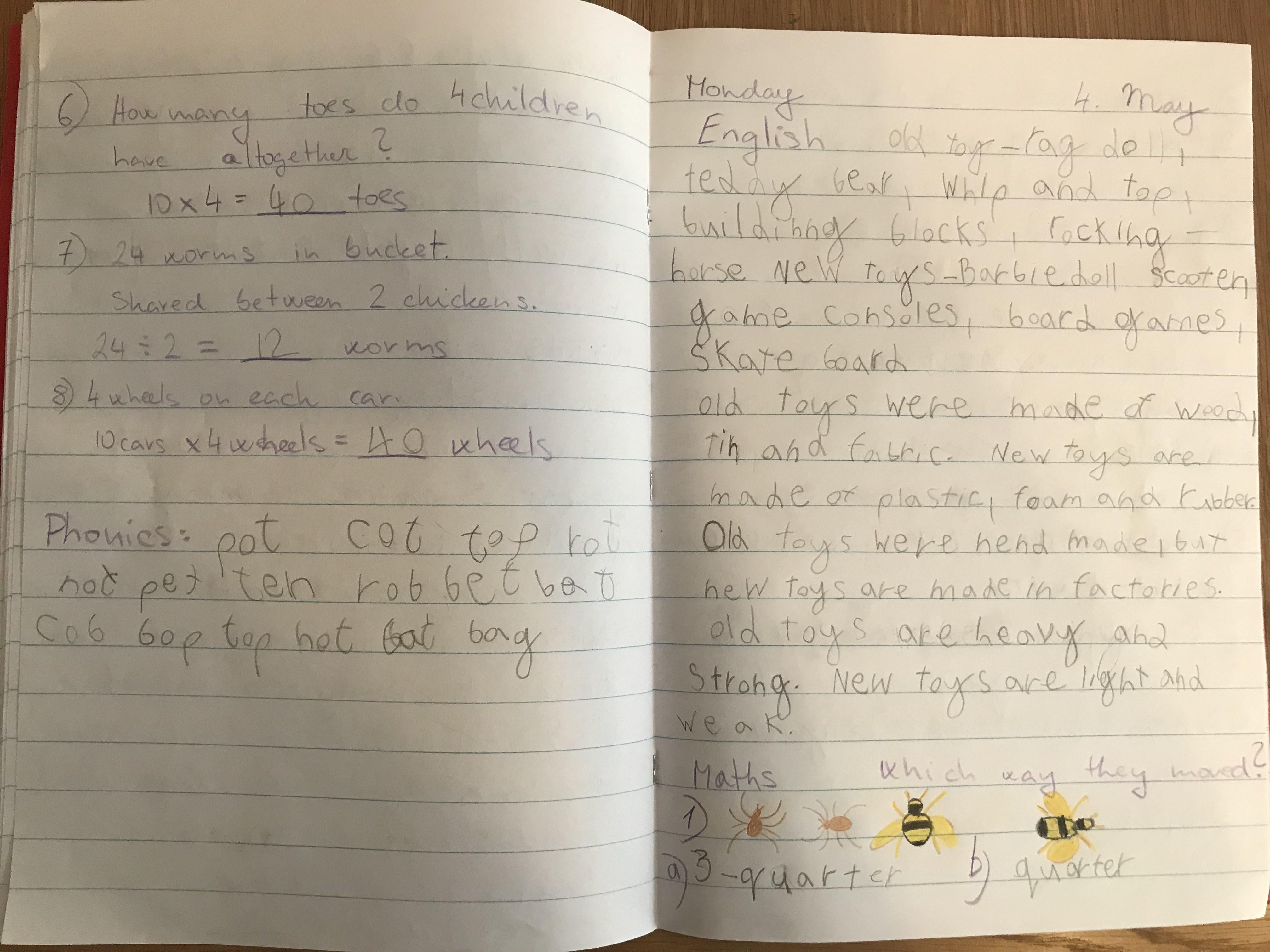 "Such a lovely task we had to do today in Maths, English and History. Phonics class video was excellent, Eddy really enjoy it!"