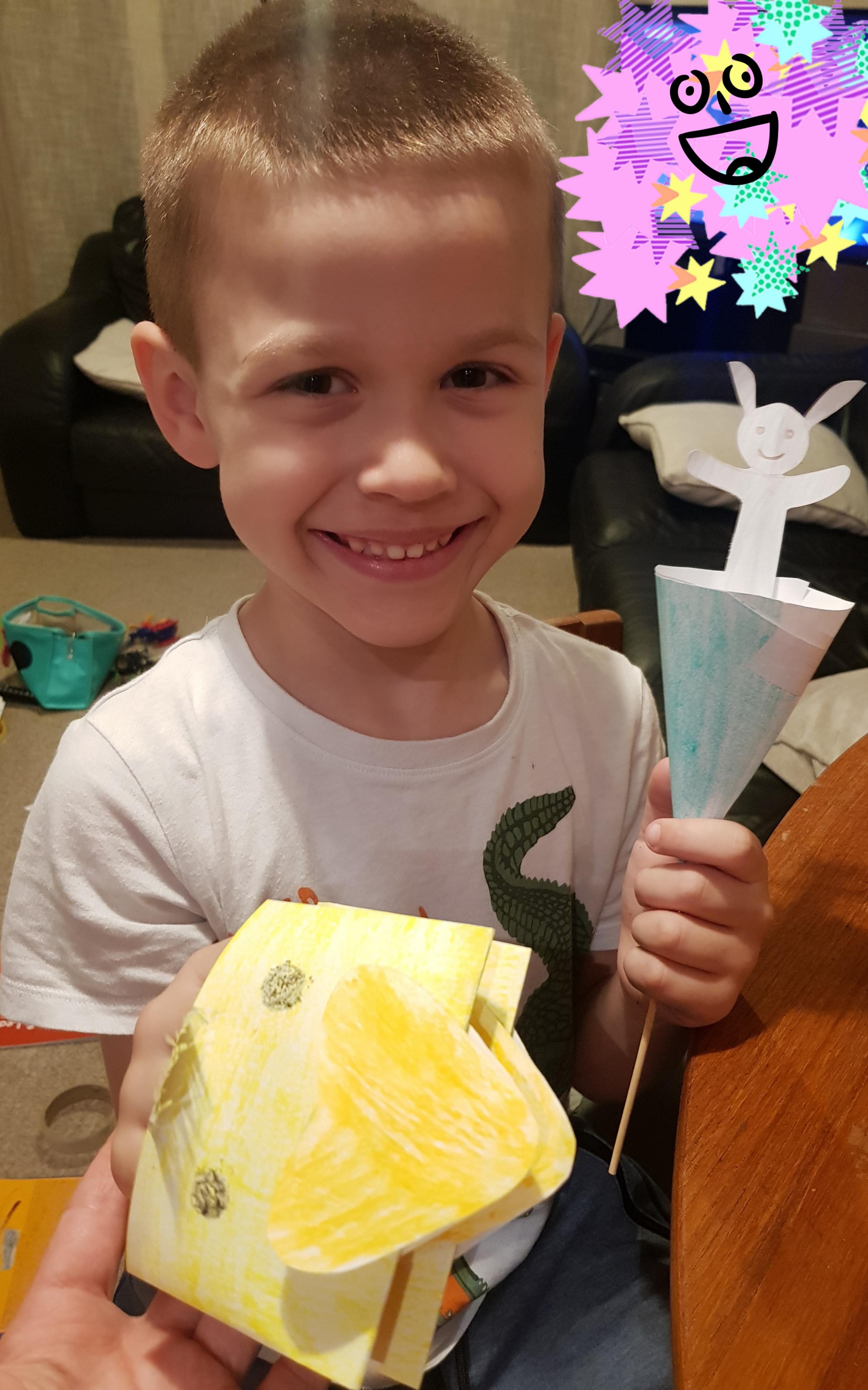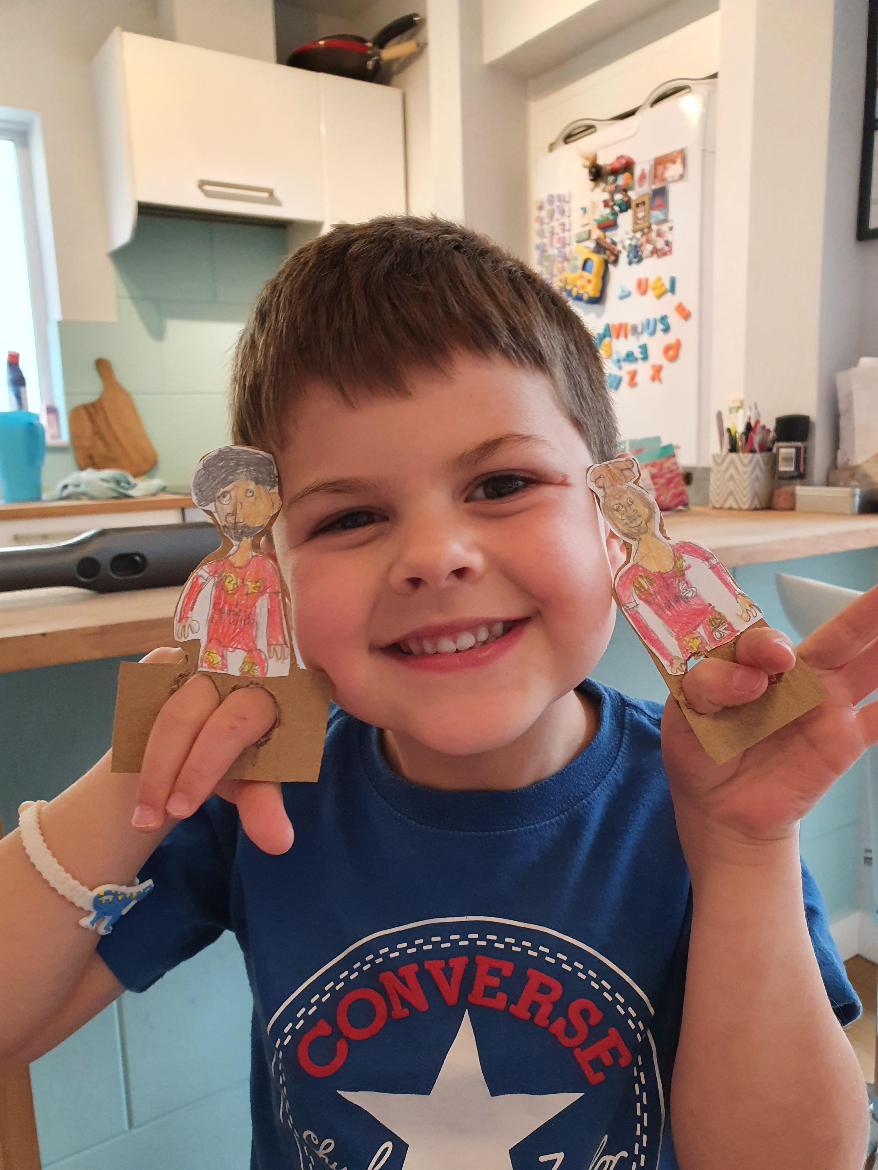 Viktor, Jude and Edward have sent in some super home learning to share with the rest of the class. I can see how hard they have been working on their Maths and English learning, and I am loving the puppets.  Super Liverpool finger puppets Jude and WOW those pop-up puppets are fantastic Viktor.  Eddy loves working on Science projects with his dad and has sent us some AMAZING photos of the moon and of himself,  stargazing. Jude and his family decorated their home and had a tea in their garden to celebrate VE Day on Friday 8th May.