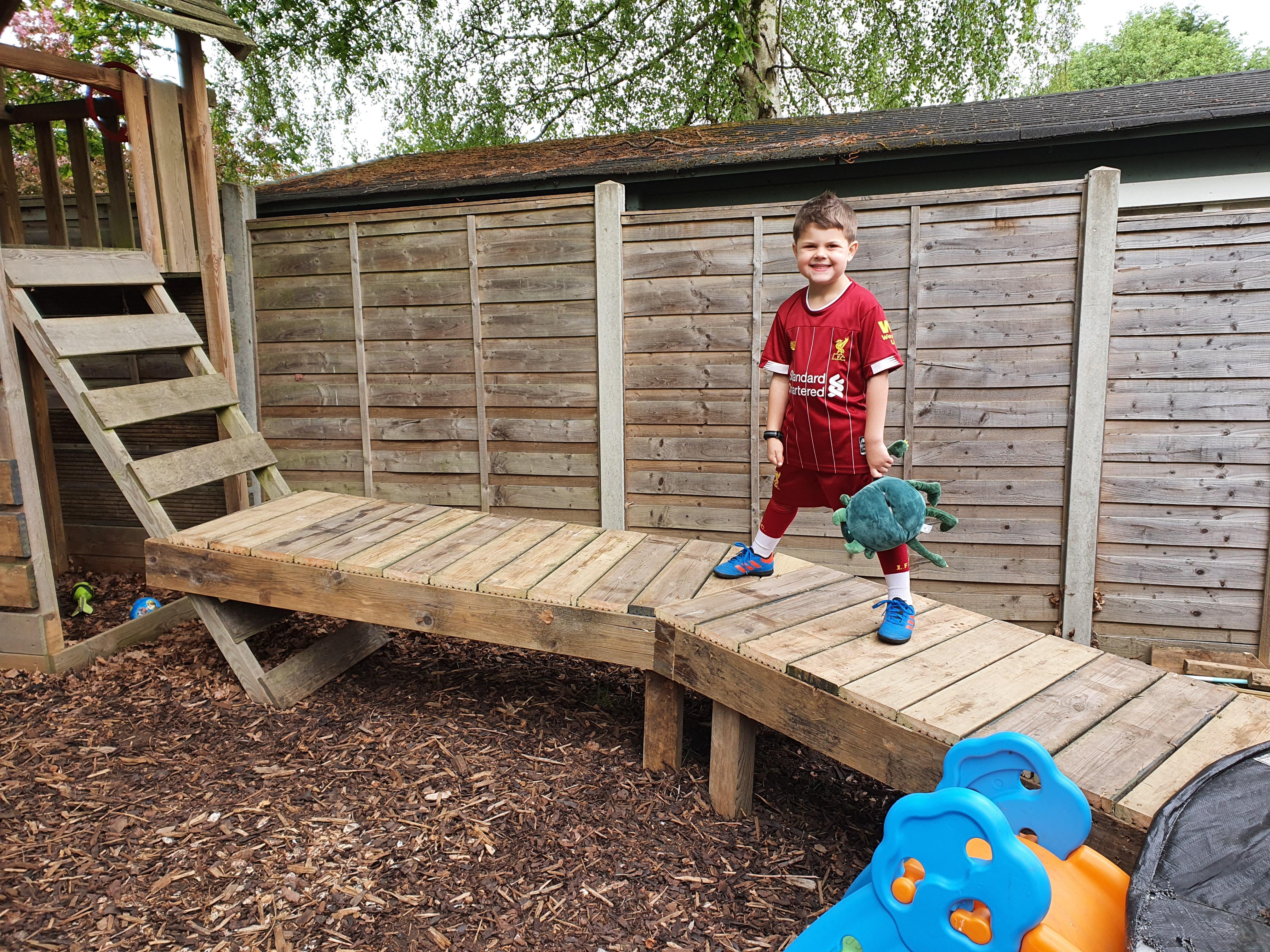 "Jude has had a good day with school work today and he particularly enjoyed the history work...he helped his daddy build a bridge at the weekend in our garden so the boys can get from trampoline to climbing frame without touching the floor."