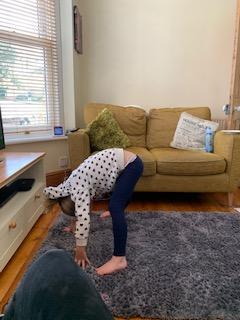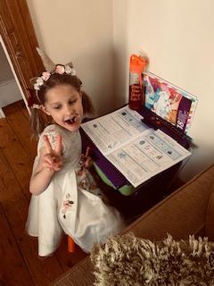 Darcy started off her week doing Yoga with her little sister before working on her home learning with her dad.  Darcy has been very busy learning new things at home with her family