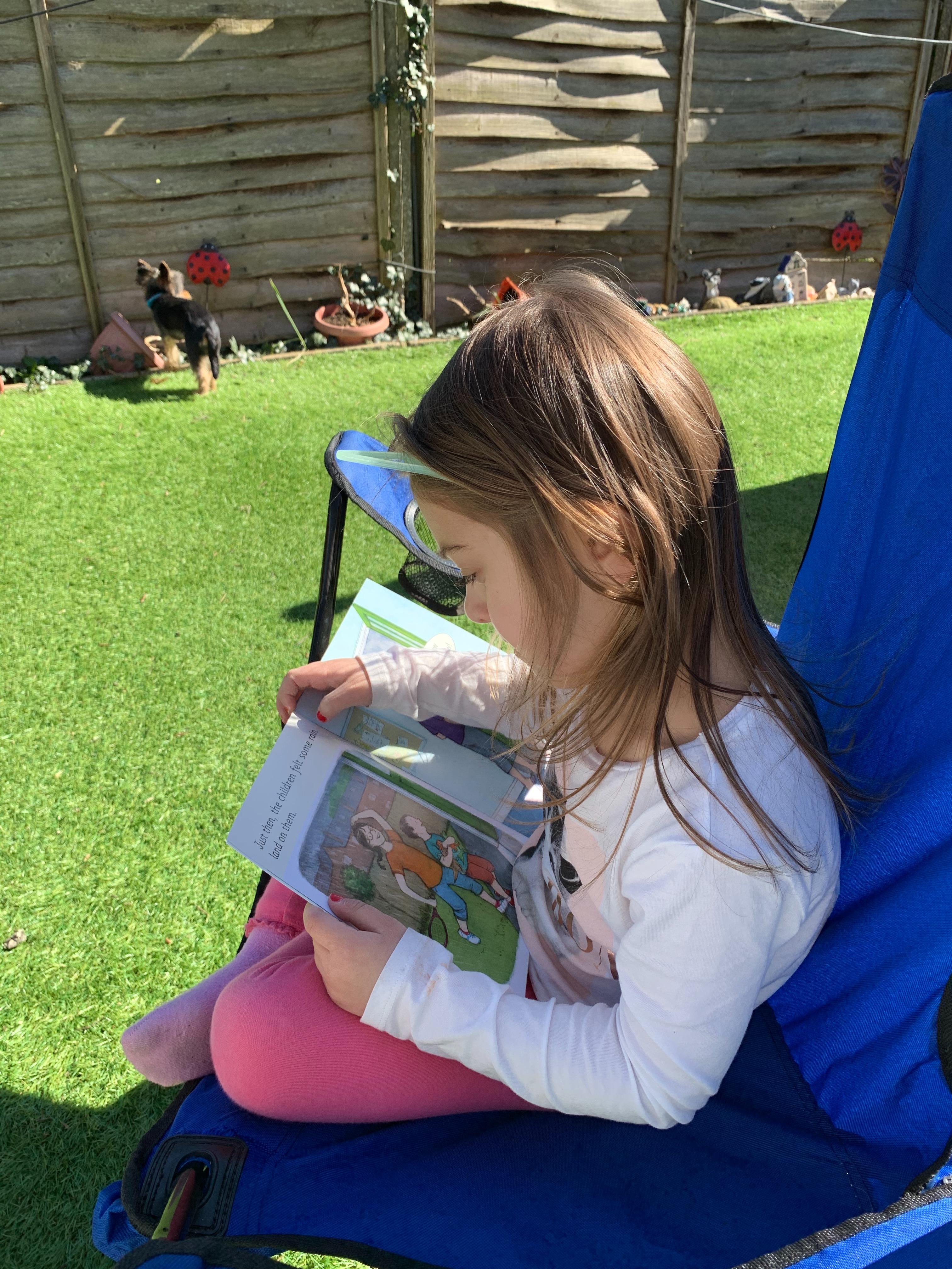 Bonita has sent in photo's to show all the work she has been doing at home with her family, how fabulous is it to sit in the sunshine and read?! Keep up the great work Bonita.