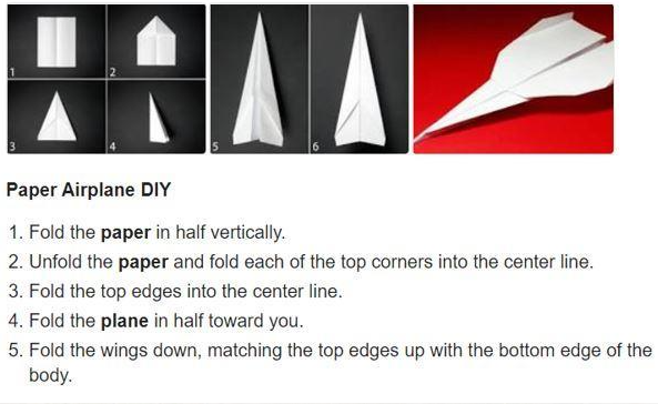 Today, the purpose of the lesson is to learn from yesterday’s testing and build a fleet of planes. You will need to make at least four, one for each of the challenges. Below are some links and ideas to give you some ideas. Decorate your planes to make them distinctive.