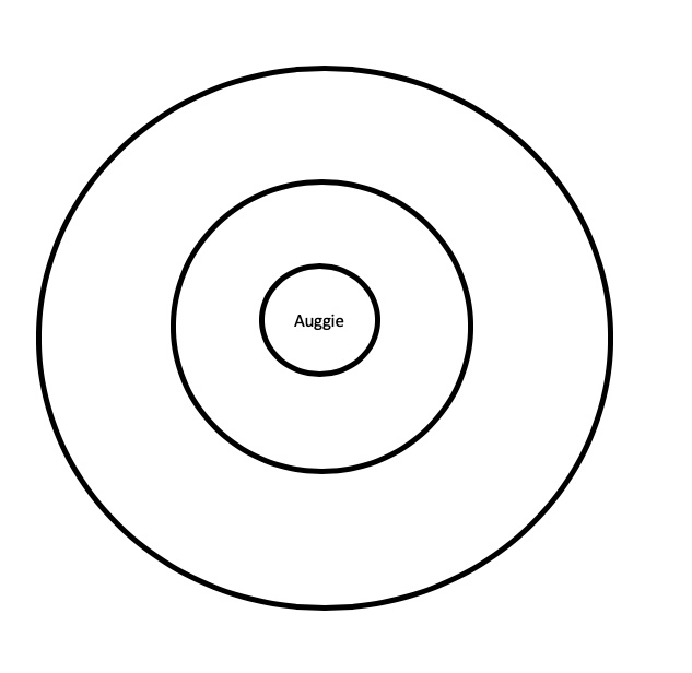 Draw a small circle in the middle of a piece of paper and write Auggie in the middle of it.