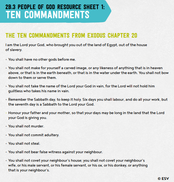 This week we build on our learning from the last lesson last week, where we remembered back to our learning about Moses and how he made a covenant (agreement) with God. Today our theme is about making connections. You will need Resource sheet 1 (The Ten Commandments) from the RE resource area: uc-upper-ks22b.3-people-of-god.pdf