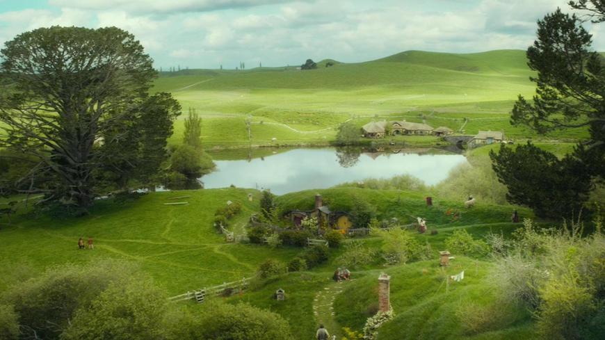 Tiny Hobbits scurry along the hills like ants on an ant hill.