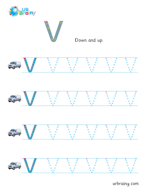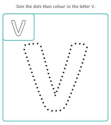 Today’s letter is ‘v’, have a go at practising writing ‘v’. Remember we start at the top go down diagonally, then back up diagonally the other way.