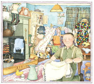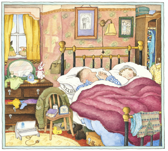 2. Turn to the page that starts, ‘He sees his father sleeping in the big brass bed.’ Look at the picture of the bedroom.